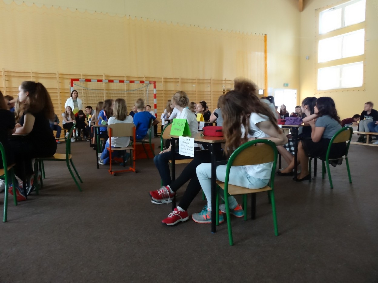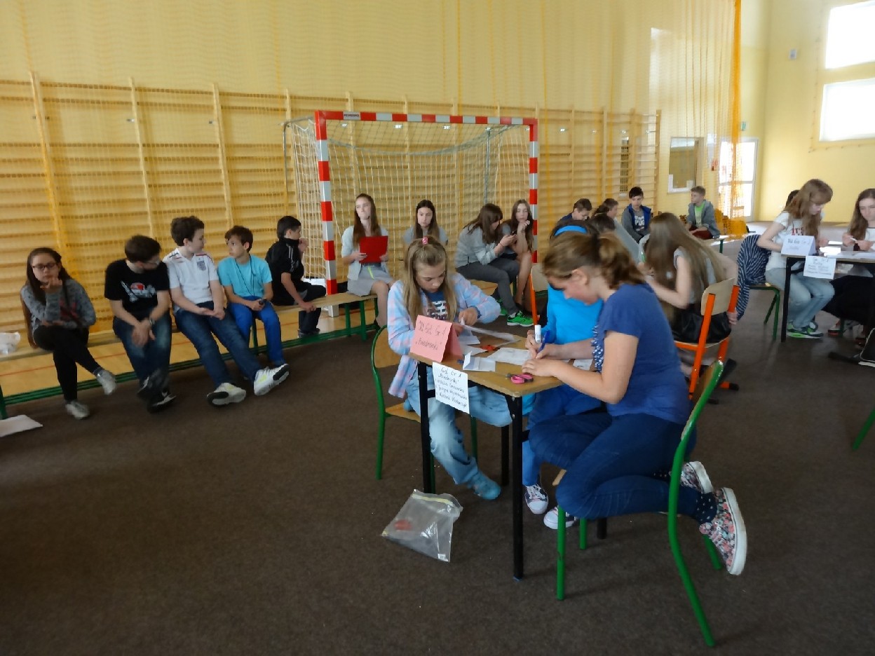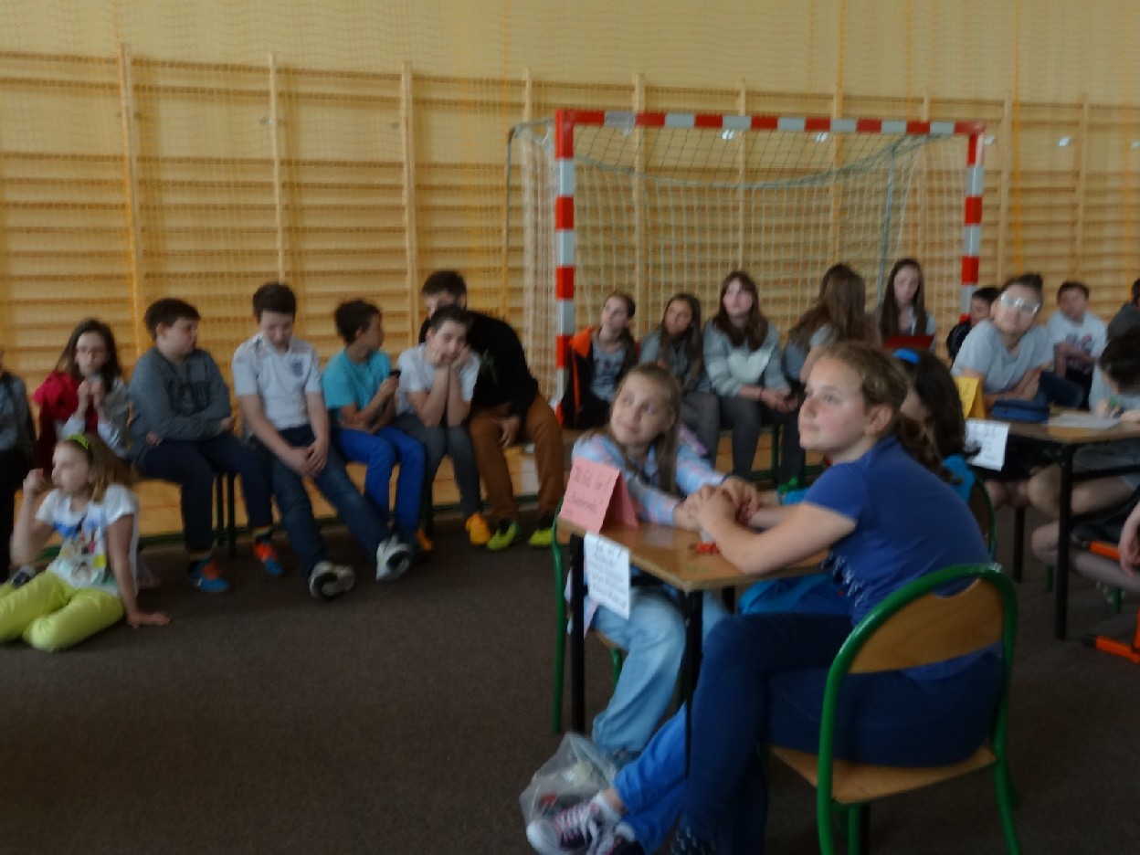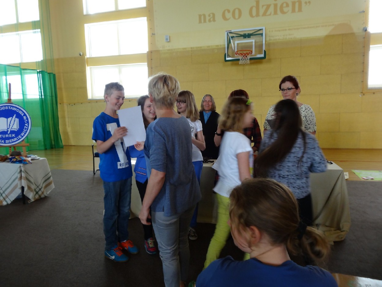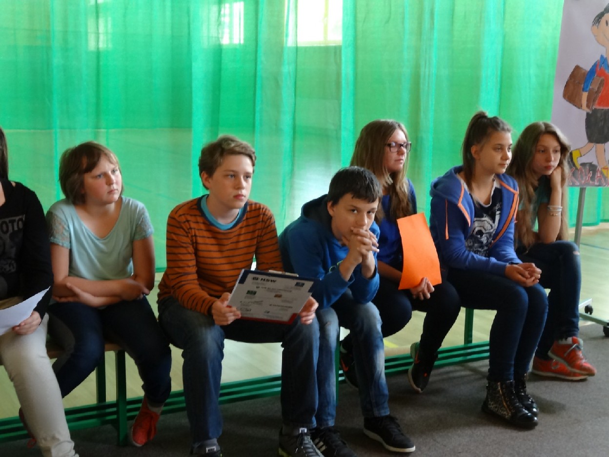 Dnia 15.05.2015r. na czwartej i piątej godzinie lekcyjnej w naszej szkole w sali gimnastycznej odbył się I Szkolny Turniej Językowy „ Z poprawną polszczyzną na co dzień”. Szóste klasy wystawiły dwie trzyosobowe drużyny, które brały udział w konkursi: „Poetki”, „Ortografki” z 6a, „Murzynki”, „Łączniki” z 6b, „Samogłoski’, „Polonistki” z 6c, ‘Gżegżółki”, „Biedronki” z 6d. Uroczystość prowadziła nauczycielka języka polskiego- pani Ewa Pawlak. Zmagania uczniów oceniała szanowna komisja, do której należały: pani Emilia Kozłowska, pani Maria Dizner, pani Małgorzata Pakuła oraz pani Elżbieta Nowak.