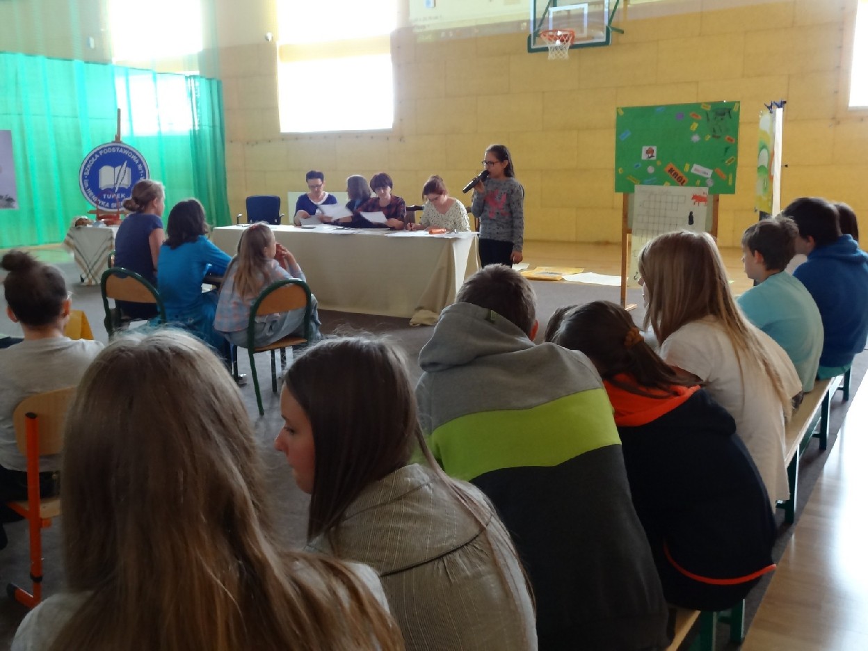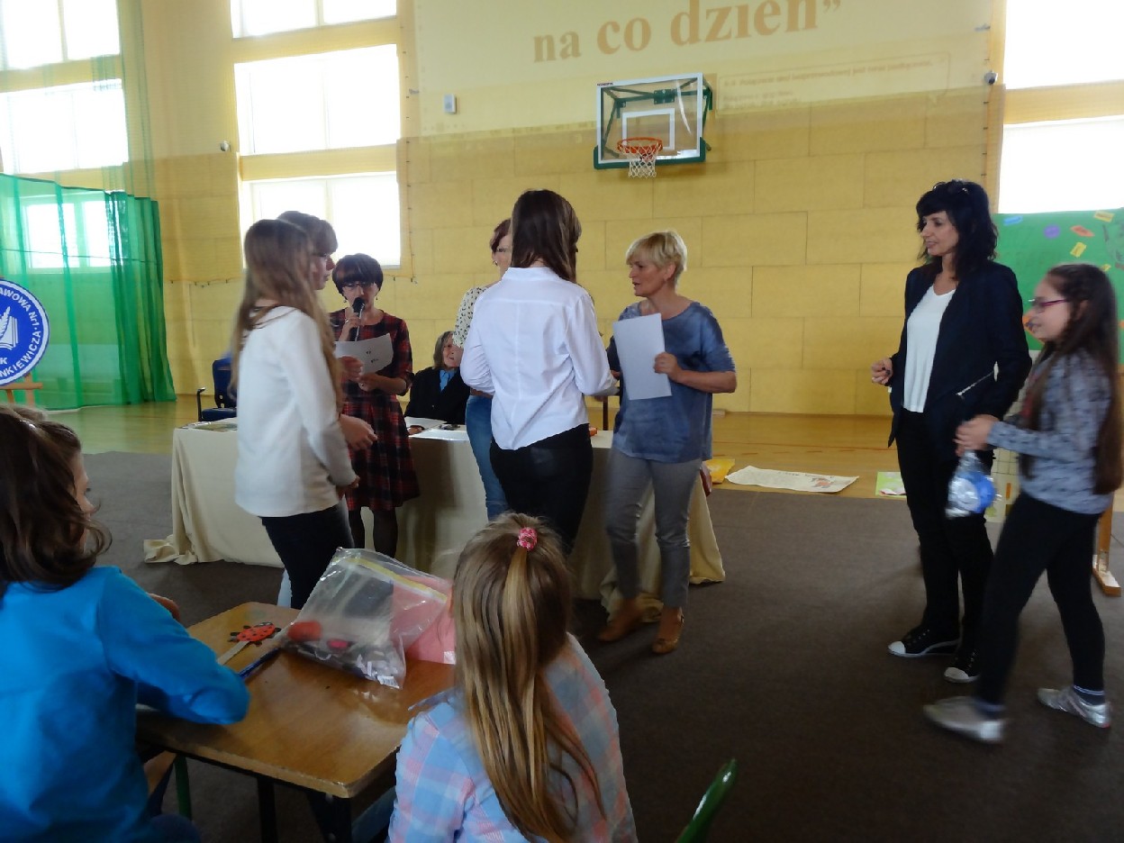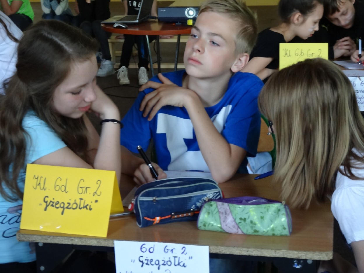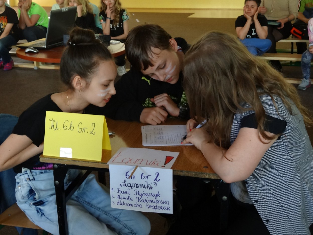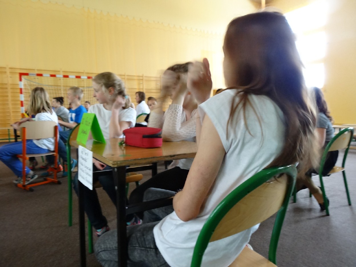 Dnia 15.05.2015r. na czwartej i piątej godzinie lekcyjnej w naszej szkole w sali gimnastycznej odbył się I Szkolny Turniej Językowy „ Z poprawną polszczyzną na co dzień”. Szóste klasy wystawiły dwie trzyosobowe drużyny, które brały udział w konkursi: „Poetki”, „Ortografki” z 6a, „Murzynki”, „Łączniki” z 6b, „Samogłoski’, „Polonistki” z 6c, ‘Gżegżółki”, „Biedronki” z 6d. Uroczystość prowadziła nauczycielka języka polskiego- pani Ewa Pawlak. Zmagania uczniów oceniała szanowna komisja, do której należały: pani Emilia Kozłowska, pani Maria Dizner, pani Małgorzata Pakuła oraz pani Elżbieta Nowak.