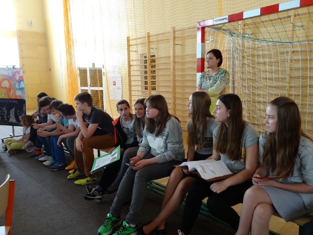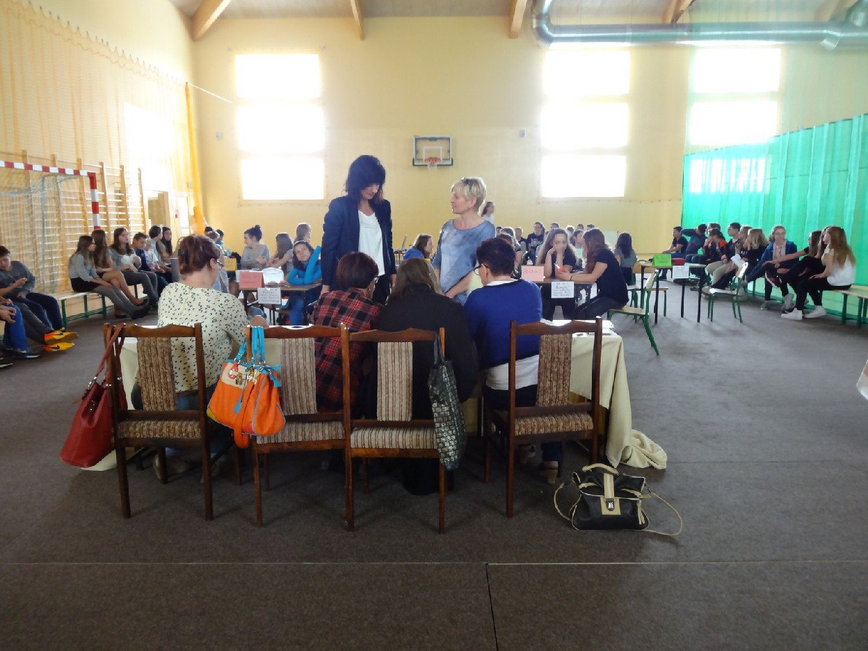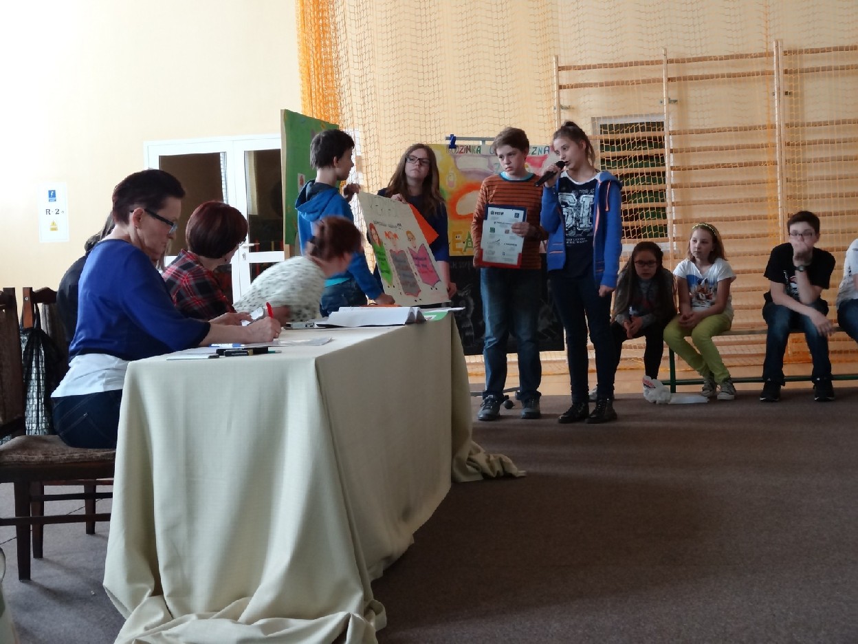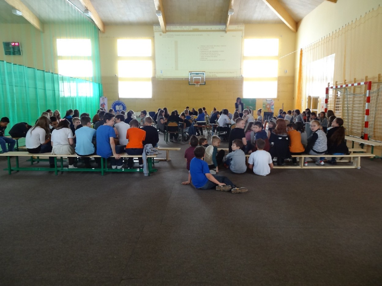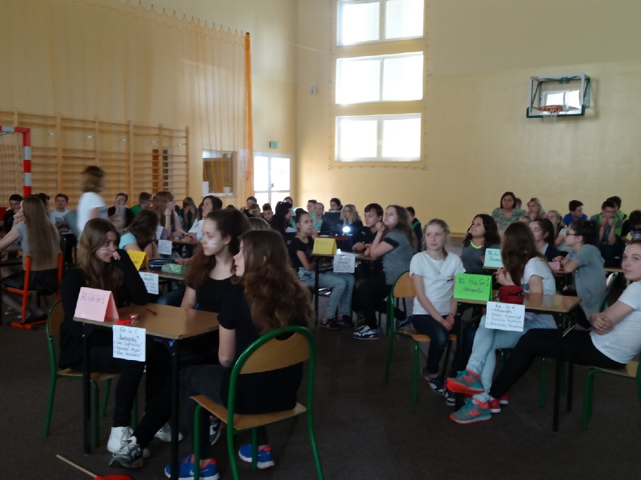 Dnia 15.05.2015r. na czwartej i piątej godzinie lekcyjnej w naszej szkole w sali gimnastycznej odbył się I Szkolny Turniej Językowy „ Z poprawną polszczyzną na co dzień”. Szóste klasy wystawiły dwie trzyosobowe drużyny, które brały udział w konkursi: „Poetki”, „Ortografki” z 6a, „Murzynki”, „Łączniki” z 6b, „Samogłoski’, „Polonistki” z 6c, ‘Gżegżółki”, „Biedronki” z 6d. Uroczystość prowadziła nauczycielka języka polskiego- pani Ewa Pawlak. Zmagania uczniów oceniała szanowna komisja, do której należały: pani Emilia Kozłowska, pani Maria Dizner, pani Małgorzata Pakuła oraz pani Elżbieta Nowak.