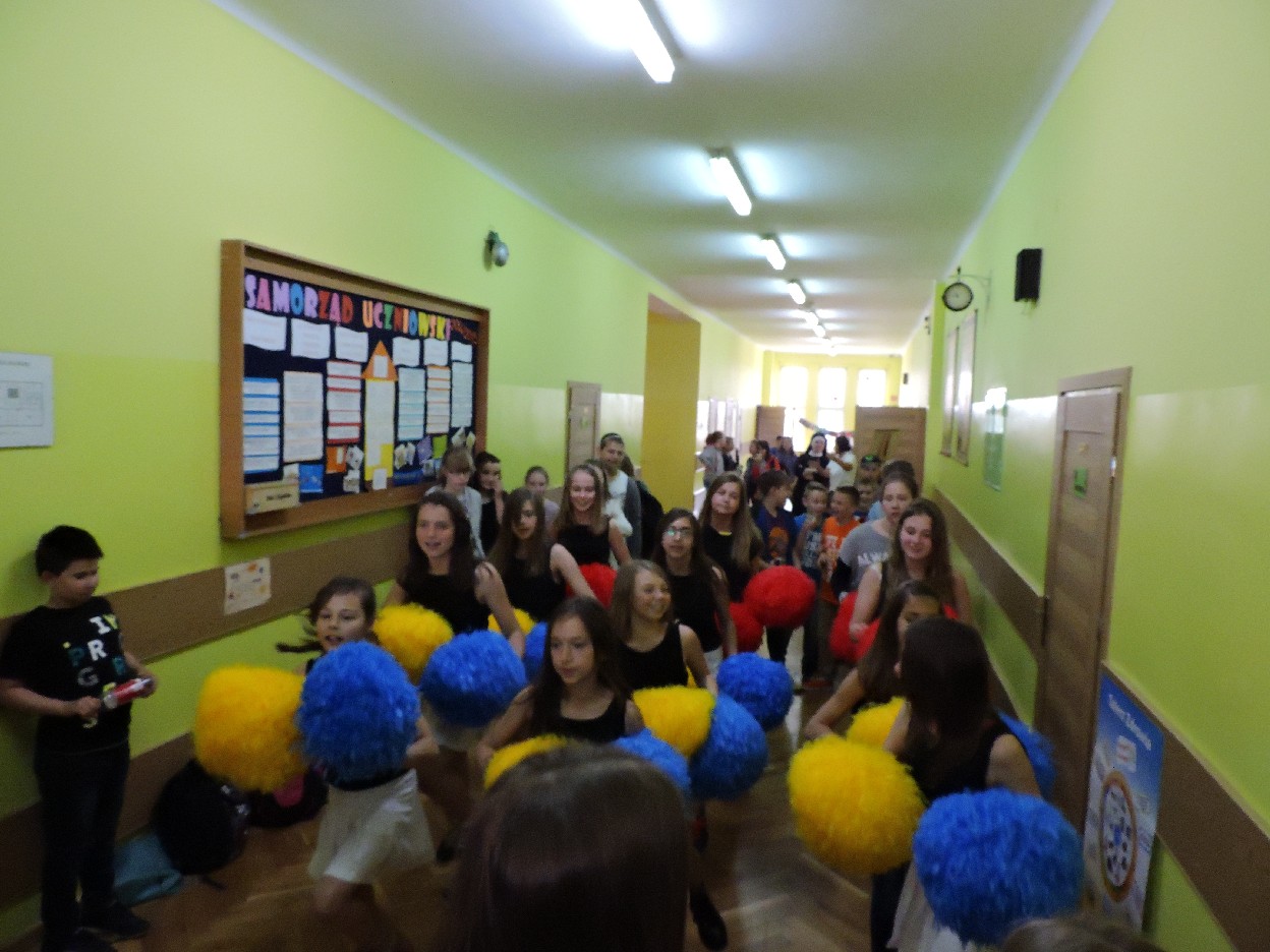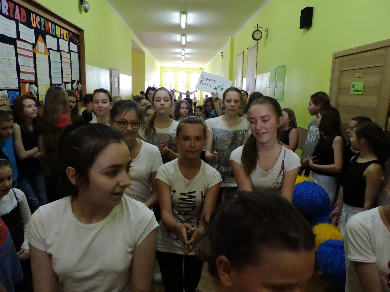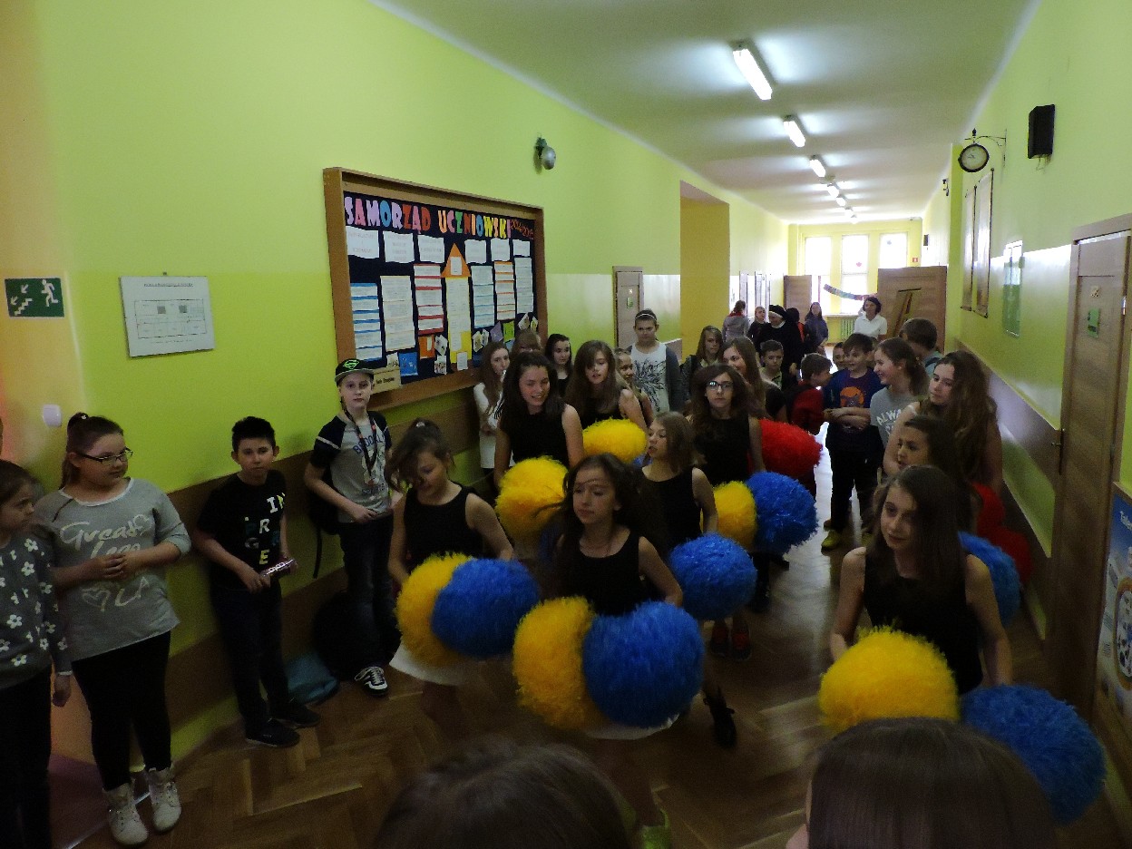 Dnia 29 kwietnia 2015 roku obchodziliśmy „Międzynarodowy Dzień Tańca” ph: „Trzymaj formę tańcząc z nami”. Tego dnia cała szkoła tańczyła podczas przerw lekcyjnych. Klasy 5d i 6c zaprezentowały przygotowane przez siebie układy taneczne, zachęcając innych uczniów do udziału w tanecznej przerwie. Cała szkoła bawiła się i tańczyła w rytm muzyki z przyjemnością i dużym humorem.