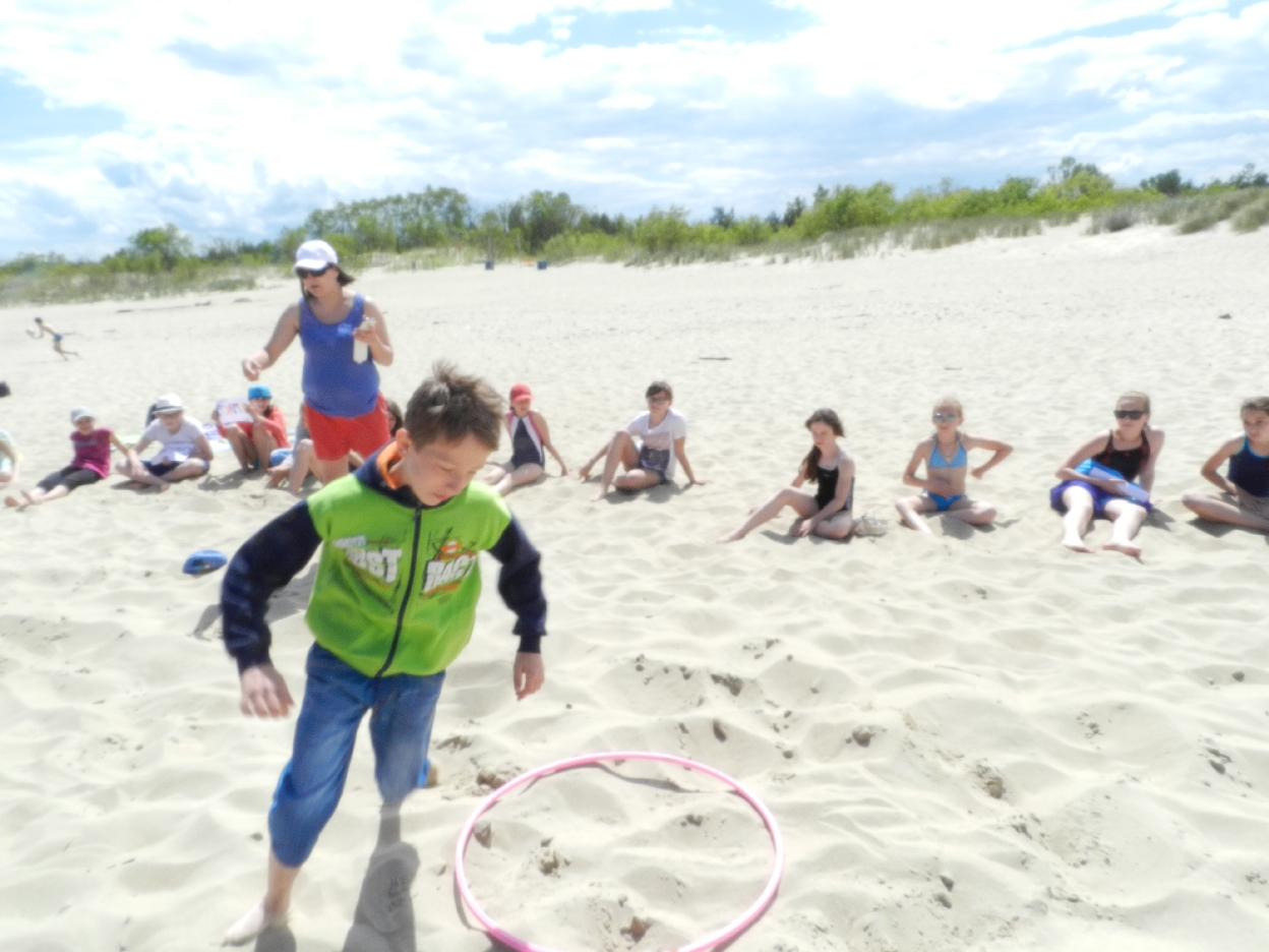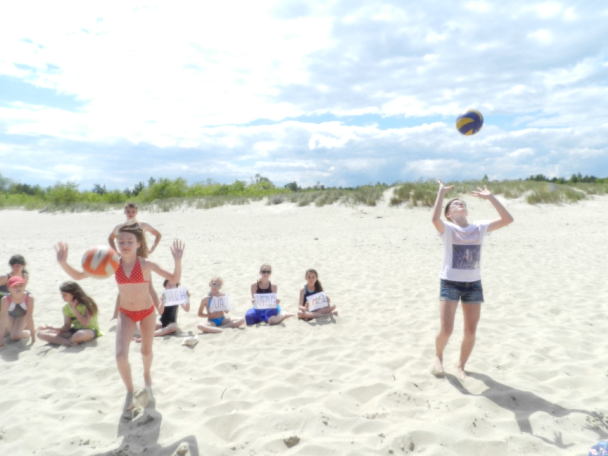 W środę tuż po śniadaniu, które zjedliśmy ze smakiem, ruszyliśmy na plażę i byliśmy tam do godziny 16:00. Czytaliśmy książki, rozwiązywaliśmy quizy o piłce siatkowej, braliśmy udział w zawodach sprawnościowych. Po posiłku spędzaliśmy czas na świeżym powietrzu grając w gumę i bawiąc się z kolegami oraz koleżankami.