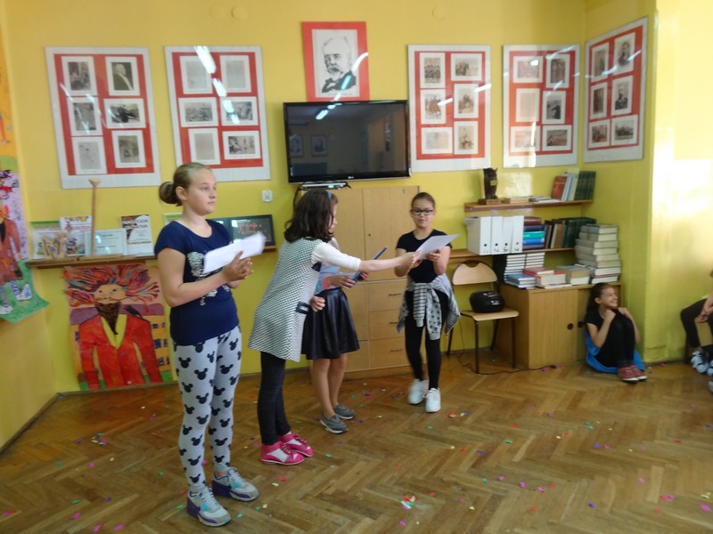Młodych artystów oceniały starsze koleżanki z klasy 6 d: Natalia Krotowska, Justyna Wojciechowska i Wiktoria Włodarczyk.