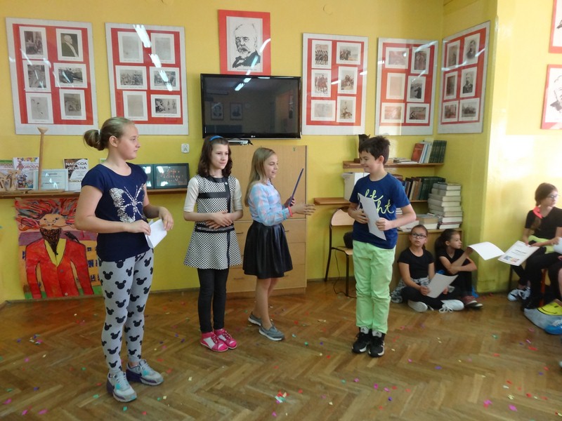 22 czerwca chętni uczniowie z klasy 4 d zaprezentowali swoje talenty w rożnych dziedzinach: śpiew, taniec, pokaz sztuk walk, opowiadanie dowcipów i sztuczki karciane.