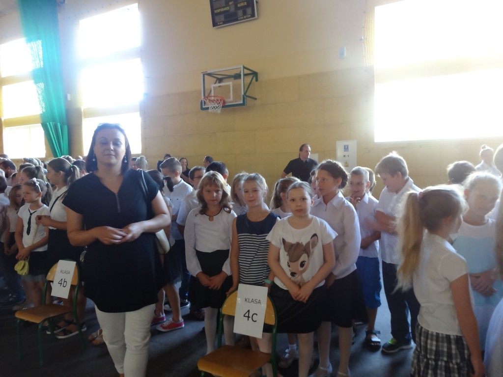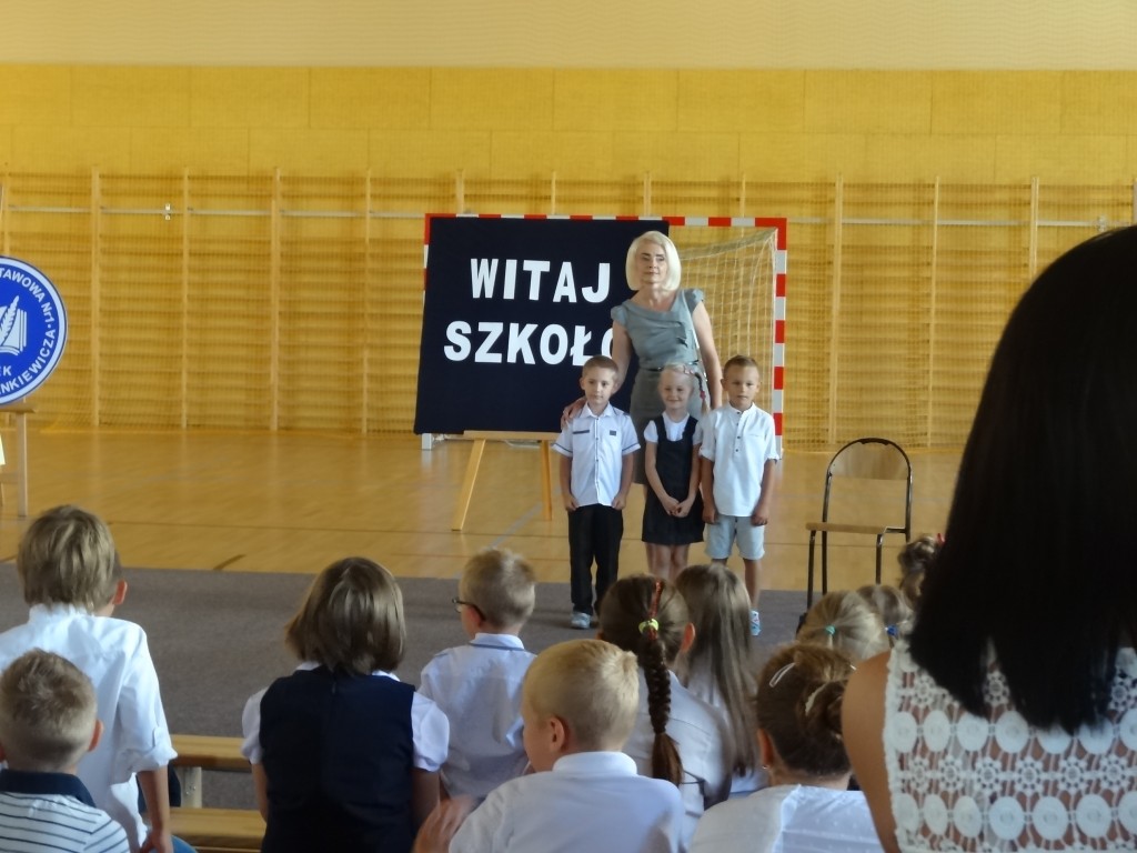 Uczniowie Szkoły Podstawowej nr 1 po raz pierwszy wszyscy razem witali nowy rok szkolny w przestronnej sali sportowej. Po ciepłym przywitaniu przez p. Dyrektor Elżbietę Pokojową życzenia do Uczniów, Nauczycieli i Rodziców skierował również Burmistrz Miasta Turku Romuald Antosik oraz przewodniczący Rady Rodziców p. Tomasz Misiak. Ważnym momentem uroczystości rozpoczęcia roku szkolnego było uczczenie 76. rocznicy wybuchu II wojny światowej. Uczniowie doniosłym występem uczcili pamięć o tym ważnym wydarzeniu. Dopełnieniem było złożenie kwiatów i oddanie hołdu poległym za Ojczyznę przez poczet sztandarowy, przedstawicieli grona pedagogicznego oraz uczniów przed pomnikiem „Nigdy Więcej Wojny”.
