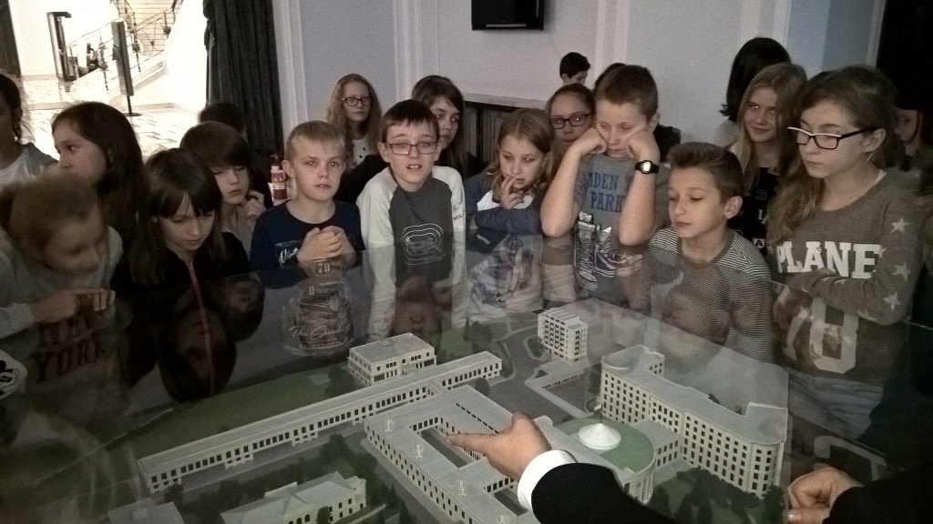 O godzinie 5:45 zebraliśmy się przed naszą szkołą, skąd wyruszyliśmy na wycieczkę o godzinie 6:00. Podczas podróży wszyscy byliśmy podekscytowani tym, co mamy zobaczyć, dlatego bardzo ucieszyliśmy się, kiedy o 10:30 dojechaliśmy na miejsce. Zaparkowaliśmy obok gmachu polskiego parlamentu i wyruszyliśmy na jego zwiedzanie. Gdy weszliśmy do budynku, odłożyliśmy ubrania wierzchnie do szatni i przeszliśmy do sali konferencyjnej, w której politycy udzielają wywiadów. Później mieliśmy okazję usiąść na balkonie w sali obrad. Pan oprowadzający po tej instytucji opowiedział nam całą historię polskiego Sejmu i Senatu. Następnie, w głównym holu, obejrzeliśmy tablice upamiętniające polityków, którzy ponieśli śmierć podczas II wojny światowej i w katastrofie smoleńskiej. Potem zeszliśmy po pięknych marmurowych schodach na dół i zobaczyliśmy makietę całego gmachu. Przewodnik pokazał nam i wytłumaczył, gdzie znajdują się biura, biblioteki i inne pomieszczenia służbowe parlamentarzystów. Później przeszliśmy do sali, w której odbywa zebrania partia mająca największą przewagę w Sejmie. Następnie wyszliśmy z budynku i przemieściliśmy się do Zamku Królewskiego. Zwiedziliśmy w nim komnaty naszych władców, podziwialiśmy piękne obrazy i rzeźby wybitnych artystów. Z zapartym tchem oglądaliśmy salę tronową i balową. Dowiedzieliśmy się wielu ciekawych rzeczy na temat historii warszawskiego zamku. O godzinie 14:00 wyruszyliśmy w drogę do TVP. O 14:30 byliśmy na miejscu i wchodziliśmy do ogromnego budynku. Po zostawieniu kurtek w szatni, przeszliśmy długim korytarzem i znaleźliśmy się w I studio, w którym kręcony jest teleturniej "Jaka to melodia?". Mogliśmy usiąść na miejscach przeznaczonych dla widowni. Przewodnik opowiedział nam, jak wygląda proces kręcenia teleturnieju. Następnie przeszliśmy do II studio, w którym zobaczyliśmy przygotowania do kręcenia programu "Świat się kręci". Usłyszeliśmy próbę zespołu, który akurat miał wystąpić gościnnie. Pan pokazał, jak są ustawione kamery i zaprowadził nas do reżyserki , gdzie wytłumaczył nam, do czego służą poszczególne sprzęty. W III studio mieliśmy okazję obejrzeć nową aranżację, w jakiej jest kręcony program "Pytanie na śniadanie". Ku naszemu zaskoczeniu okazało się, że niektóre elementy choreografii są zdjęciami, a nie prawdziwymi przedmiotami. Kolejną atrakcją, którą zwiedzaliśmy, było pomieszczenie zwane akwarium, którego wszystkie ściany wykonane są ze szkła. Następnie udaliśmy się do muzeum filmu, gdzie dowiedzieliśmy się, jak wyglądały kiedyś kamery, telewizory oraz poznaliśmy tytuł pierwszej nakręconej, polskiej bajki - "Jacek i Agatka". Ostatnim punktem wycieczki był pyszny obiad w telewizyjnej restauracji. Zmęczeni, ale pełni wrażeń, około godziny 17:00, wyruszyliśmy w drogę powrotną do domu. W trakcie jazdy zatrzymaliśmy się na krótki postój w McDonaldzie. Na miejsce dotarliśmy o 21:30, gdzie czekali na nas stęsknieni rodzice.