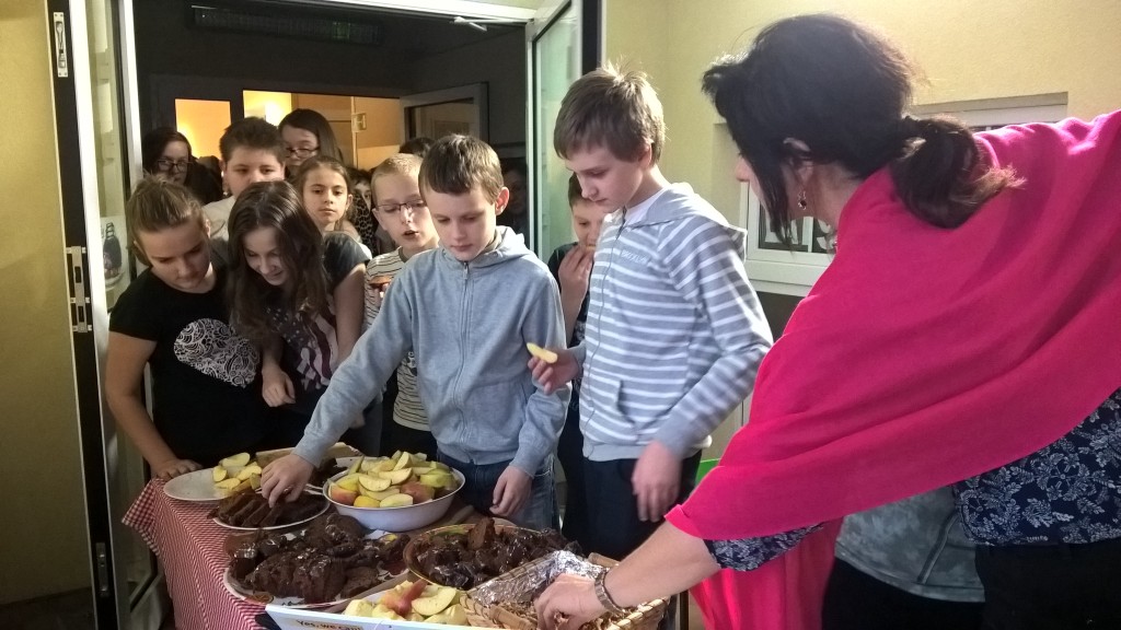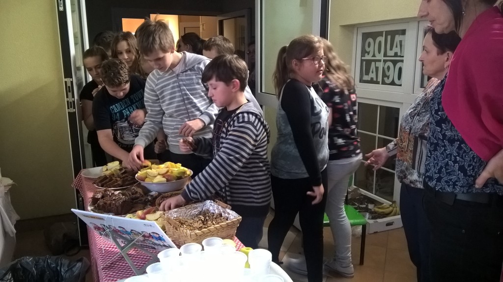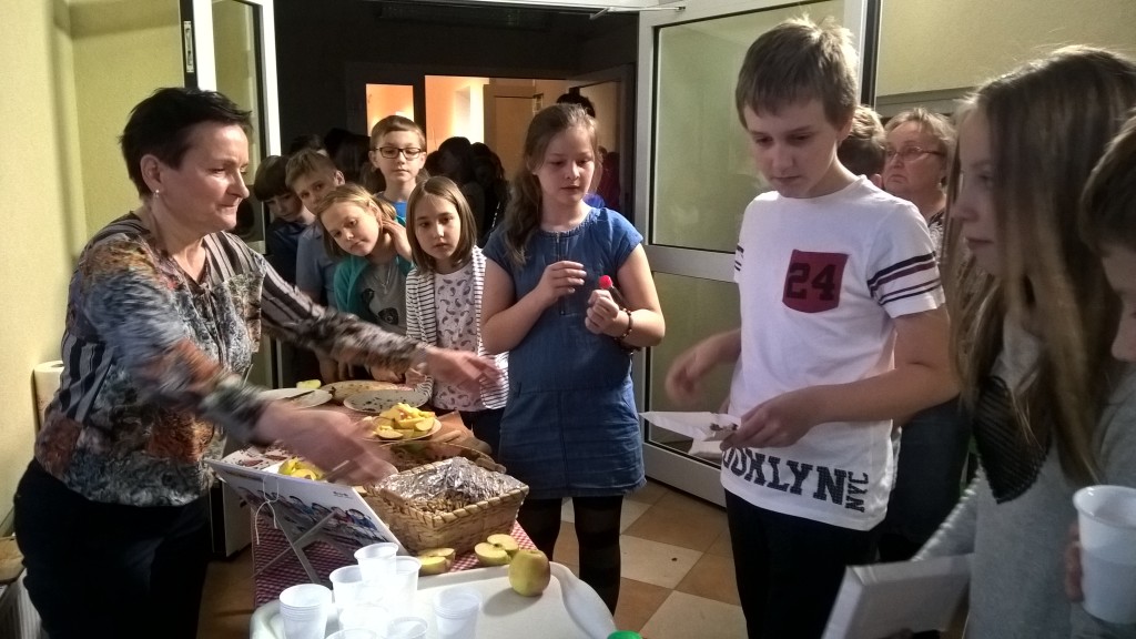 Podczas przerwy wszyscy uczestnicy z apetytem zajadali jabłka, smaczne orzechy i banany, przygotowane przez rodziców.