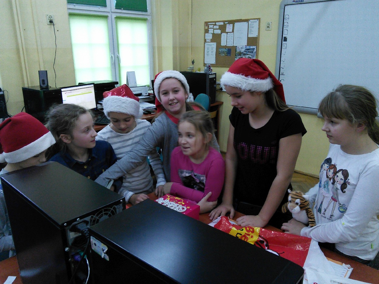 Dnia 3 grudnia w klasie 4b odbyły sie klasowe mikołajki. W mikołajowych czapkach i w radosnym nastroju obdarowaliśmy się upominkami. Nasza koleżanka Klaudia wraz z mamą upiekły pierniczki, które pysznie smakowały i pachniały zbliżającymi się Świętami.