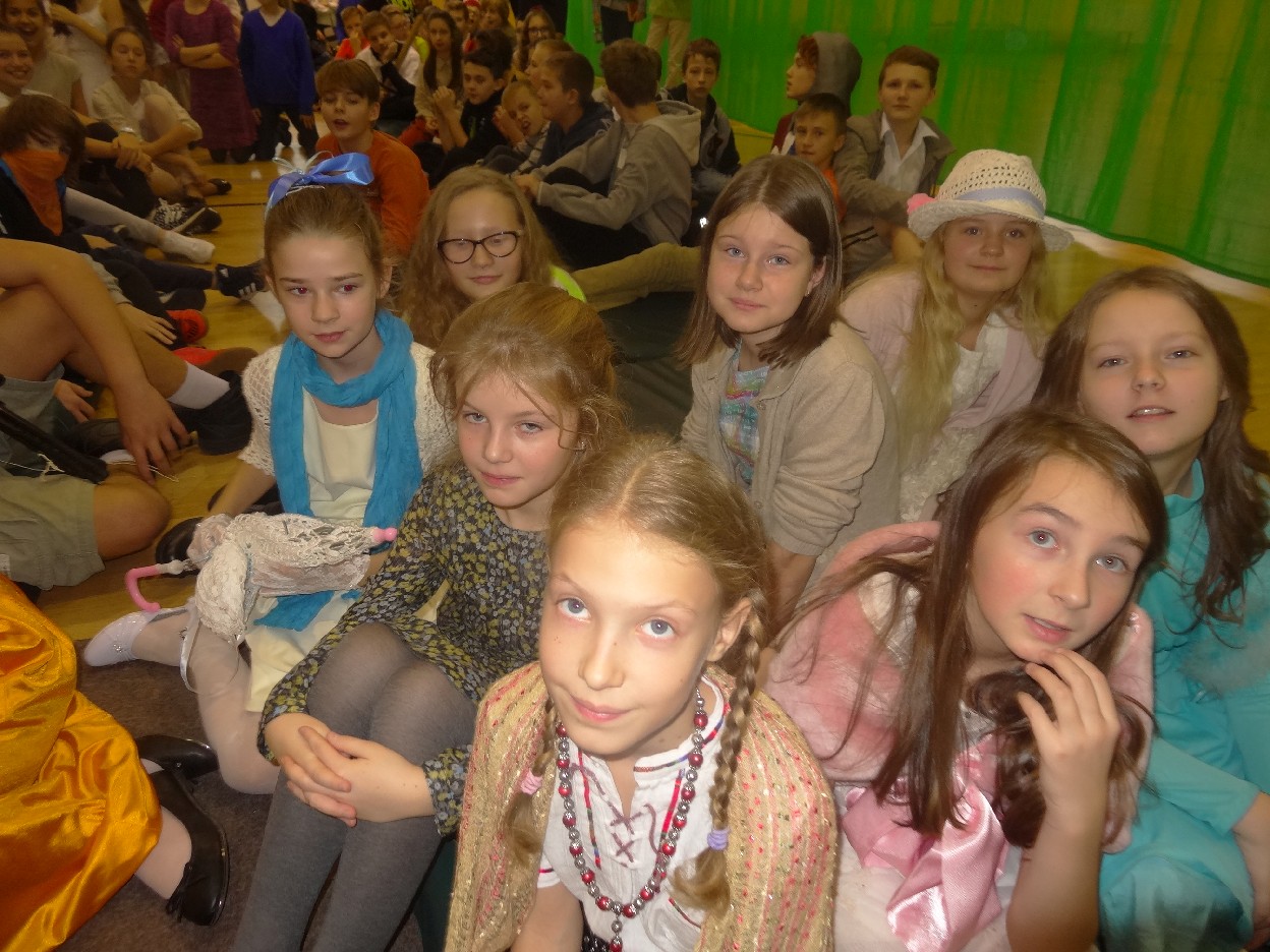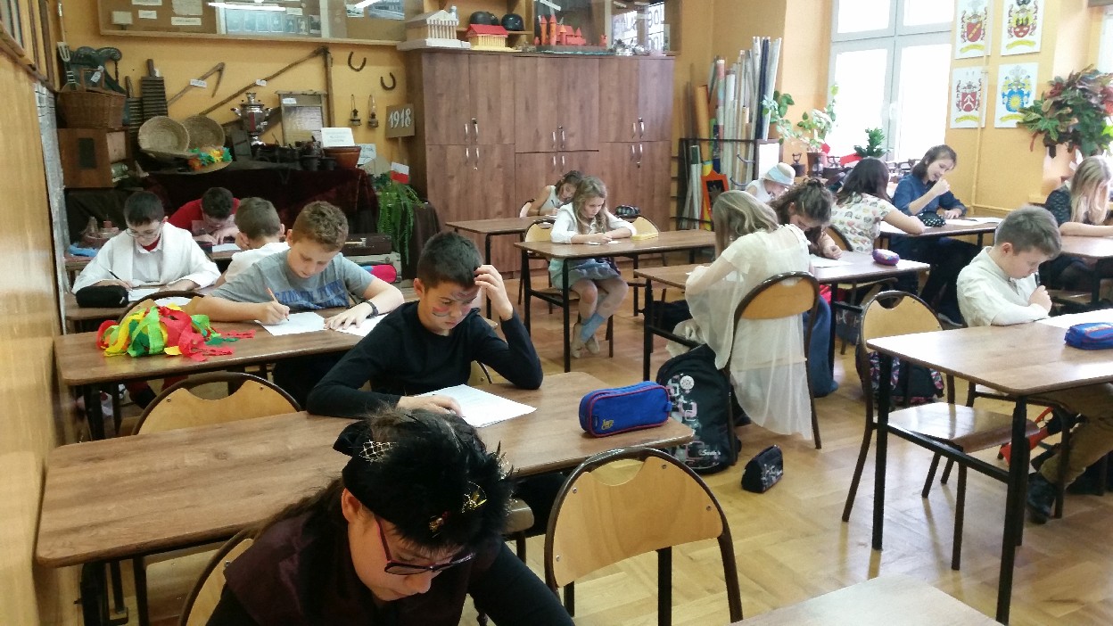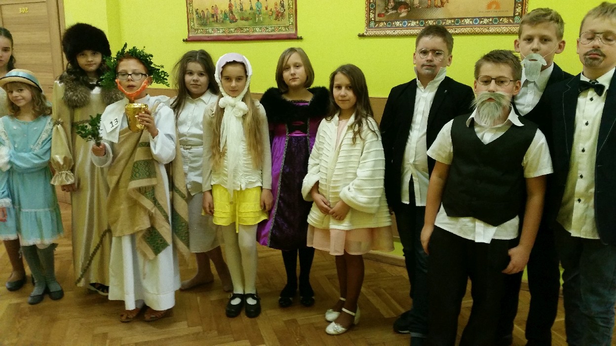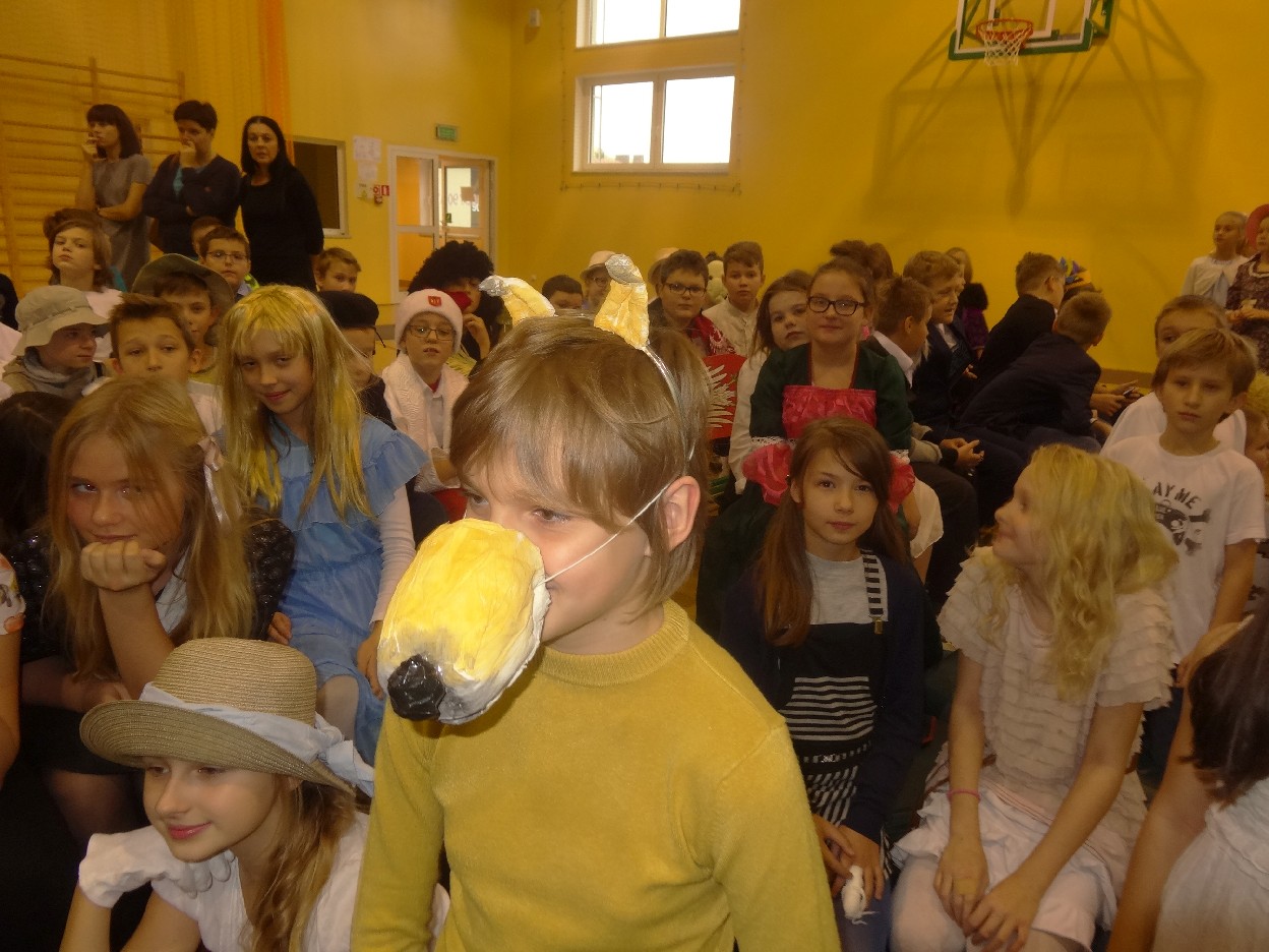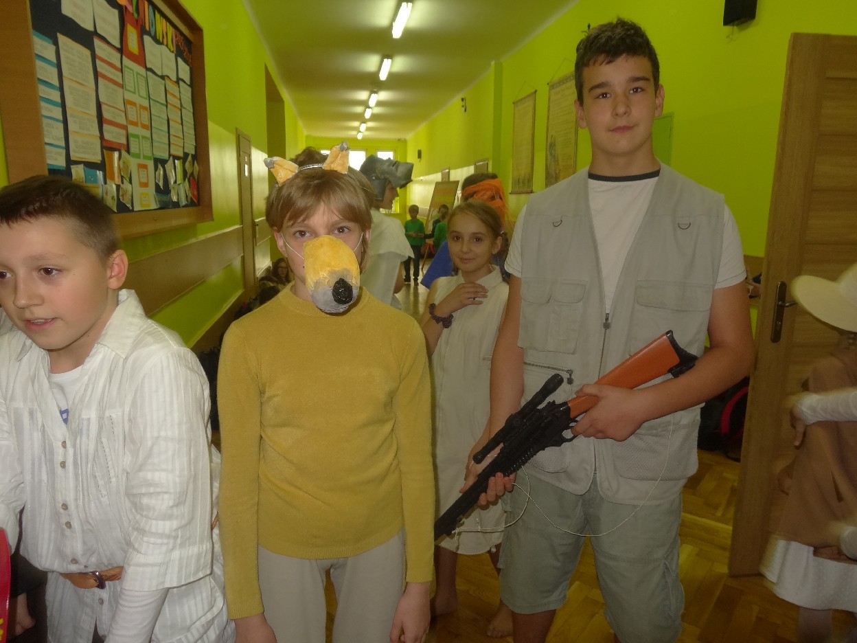 12 listopada było inaczej niż zazwyczaj w szkole. Od samego rana na szkolnych korytarzach można było spotkać bohaterów książek Henryka Sienkiewicza. Tym razem wśród uczniów byli: Staś, Nel, pani Oliwier, Latarnik, Krzyżacy, Murzyni, Oleńka Bilewiczówna, Neron, Ligia, Sachem a nawet pies Saba, słoń King. Póżniej wszyscy spotkali się w sali sportowej. Każda klasa wystawiła swoich reprezentantów do konkursu na najlepszą kreację bohatera. Kryteria oceny były surowe, jednak komisja konkursowa nie była w stanie wyłonić zwyciezców. Stwierdzono, że wszystkie postacie doskonale odzwierciedlają bohaterów z książek naszego Patrona. Wszyscy otrzymali zatem najwyższą liczbę punktów. W XIX w. trzeba byo wykazywać się odwagą i zwinnością. Aby to sprawdzić chętni bohaterowie utworów Henryka Sienkiewicza przystapili do konkurencji sportowych pod okiem nauczycieli w - fu. Było wesoło, okazało się, że nie jest łatwo wygrać, mając na sobie różne stroje. Dzień ten był wspaniały, stał sie zachetą do czytania utworów Henryka Sienkiewicza.