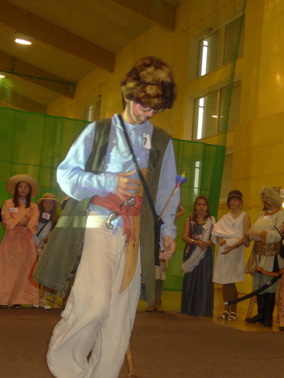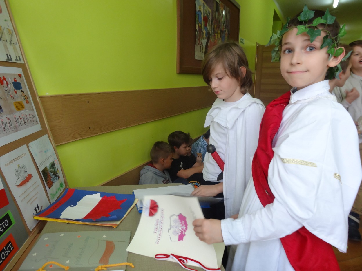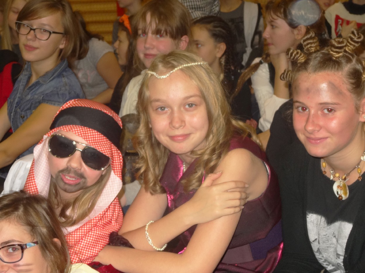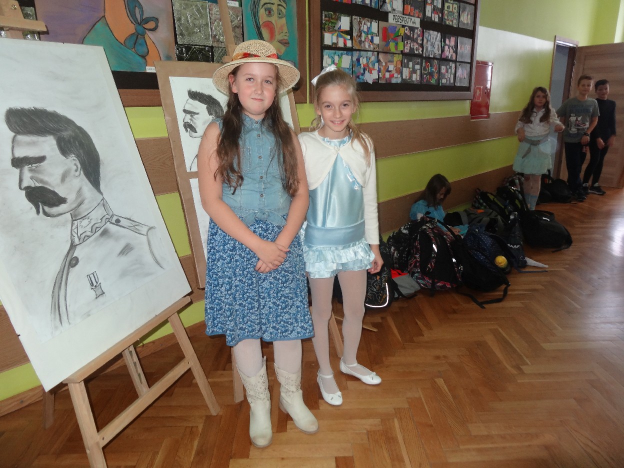 12 listopada było inaczej niż zazwyczaj w szkole. Od samego rana na szkolnych korytarzach można było spotkać bohaterów książek Henryka Sienkiewicza. Tym razem wśród uczniów byli: Staś, Nel, pani Oliwier, Latarnik, Krzyżacy, Murzyni, Oleńka Bilewiczówna, Neron, Ligia, Sachem a nawet pies Saba, słoń King. Póżniej wszyscy spotkali się w sali sportowej. Każda klasa wystawiła swoich reprezentantów do konkursu na najlepszą kreację bohatera. Kryteria oceny były surowe, jednak komisja konkursowa nie była w stanie wyłonić zwyciezców. Stwierdzono, że wszystkie postacie doskonale odzwierciedlają bohaterów z książek naszego Patrona. Wszyscy otrzymali zatem najwyższą liczbę punktów. W XIX w. trzeba byo wykazywać się odwagą i zwinnością. Aby to sprawdzić chętni bohaterowie utworów Henryka Sienkiewicza przystapili do konkurencji sportowych pod okiem nauczycieli w - fu. Było wesoło, okazało się, że nie jest łatwo wygrać, mając na sobie różne stroje. Dzień ten był wspaniały, stał sie zachetą do czytania utworów Henryka Sienkiewicza.