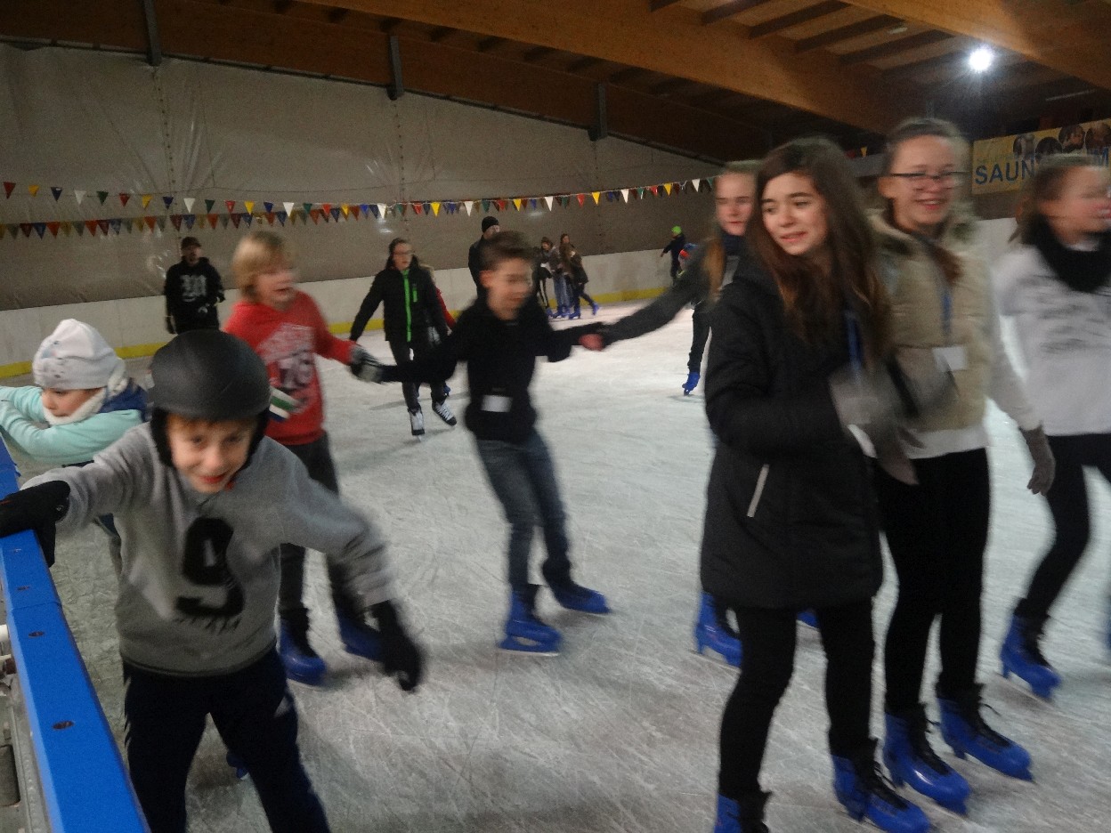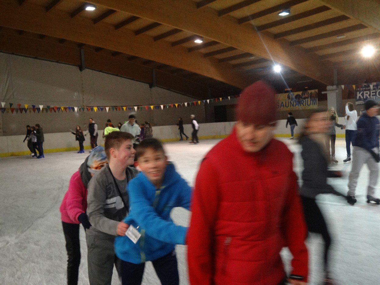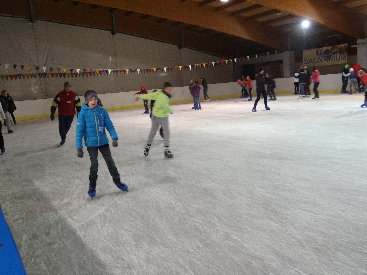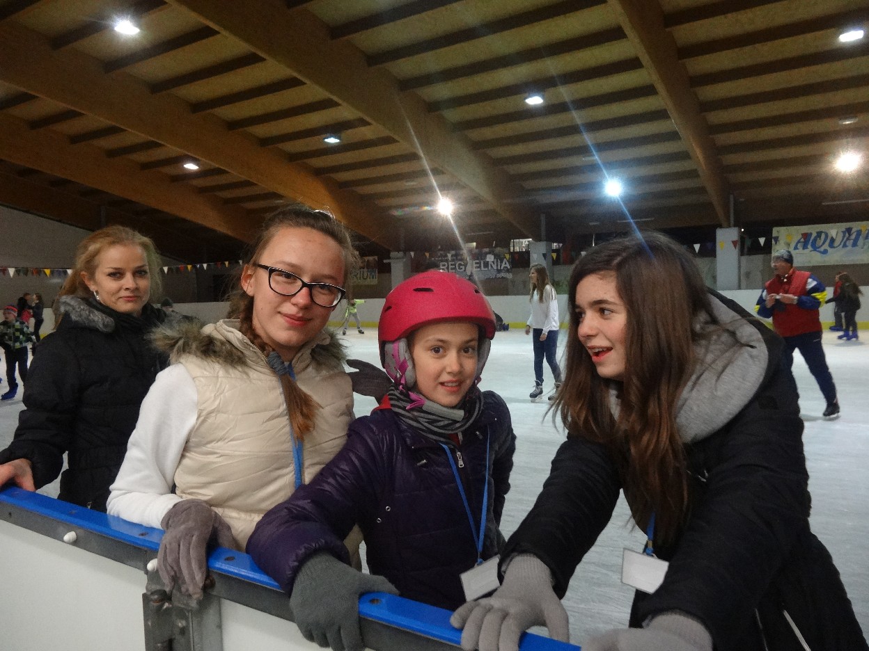 W ostatni poniedziałek listopada 2015 r. klasy czwarte, piąte i szóste udały się na lodowisko do Kalisza. Naszymi opiekunami były panie: Bożena Mielczarek, Agnieszka Koszykowska, Magdalena Sobczak. Sprzed szkoły wyruszyliśmy o godzinie 16.30. Po niespełna godzinie dotarliśmy do obiektu sportowego w którym mieści się lodowisko. Przygotowanie do wyjścia na lód zajęło nam trochę czasu. Wypożyczyliśmy łyżwy i po założeniu ich postanowiliśmy wejść na taflę, oczywiście pod czujnym okiem instruktora. Niektórzy mieli już za sobą pierwszą jazdę na łyżwach i sami postanowili oddać się szaleństwu jazdy. Początkujący łyżwiarze po kilku radach instruktora i niewielkich upadkach zaczęli sobie radzić. Z upływem czasu było coraz lepiej. Po godzinie jazdy musieliśmy schodzić z lodowiska. Wyjazd był bardzo udany. Podczas pobytu na lodowisku wzmocniliśmy naszą sprawność fizyczną. Był to czas wspólnej zabawy i rekreacji. Zrelaksowani i zadowoleni nie możemy doczekać się następnego wyjazdu, który będzie już za tydzień. Wyjazdy na lodowisko organizowane są przez Samorząd Uczniowski naszej szkoły.
