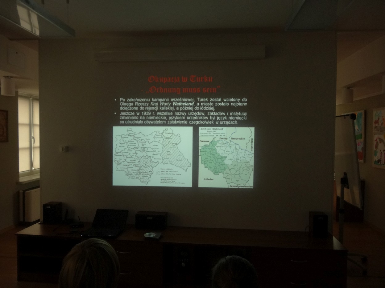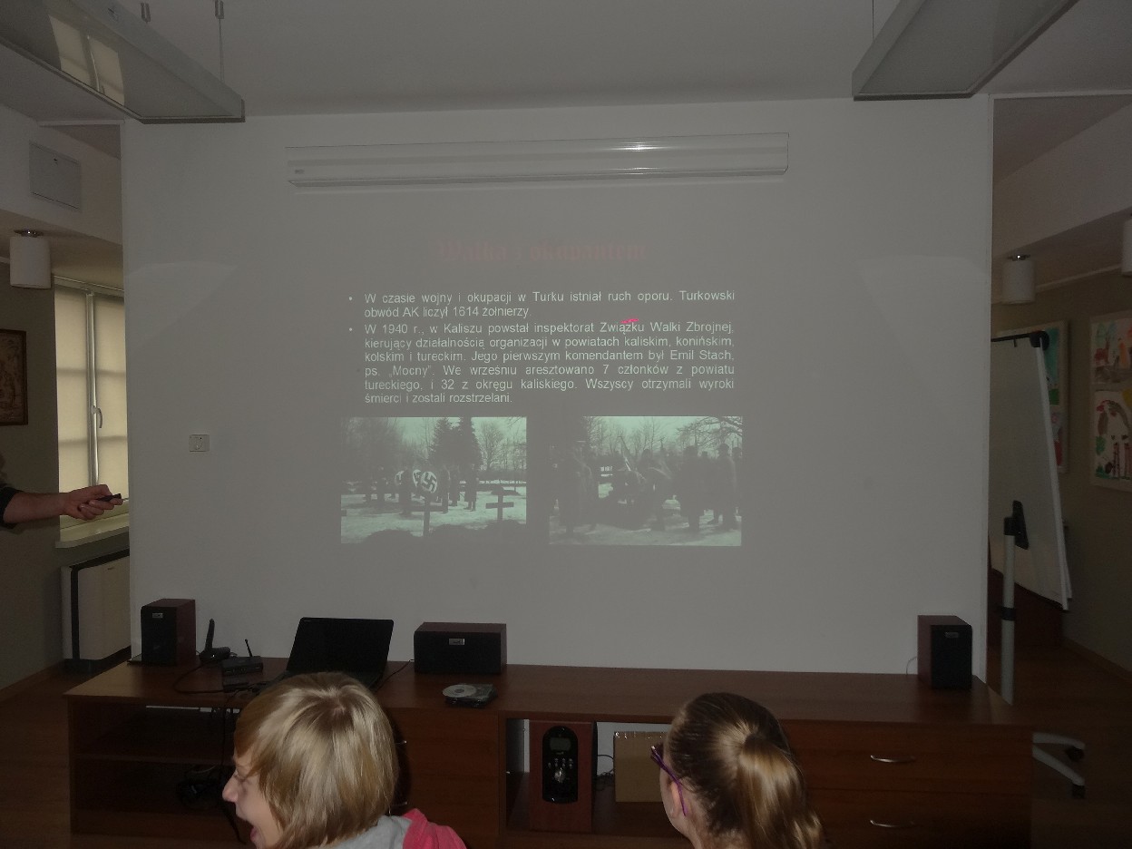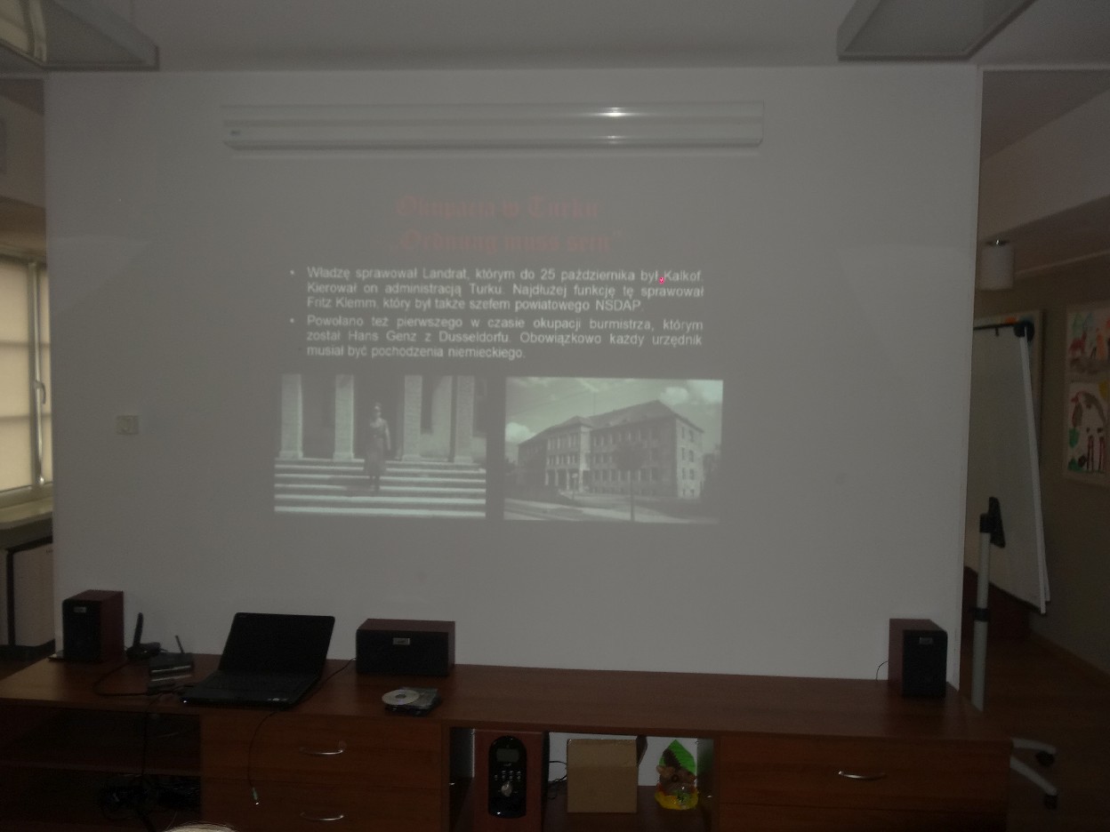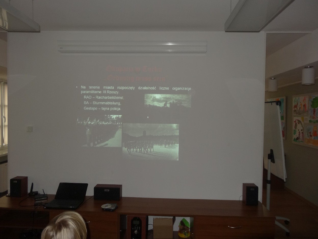 Na wystawie można było zobaczyć eksponaty przedstawiające uzbrojenie, wyposażenie żołnierzy oraz ubiory innych ludzi z czasów wojny. Pan Stachowiak, pracownik muzeum, opowiedział nam jak Polacy walczyli z Niemcami w naszym mieście. Zobaczyliśmy zdjęcia Turku z czasów wojny. Poznaliśmy prawa, nakazy i warunki w jakich żyli nasi rodacy.