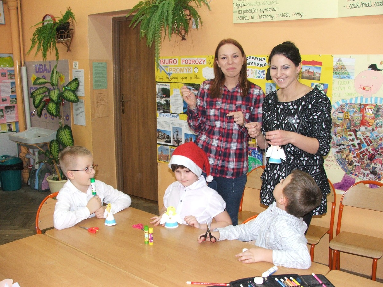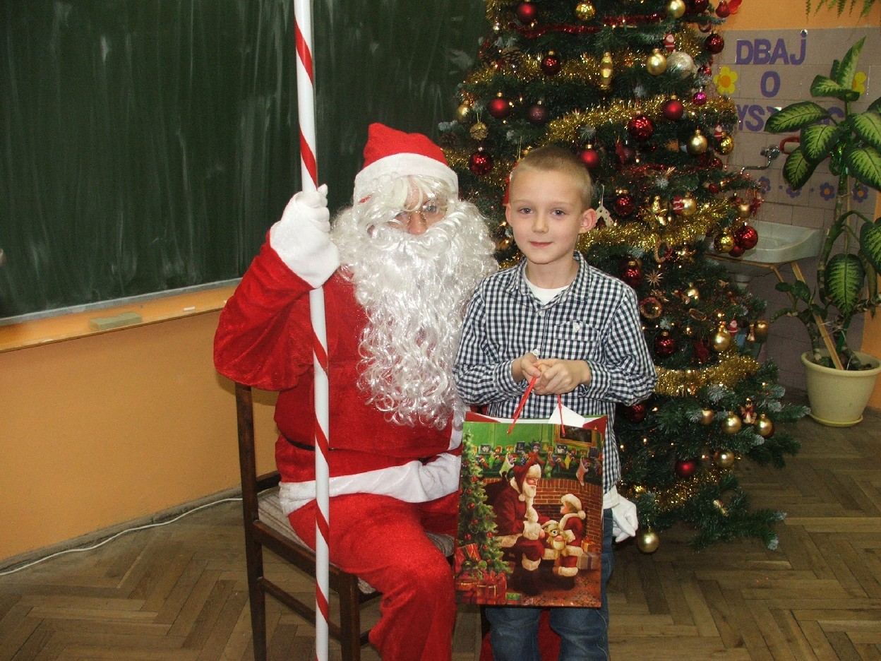 Dzisiaj nadszedł ten dzień – wyczekany, wymarzony. Klasa I b obchodziła mikołajki. W oczekiwaniu na przyjście Mikołaja dzieci wykonały świąteczne dekoracje – aniołki, dzwoneczki… Mamy pomagały w ubieraniu choinki. Jest strojna, kolorowa i radośnie mruga światełkami. Potem był słodki poczęstunek z domowych wypieków. Po długim przygotowaniu nareszcie dzieci doczekały się wizyty św. Mikołaja. Usłyszały dzwonek i pojawił się miły gość. Dzieci zaśpiewały piosenkę, a także obiecały, że będą grzeczne. Po takich deklaracjach Mikołaj przystąpił do swojego zadania – wręczył wszystkim upominki, które dzieci przyjmowały z wypiekami na twarzach i nieskrywaną radością. Do następnego roku drogi Mikołaju! Mamy nadzieję, że znów spotkamy się w tak radosnej i beztroskiej atmosferze. Teraz wszyscy czekamy na Boże Narodzenie. Wesołych Świąt życzy wszystkim klasa I b z wychowawcą i rodzicami.