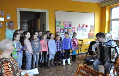 Sprawiało im to mnóstwo radości i świetnie się przy tym bawiły. Klasa IIe miała też przyjemność wspólnego śpiewania kolęd z zespołem Turkowianki - przy akompaniamencie Pana Radosława Darula - działającym przy MDK. Wtedy to właśnie, wszyscy poczuliśmy magię nadchodzących Świąt Bożego Narodzenia.