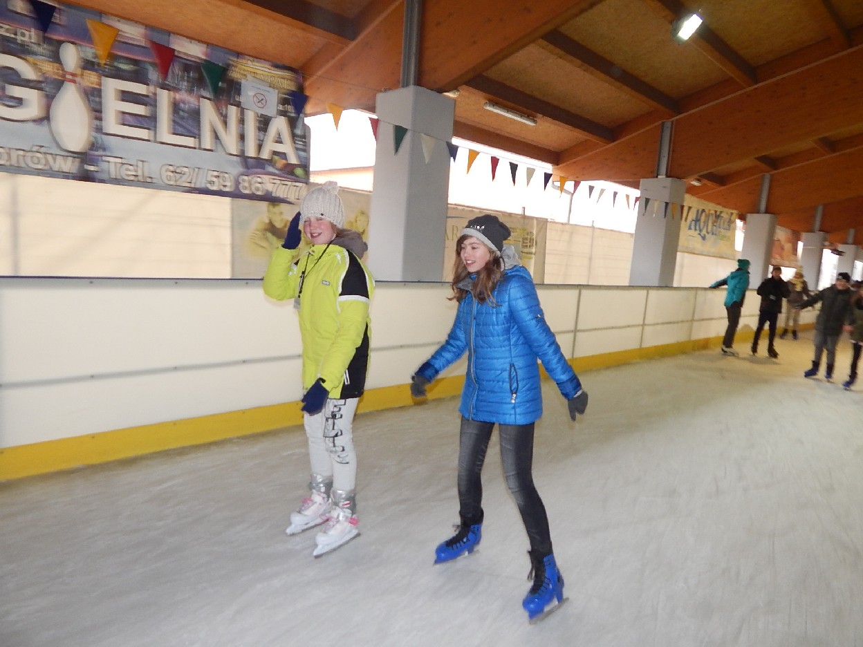 10 oraz 16 grudnia był dla uczniów naszej szkoły wspaniałym dniem. Mogliśmy po raz kolejny spróbować jazdy na łyżwach. Wyjazd ten zorganizował Samorząd Uczniowski. Pan instruktor bacznie obserwował nasze poczynania. Niektórzy nauczyli się hamować, jeździć slalomem i przeplatanką. Jazda tym sposobem jest bardzo efektowna. Nikt nie musi nas przekonywać, że łyżwy to doskonały sposób spędzania wolnego czasu. Niektórzy z nas podczas ferii zimowych będą doskonalić swoje umiejętności łyżwiarskie.