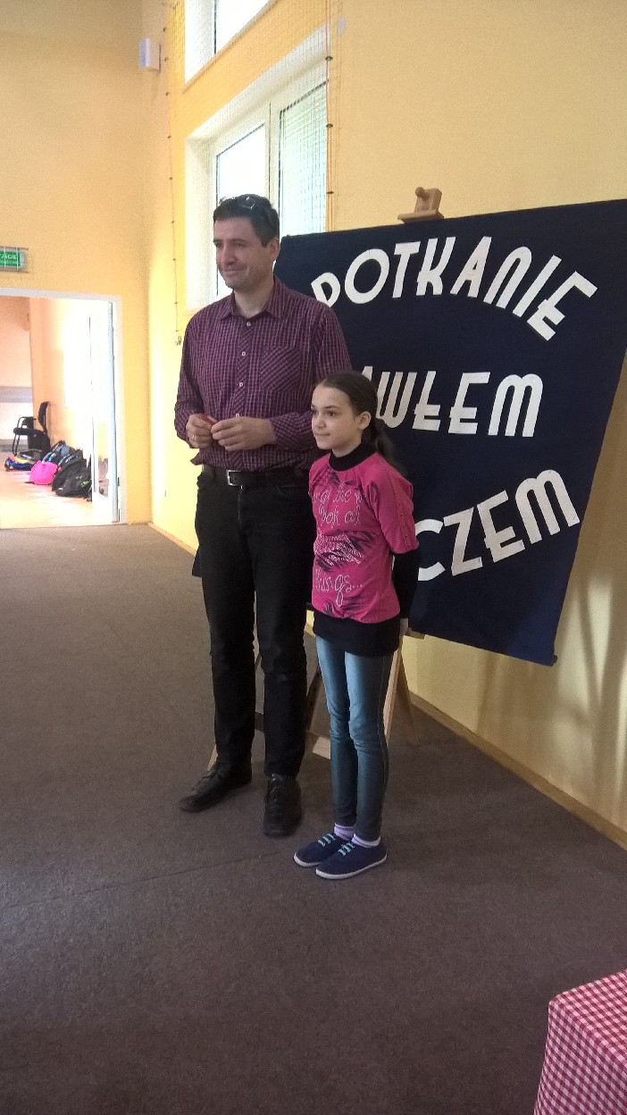 Pan Paweł poprowadził spotkanie dla swoich czytelników w ciekawej formule, zapraszając uczniów do rozmowy o książkach przy herbacie. Z tych rozmów wszyscy mogli dowiedzieć się ciekawych historii o tym, jak np. doszło do powstania książek o rodzinie Ciumków, dlaczego warto przeczytać książkę „Pieniądze czy kasa”. Jednakże największą popularność zyskała „Tajemnica człowieka z blizną”, którą prawie każdy uczeń chciał zdobyć do własnej, domowej biblioteczki.