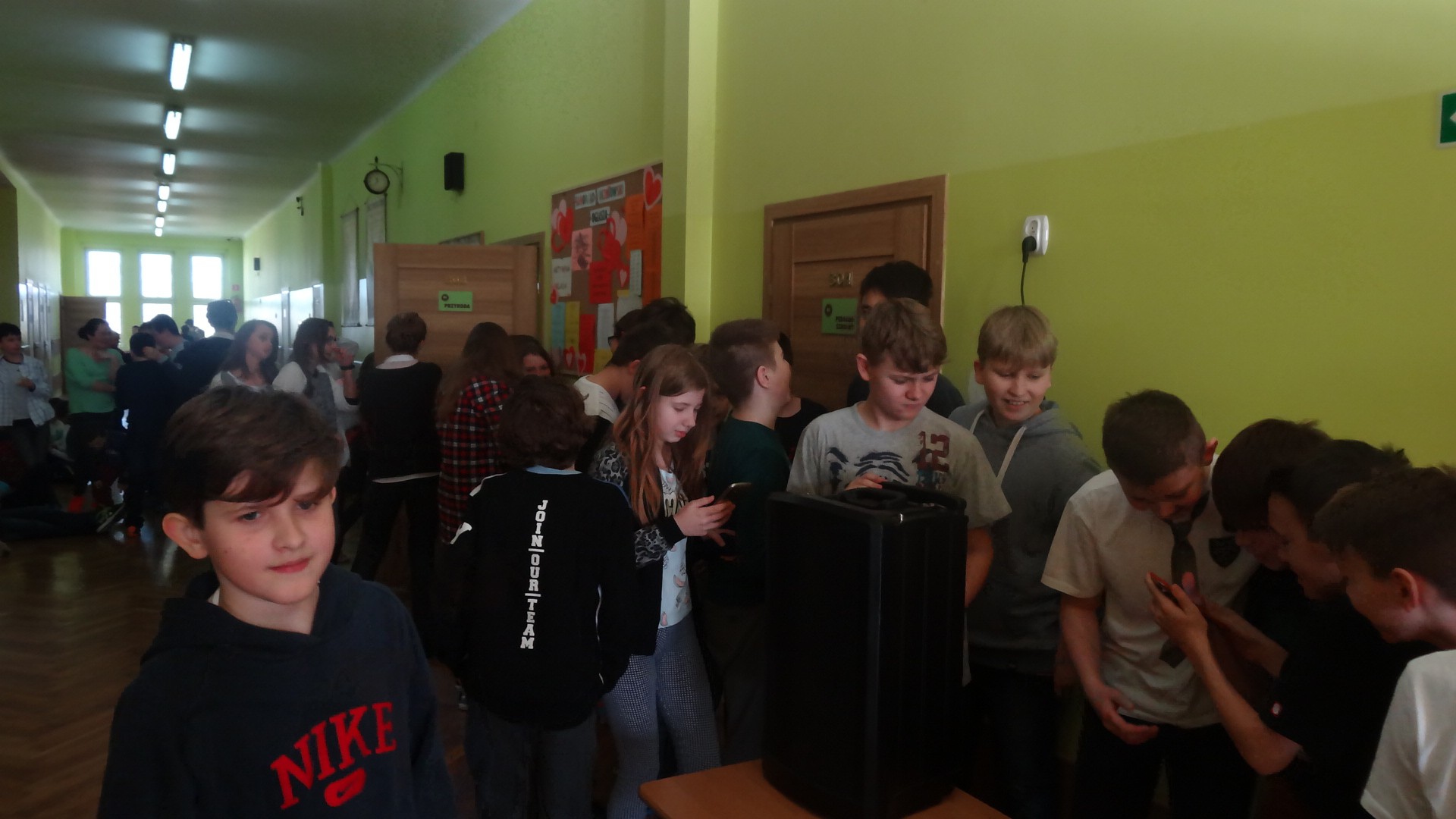 W dniu 10 lutego 2016 roku z okazji zbliżających się Walentynek doskonale się bawiliśmy. Wszystko to za sprawą muzyki, którą przygotowali chłopcy z klasy VI e. Znane przeboje rozbrzmiewały na korytarzu drugiego piętra podczas przerw lekcyjnych. W tym czasie wszystkim uczniom jak i nauczycielom udzielił się dobry nastrój. Na chwilę oderwaliśmy się myślami od lekcji. Chcielibyśmy, żeby takie przerwy były częściej organizowane w naszej szkole.