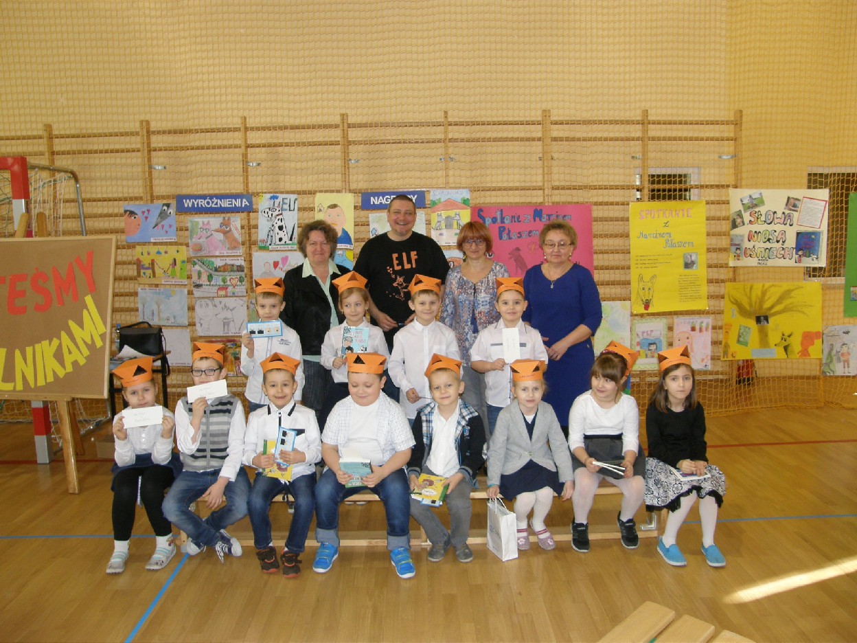 Uczniowie wszystkich klas przygotowywali się do Spotkania z p. Marcinem Pałaszem już od wielu tygodni: czytali Jego książki, słuchali fragmentów czytanych przez nauczycieli oraz brali udział w Konkursie Czytelniczo – Plastycznym pt. „Czy znamy Marcina Pałasza?”. Nagrody za najciekawsze prace otrzymali: Filip Perliński 1e, Marta Cieślak 1d, Maria Orłowska 1d, Stanisław Nawrot 1a, Michalina Mirkiewicz 1a, Michalina Stasiak 5d, Agata Szelewska 6a, Kewin Trzmielewski 6a, Anna Przekwas 3b, Zofia Ostrowska 2d, Nadia Sidorowicz 2d. Przyznano również wyróżnienia, które otrzymali: Nadia Stawska 1d, Alicja Grabowska 1e, Wiktoria Gadzinowska1d, Oliwia Molenda 1a, Patrycja Sosińska 4d, Aleksandra Pietrzak 5d, Agata Dzikowska 6a, Julia Urbańczyk 4d, Piotr Tomalak 6e, Kinga Seidel 2e, Weronika Koperska 2c, Gabriela Hatlińska 2c. Uczniów oceniała Komisja w składzie: przewodnicząca Aldona Piwońska, członkowie: Aleksandra Antczak i Elżbieta Nowak.