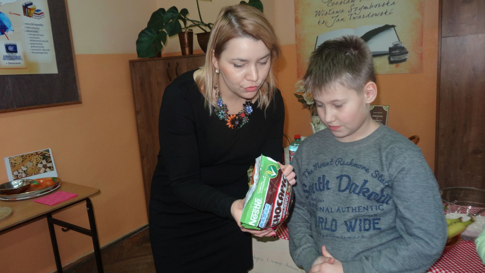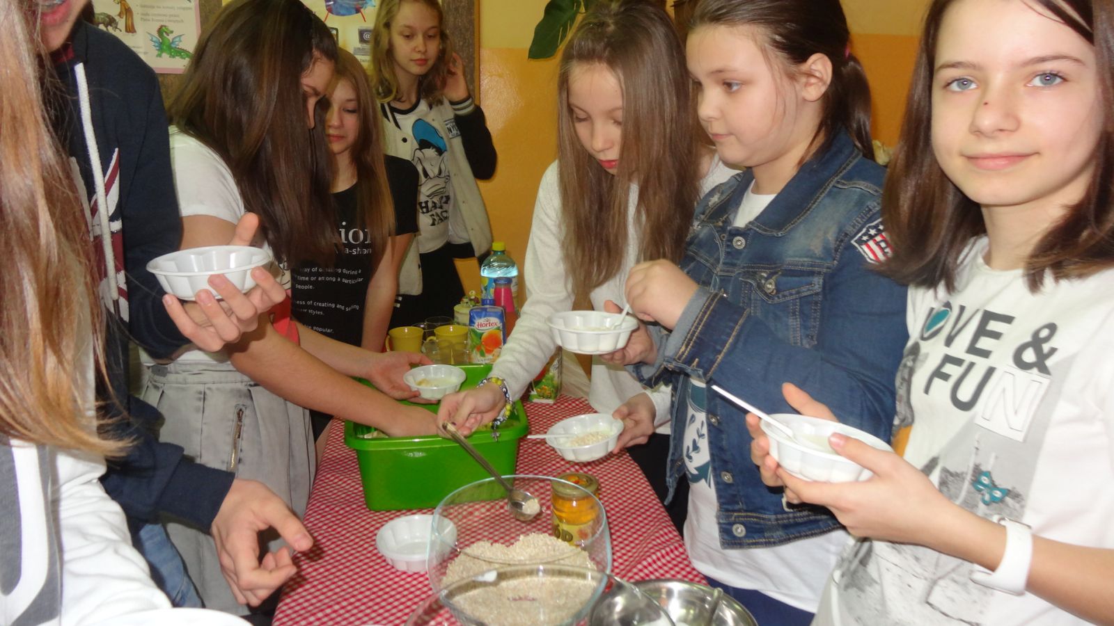 22 marca w sali 407 odbyło się spotkanie z dietetykiem, panią Justyną Wodzińską. Wzięli w nim udział uczniowie, rodzice i nauczyciele. Spotkanie to odbyło sie medodą warsztatową. Najpierw pani dietetyk wspólnie z uczniami omówiła zasady odżywiania zgodne z nową Piramidą Zdrowego Odżywiania i Aktywności Fizycznej. Później wszyscy uczestnicy spotkania przekonali się, ile cukru mieści się w różnych napojach typu coca cola, napój owocowy, woda smakowa itp. Następnym etapem było eliminowanie ze stołu produktów kalorycznych, a zastępowanie zdrowymi. Pani dietetyk swierdził, że coś słodkiego człowiek również musi zjadać aby odżywić mózg, więc zaproponowała przygotowanie słodkiego deseru. Deser okazał się wyśmienity. Warto zapamiętać składniki: jogurt naturalny, banan, płatki kukurydziane, miód, orzechy włoskie.
