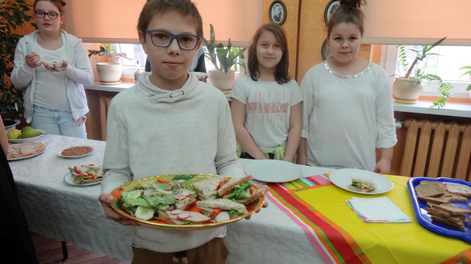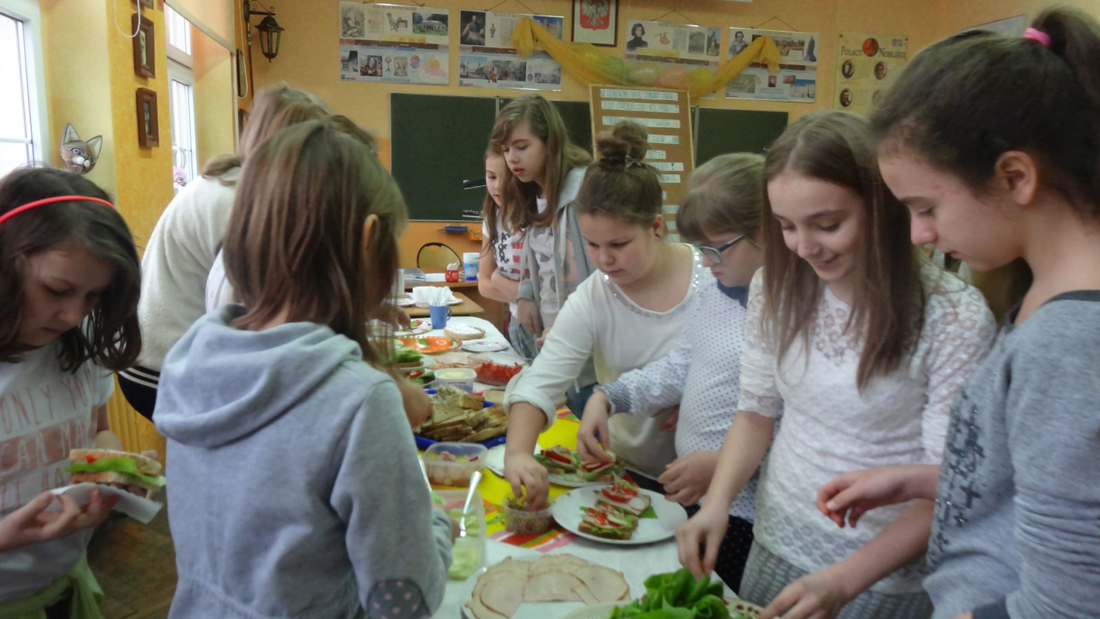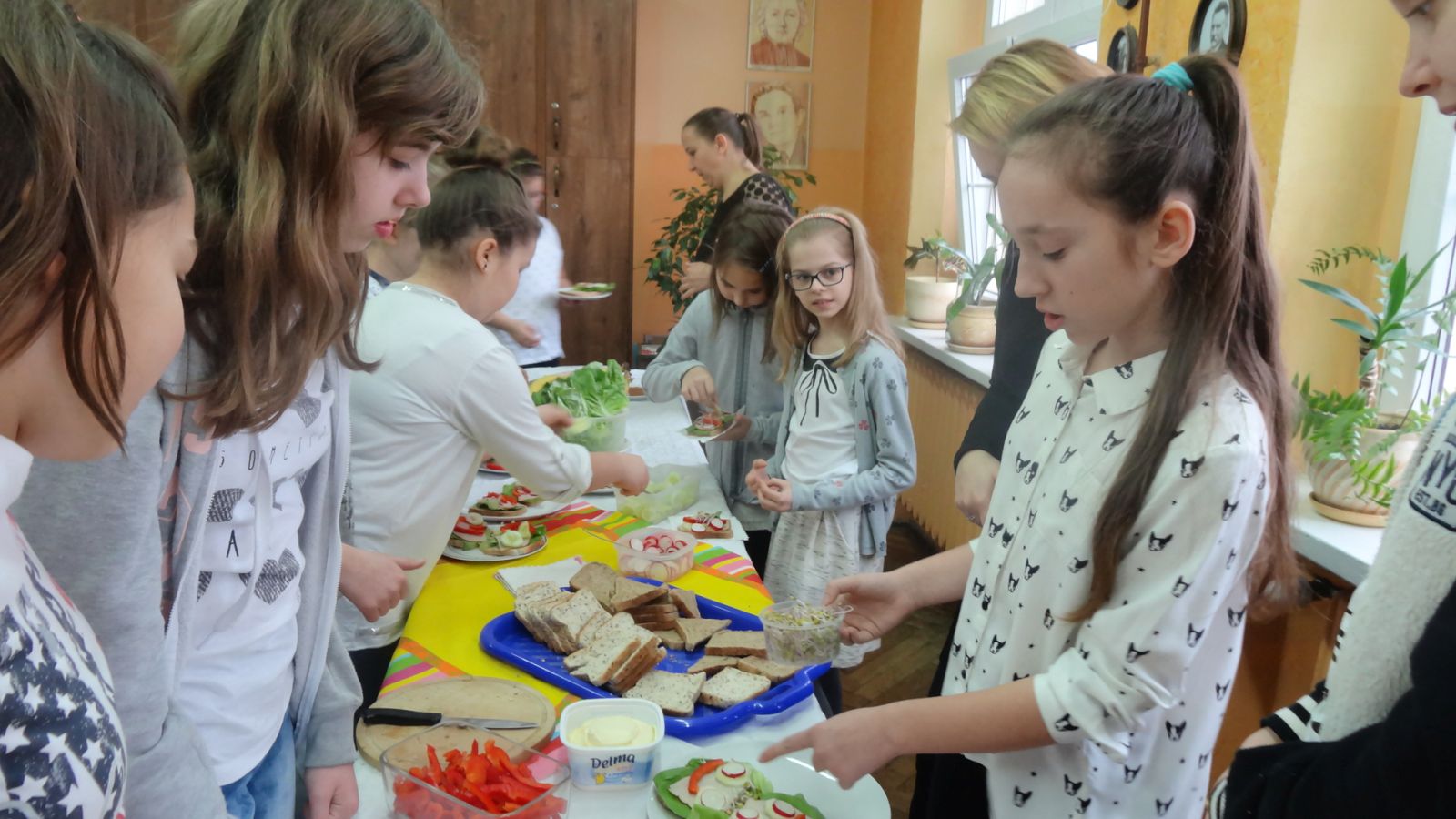 Na koniec uczniowie przygotowali kanapki wg własnego pomysłu i omówli dobór użytych składników. Pani dietetyk wszystkich przekonała, że na stałe warto wprowadzić i stosować zasady eliminowania niezdrowych produktów na rzecz zdrowych, odżywczych i równie smacznych. Spotkanie było bardzo wartościowe, podczas, którego wiedza łączyła sie z praktyką. Inicjatorką spotkania była pani Emilia Kozłowska.