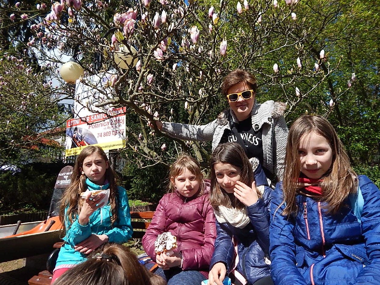 W dniach 25 – 29 kwietnia klsy: 4a, 4b, część klasy 4c i 6c realizowały program nauczania na zielonej szkole w Polanicy-Zdrój. Był to czas przeznaczony na ciekawe zajęcia edukacyjne, pasjonujące wycieczki, udział w warsztatach, bezpośredni kontakt z przyrodą, ze zwierzętami, poznawanie historii ciekawych miejsc i ludzi. Bardzo ważnym punktem programu był ruch, gry, zabawy w ośrodku i na boisku, zdrowe i pyszne posiłki oraz dyskoteki. Należy dodać, że na atrakcyjność pobytu miał rownież wpływ doskonale urządzony ośrodek „Green Rest: chodziliśmy w obuwiu zmiennym, była szatnia, miejsce gospodarcze na torby podróżne, pokoje były świetnie wyposażone, panował regulamin zajęć i zachowania się w tym domu.