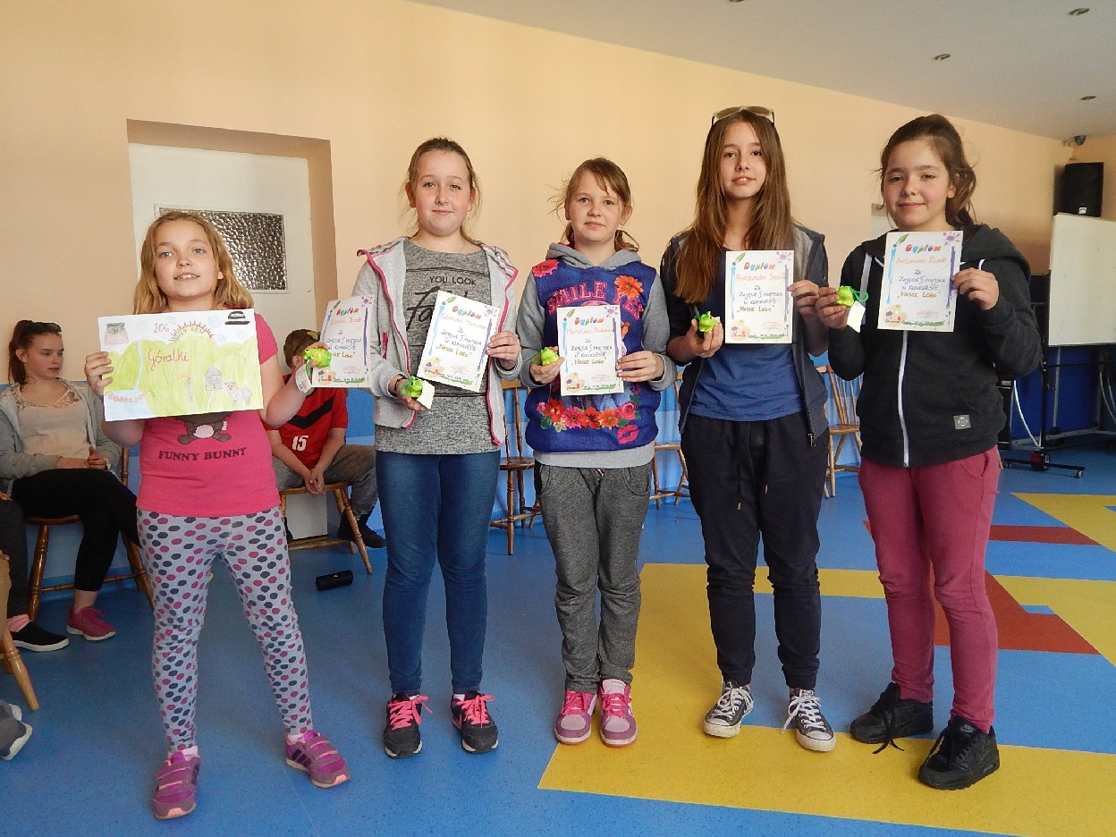Wszystko było tak doskonale zorganizowane, że telefony i tablety z którymi praktycznie się nie rozstajemy, okazały się nam niepotrzebne przez cały dzień. Innym ważnym elementem promowania zdrowego stylu życia to picie wody zamiast słodkich napojów oraz spożywanie posiłków bogatych w owoce i warzywa bez kupowannia kalorycznych przekąsek. Bardzo miło wspominamy wychowawczynie: panią Gosię i Martę, które wraz z naszymi opiekunami organizowały nam ciekawe zajęcia. Wszystkie wrażenia i wydarznia zamieściliśmy w Zielonym pamiętniku. Zielona szkoła zakończyła się podsumowaniem działań, roztrzygnięciem konkursów, za które otrzymaliśmy nagrody, dyplomy a nawet małe upominki. Jednym słowem było tak wspaniale, że od razu po przyjeździe planujemy następny wyjazd do Polanicy-Zdroju, aby dalej poznawać krajobraz Dolnego Śląska, bawić się i uczyć w tym malowniczym, uzdrowisku. Relacja z wydarzeń i wycieczek ukazana jest na zdjęciach i krótkich filmikach. Opiekunami zielonej szkoły byłi: pani Emilia Kozłowska, pani Irena Dominiak i pan Tomasz Misiak.