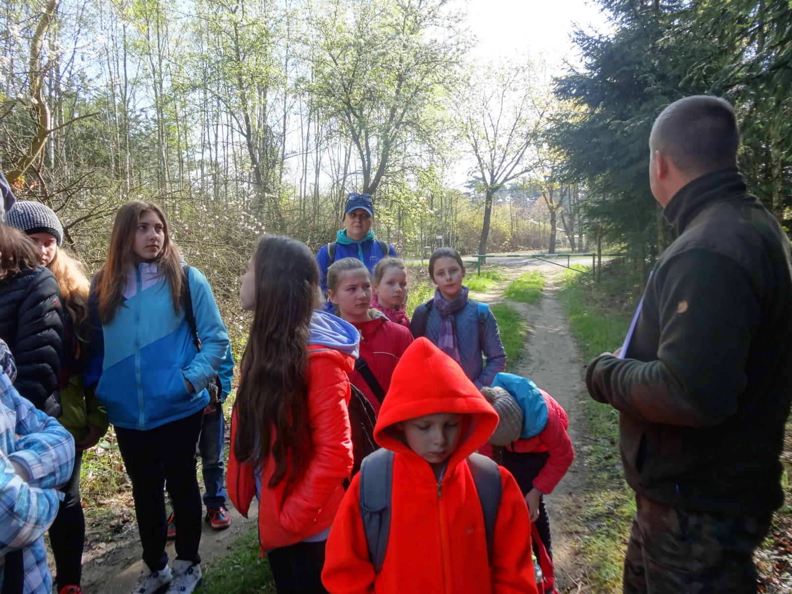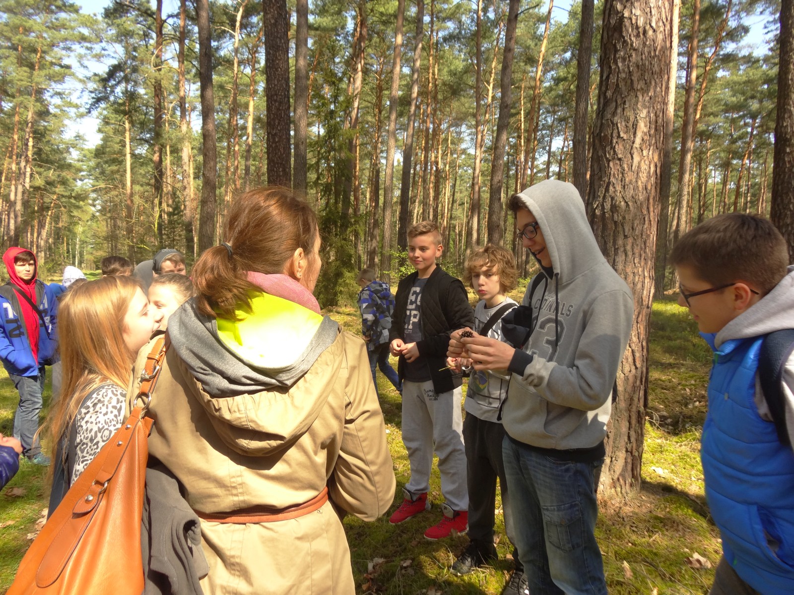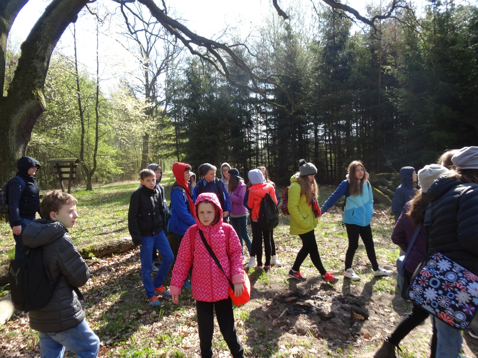 29 kwietnia 2016 roku klasy 4c, 6e i 6d pod opieką p. Bożeny Mielczarek i p. K. Błajet brały udział w lekcji przyrody w terenie. Lekcja przyrody odbyła się na ścieżce dydaktycznej „Moczary” w Leśnictwie w Grzymiszewie. Prowadził ją p. Radosław Szociński podleśniczy z Nadleśnictwa Turek. Uczniowie zobaczyli stawy będące ostoją płazów, ptaków i bobrów. Oglądali ogromne i sędziwe dęby szypułkowe, które są pomnikami przyrody, piękne łąki położone w dolinie rzeki Topiec oraz ul dla dzikich pszczół. W czasie drogi, którą przebyli pan podleśniczy opowiadał o drzewach i roślinności, które napotkaliśmy (paprocie, skrzypy, przylaszczkę, zawilec gajowy, fiołek leśny, ziarnopłon wiosenny). Dzięki lekcji w terenie uczniowie mogli wzbogacić wiedzę przyrodniczą, rozwinąć zainteresowania a przede wszystkim kształtować szacunek do przyrody.