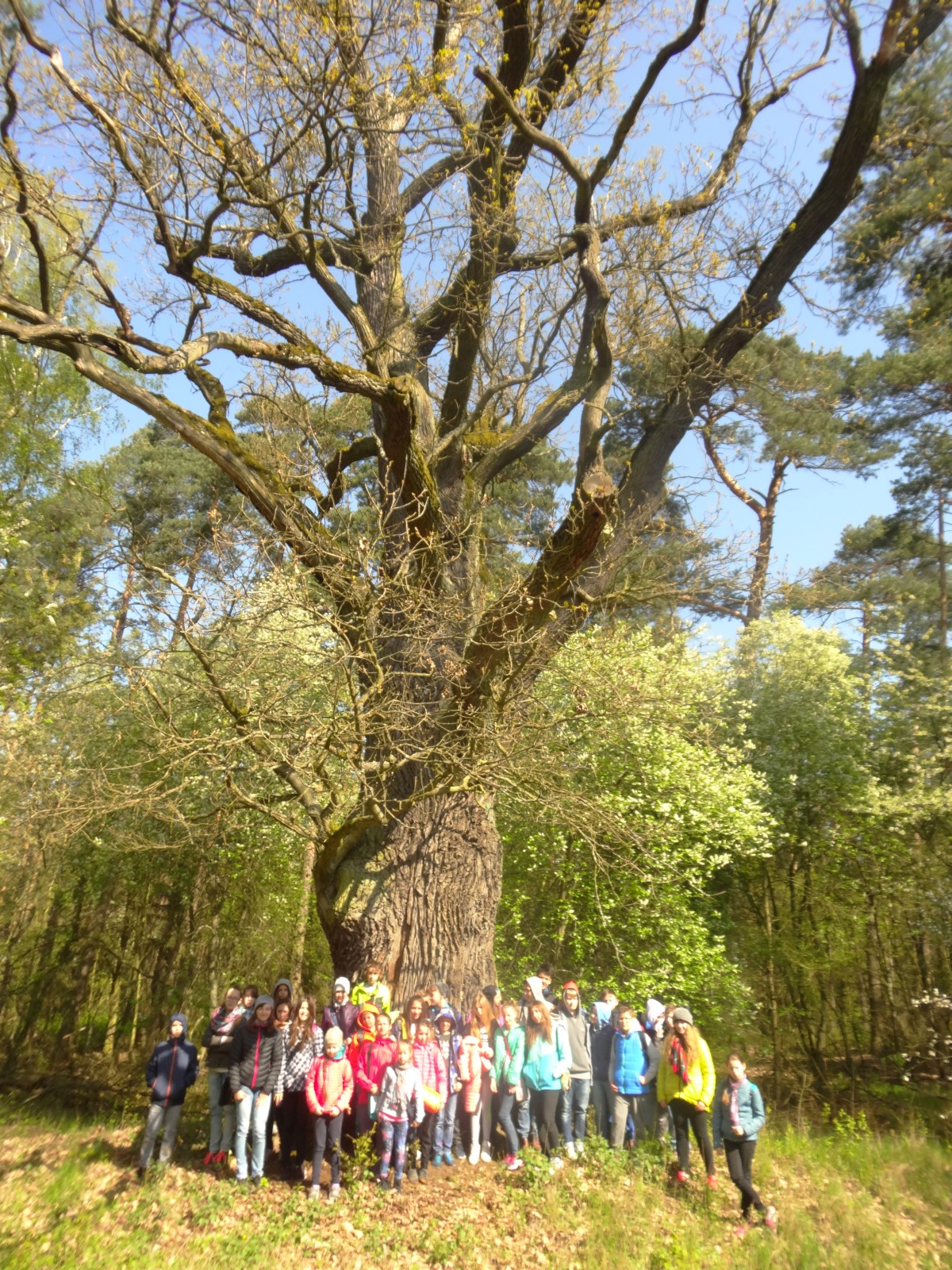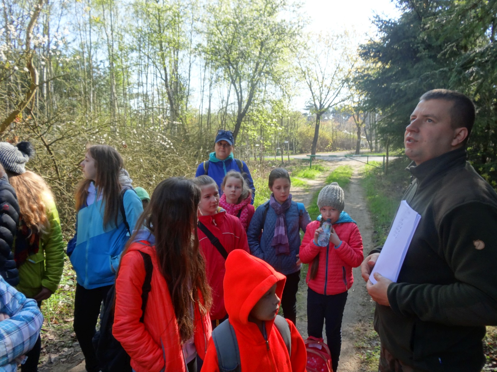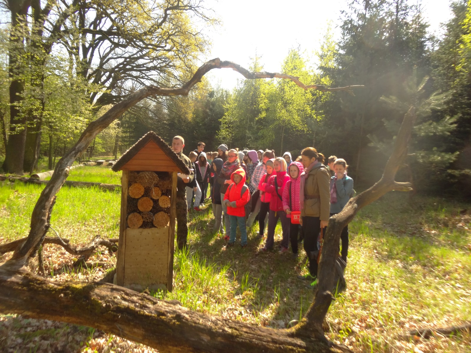29 kwietnia 2016 roku klasy 4c, 6e i 6d pod opieką p. Bożeny Mielczarek i p. K. Błajet brały udział w lekcji przyrody w terenie. Lekcja przyrody odbyła się na ścieżce dydaktycznej „Moczary” w Leśnictwie w Grzymiszewie. Prowadził ją p. Radosław Szociński podleśniczy z Nadleśnictwa Turek. Uczniowie zobaczyli stawy będące ostoją płazów, ptaków i bobrów. Oglądali ogromne i sędziwe dęby szypułkowe, które są pomnikami przyrody, piękne łąki położone w dolinie rzeki Topiec oraz ul dla dzikich pszczół. W czasie drogi, którą przebyli pan podleśniczy opowiadał o drzewach i roślinności, które napotkaliśmy (paprocie, skrzypy, przylaszczkę, zawilec gajowy, fiołek leśny, ziarnopłon wiosenny). Dzięki lekcji w terenie uczniowie mogli wzbogacić wiedzę przyrodniczą, rozwinąć zainteresowania a przede wszystkim kształtować szacunek do przyrody.