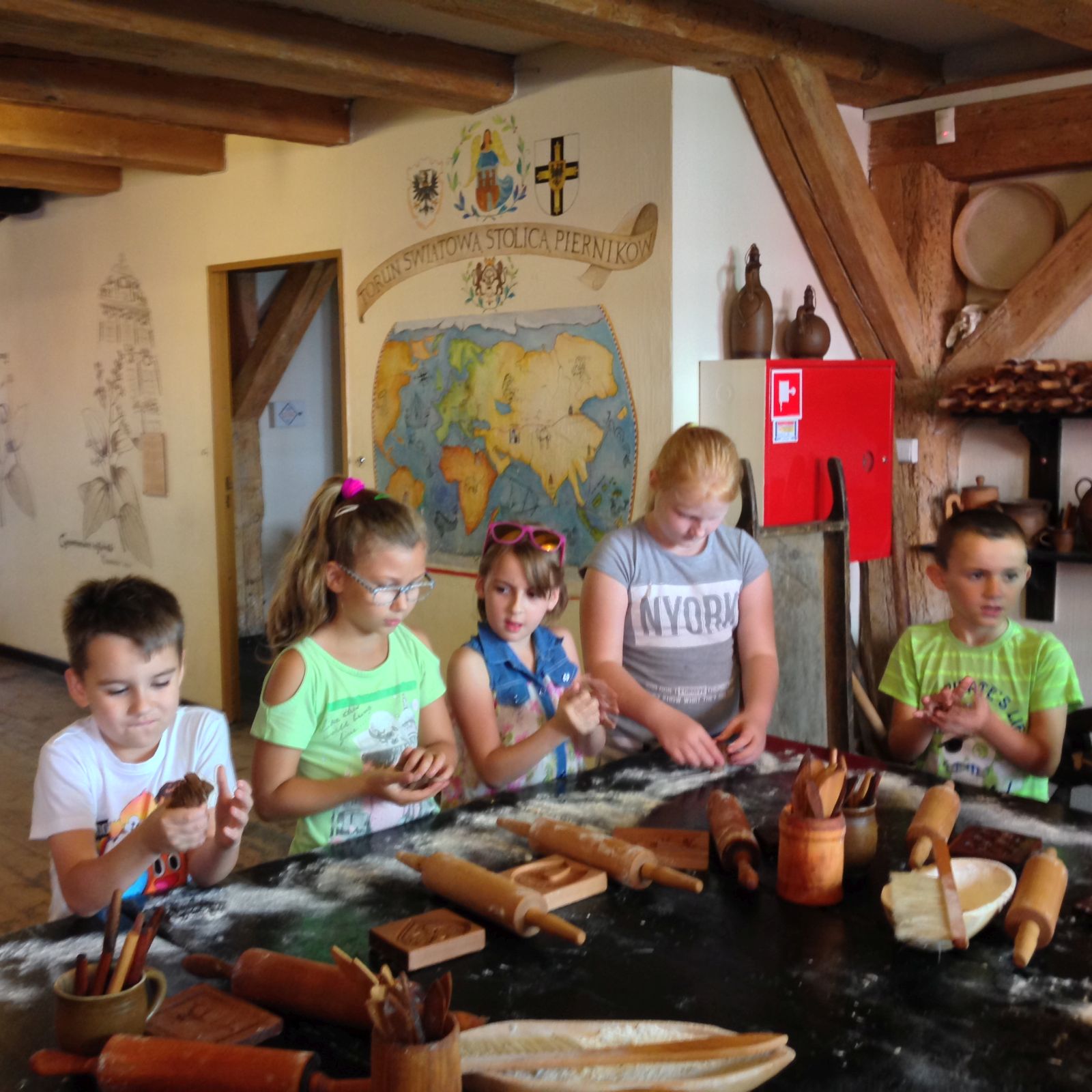 Kolejnym punktem wycieczki była wizyta w Żywym Muzeum Piernika. Okazało się, że nie jest to takie zwykłe muzeum. Pracownicy muzeum byli ubrani w średniowieczne stroje i mówili po staropolsku. Tam każdy mógł brać udział w pieczeniu pierników - własnoręcznie upiec i zabrać je na pamiątkę do domu. Każdy z uczestników miał możliwość poznania tradycyjnego przepisu na ten słynny toruński przysmak. Uczniowie musieli również złożyć przysięgę, że nie zdradzą nikomu tej receptury. Dodatkową atrakcją było kupowanie pamiątek z piernika. Po obiedzie ostatnim punktem wycieczki był rejs statkiem po Wiśle. Pełni wrażeń i w doskonałych humorach wróciliśmy do domu.