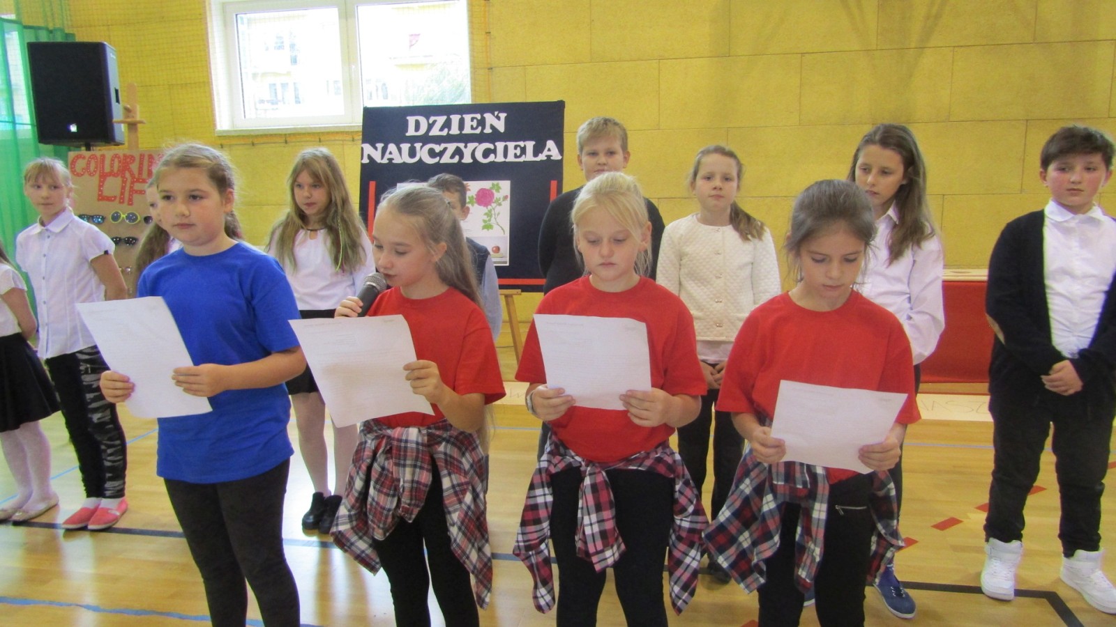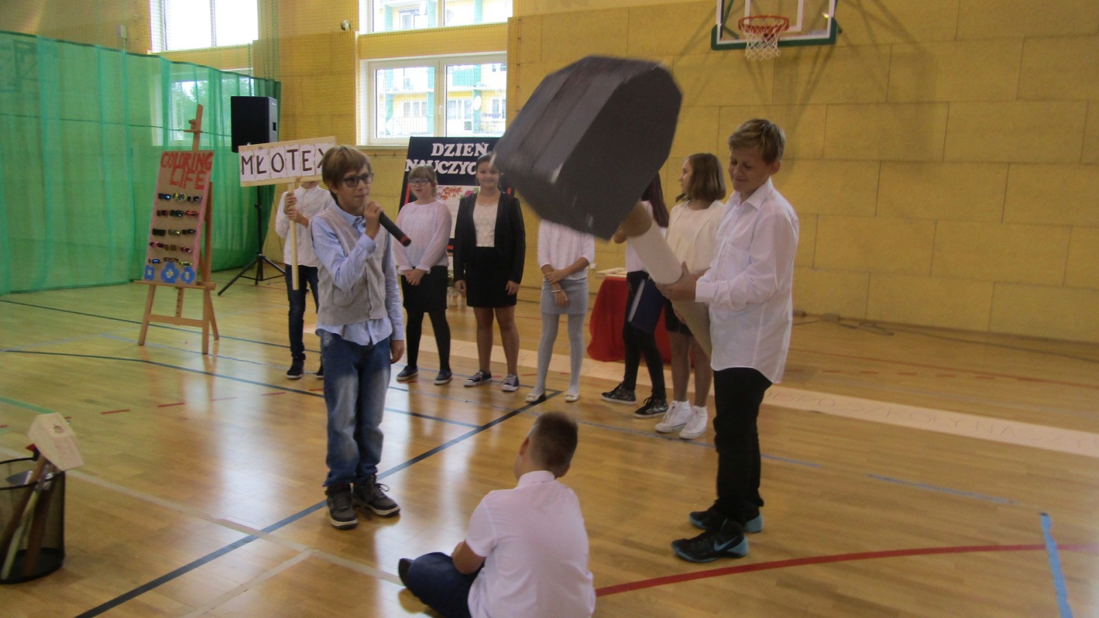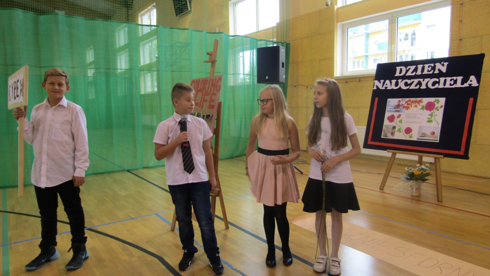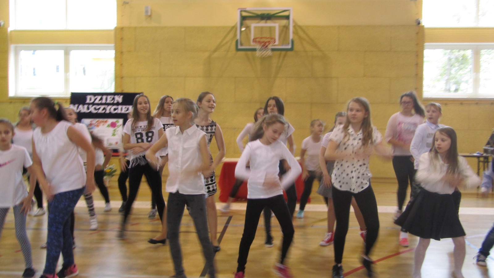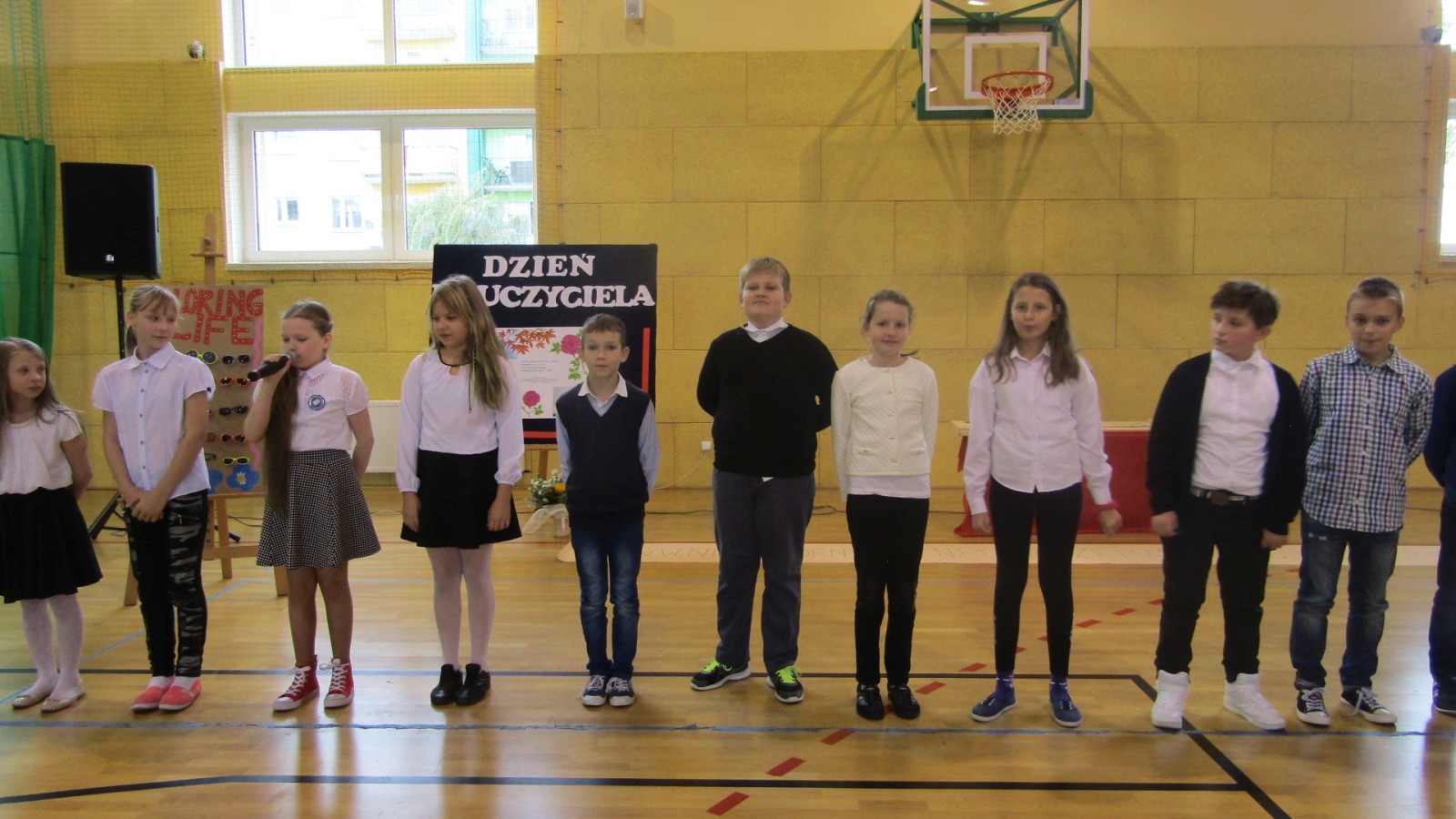 13 października odbył się apel z okazji Dnia Edukacji Narodowej, święto zwane często Dzień Nauczyciela. W programie były: tańce do znanych hitów muzycznych, humorystyczne scenki, piosenka i wierszownane życzenia. Uczniowie, którzy wcielili sie w role przedstawicieli handlowych, zaprezentowali przydatne pomoce dydaktyczne dla nauczyciela i ucznia. Te nietypowe pomoce to: dyby szkolne, różowe okulary, dyscyplinek z witek wierzbowych i młotki do wbijania wiedzy. Humorystyczne scenki przekonały nas, że możliwe jest zastosowanie prezentowanych pomocy we wspłóczesnej szkole. Na potwierdzenie tego, że w szkole jest fajnie Kaja zaśpiewała piosenkę „Bo do szkoły warto chodzić”. Program artystyczny wypełniony był tańcami w wykonaniu dziewczzynek klas 4 – 6. Należy przy tym powiedzieć, że tańce cieszą się w naszej szkole dużym zainteresowaniem, czego dowodem jest coraz większa grupa roztańczonych uczniów. Apel zakończyliśmy życzeniami od burmistrza miasta Turku Romualda Antosika. Część artystyczną przygotowały klasy: 4 c, 5 a i 5c wraz z wychowawcami.