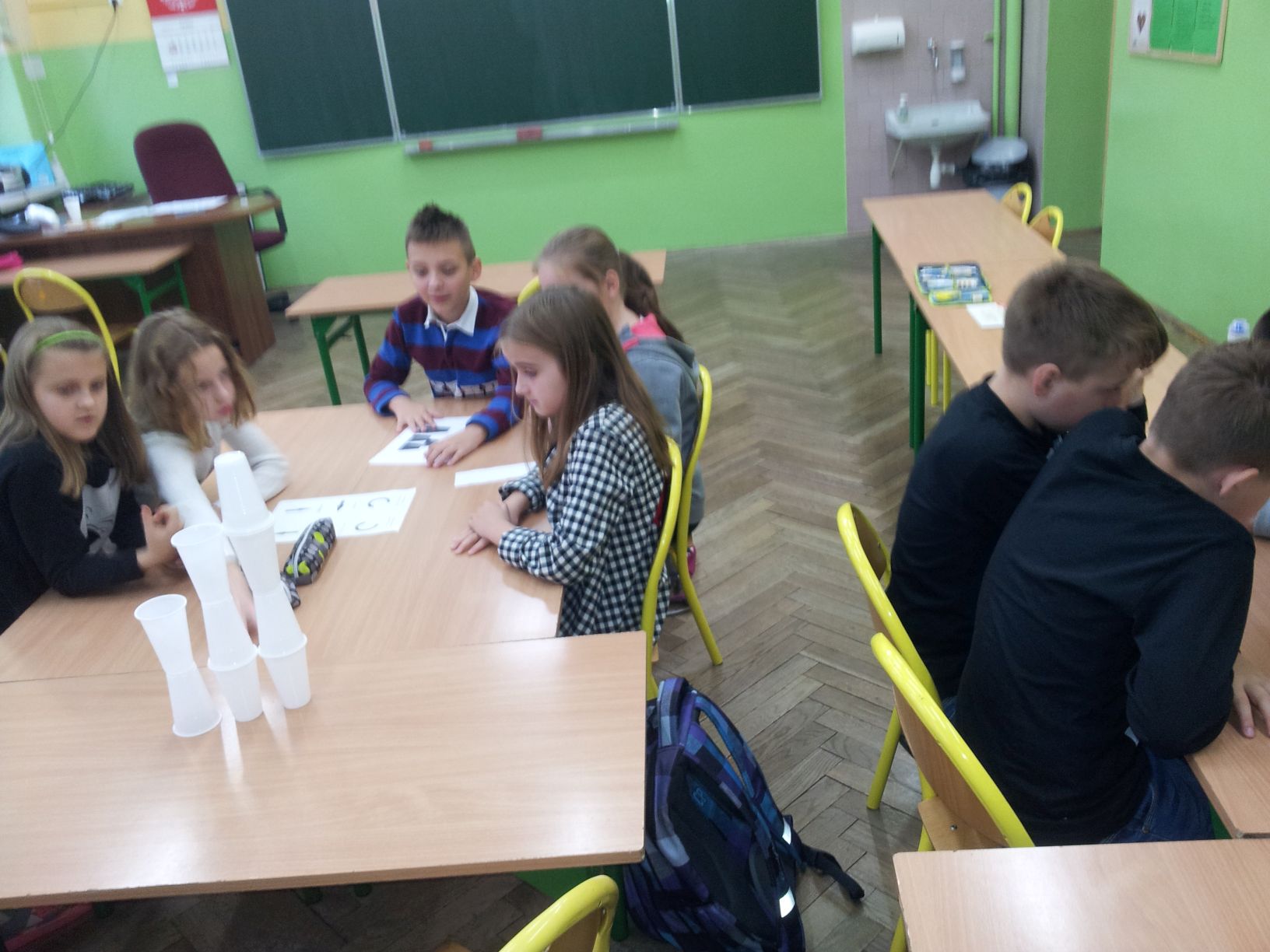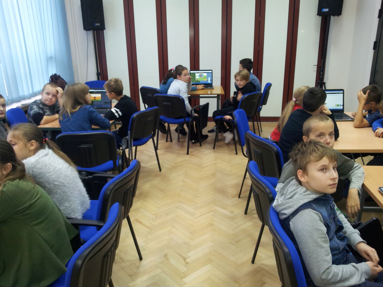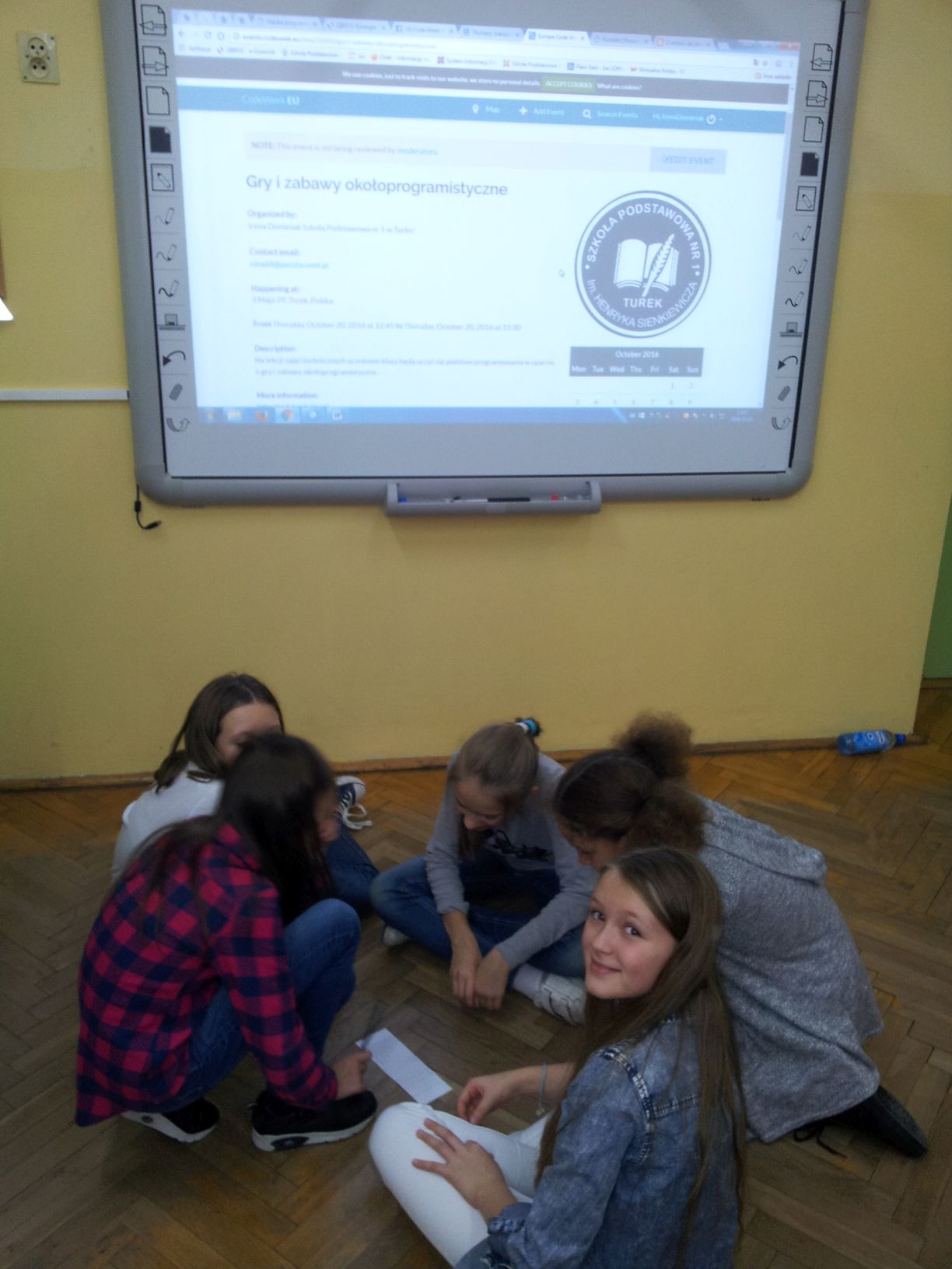 Tygodniem Kodowania. Uczniowie na zajęciach komputerowych oraz zajęciach technicznych uczyli się podstaw programowania także bez użycia komputera. Były to m. in. gry i zabawy okołoprogramistyczne, programowanie budowli przy pomocy plastikowych kubków, ale również zajęcia w ramach innowacji pedagogicznej "Scratch uczy programować". Wzięliśmy też udział w warsztatach przygotowanych przez Miejską Bibliotekę Publiczną im. Włodzimierza Pietrzaka w Turku, polegających na programowaniu na stronie Codemonkey.