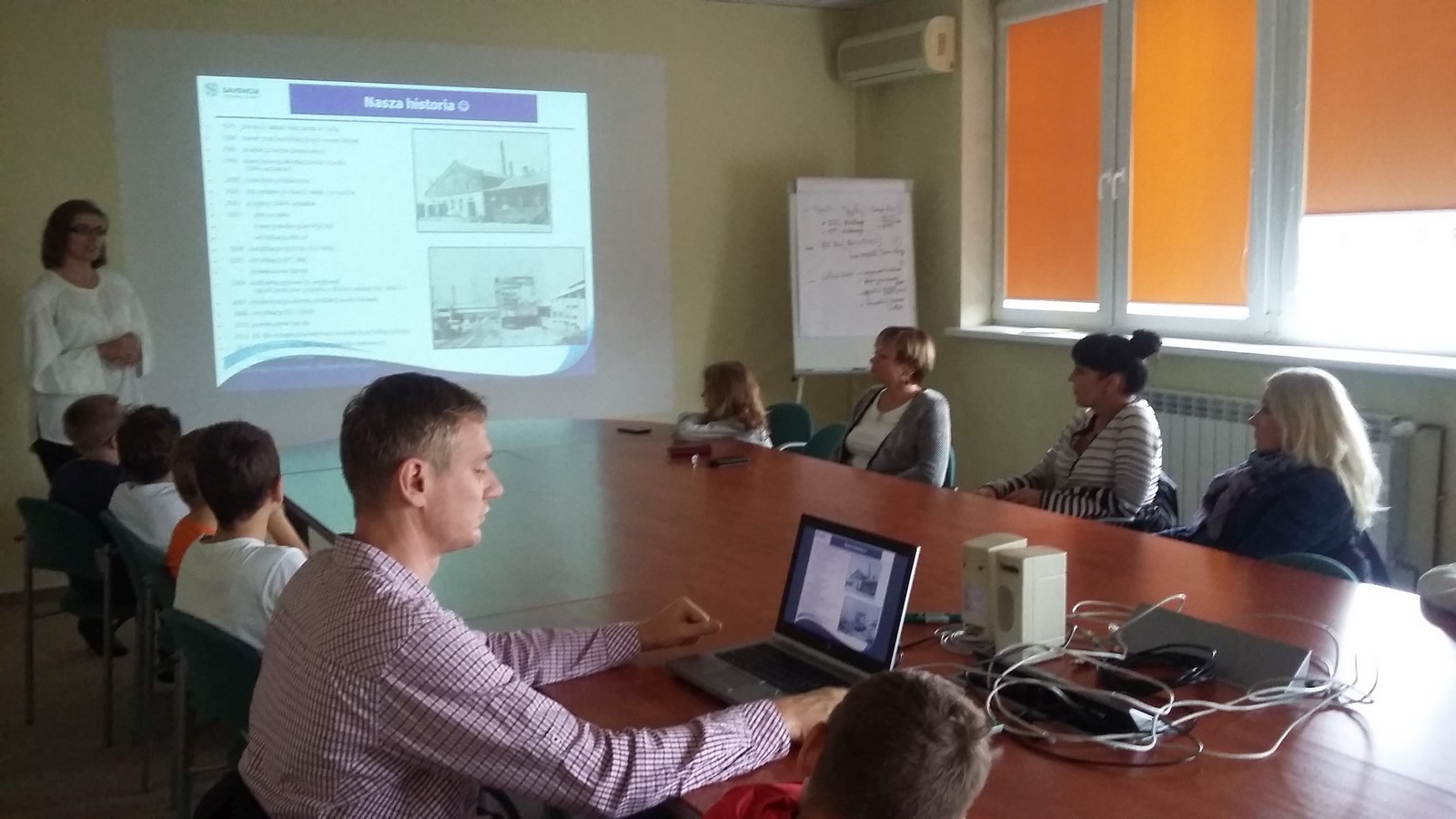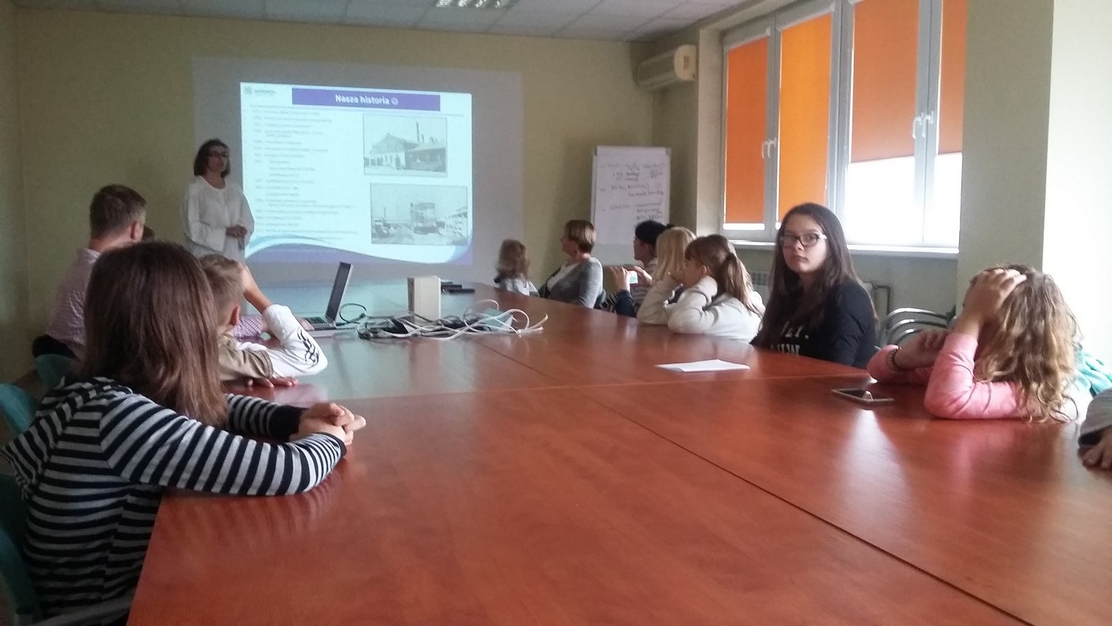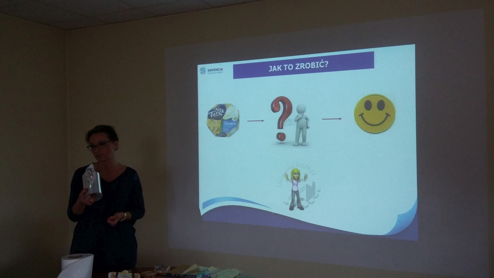 Spotkaliśmy się wszyscy przed szkołą o godzinie 11:25 i wyruszyliśmy na wyprawę. Padało, na szczęście mieliśmy parasole oraz płaszcze przeciwdeszczowe. Dotarliśmy do budynku, zdjęliśmy kurtki, a jedna z pracowniczek zaprowadziła nas do sali. W pokoju stał ogromny stół, przy którym usiedliśmy. Przedstawiciele firmy opowiedzieli nam o produkcji sera i osobach przy niej pracujących. Poznaliśmy historię zakładu. Zobaczyliśmy, w jaki sposób są wykonane opakowania. Dowiedzieliśmy się również, kto zarządza całą mleczarnią i poszczególnymi działami oraz jak i skąd dostarczane jest mleko. Następnie przeszliśmy do budynku, gdzie są wyrabiane sery. Musieliśmy ubrać specjalne czepki, płaszcze i osłony na buty, ponieważ zakład przywiązuje dużą wagę do czystości. Weszliśmy na korytarz, z którego mogliśmy obejrzeć produkcję. Pożegnaliśmy się z pracownikami i wróciliśmy do szkoły.