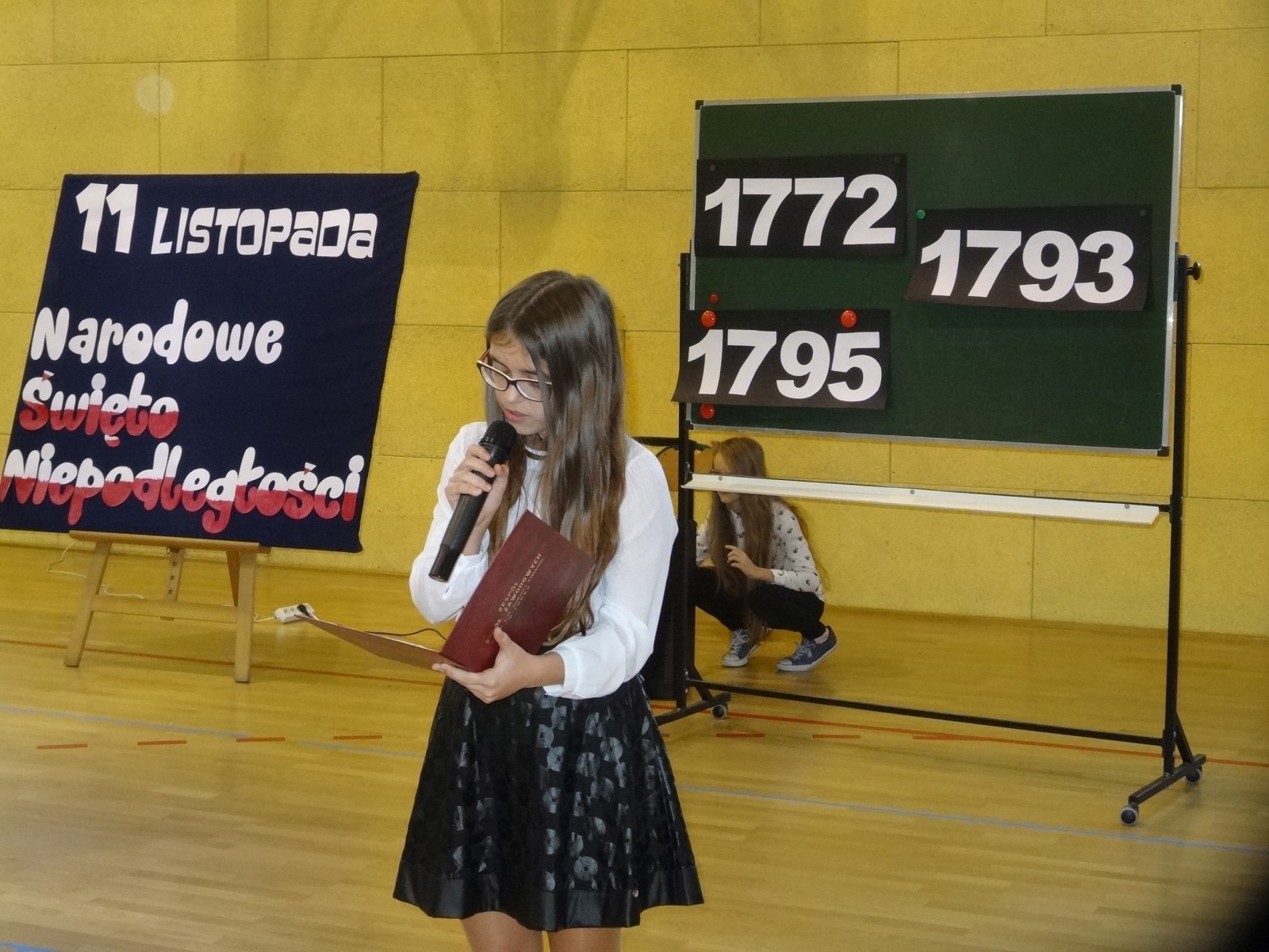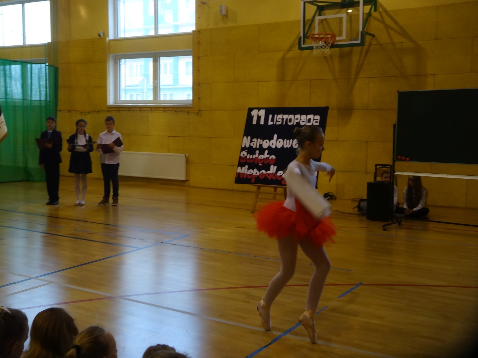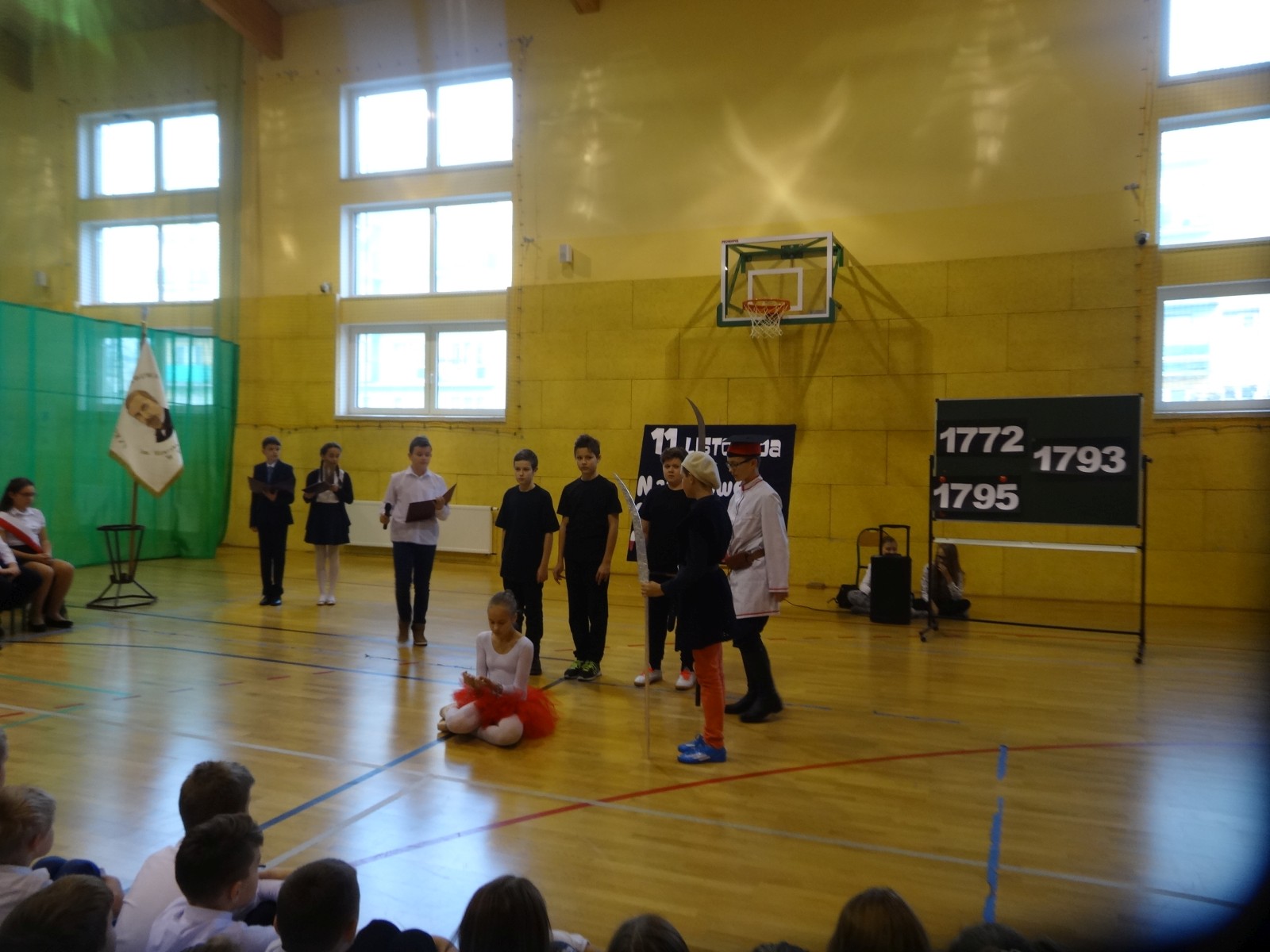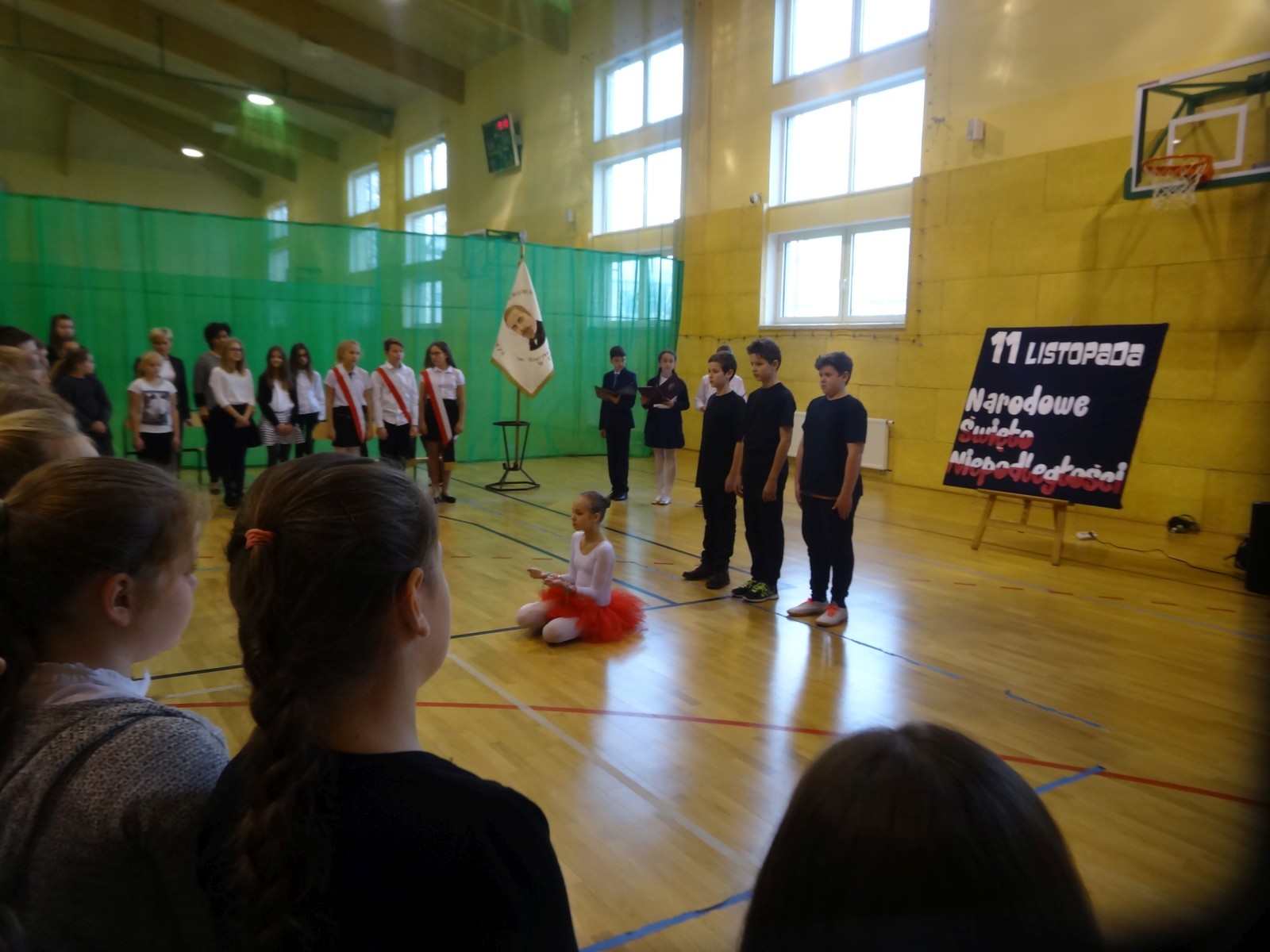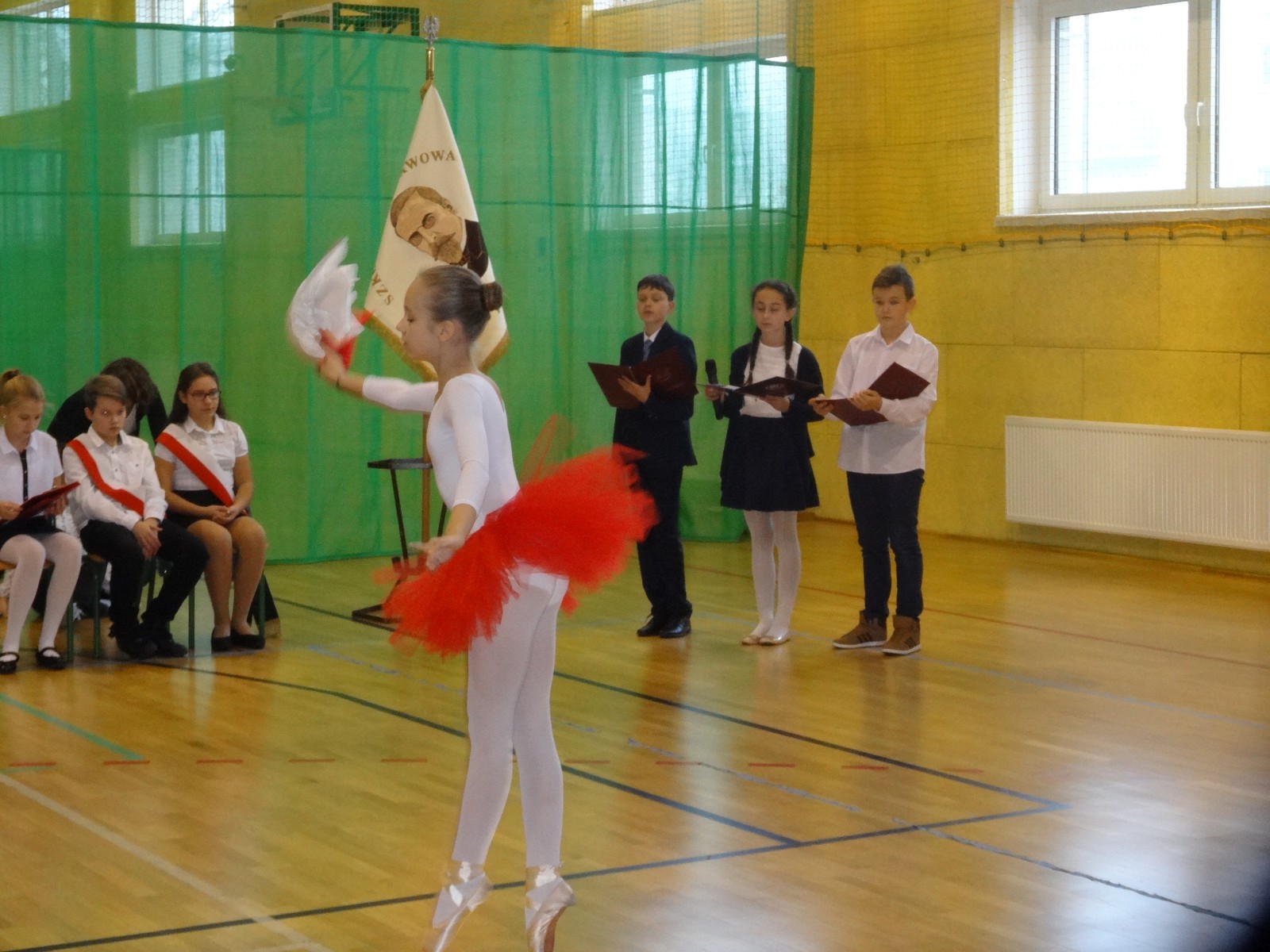 Na scenie można było zobaczyć upersonifikowaną Polskę. W tę rolę wcieliła się jedna z uczennic naszej szkoły Oliwia Bartosik. Głównym punktem przedstawienia był taniec klasyczny(balet) w wykonaniu tej uczennicy. Uczniowie odgrywali także rolę kosynierów i zaborców. W całym przedstawieniu nie zabrakło wierszy i popularnych pieśni patriotycznych.Apel miał uświadomić uczniom, jak ważnym i upragnionym przez naszych przodków wydarzeniem było odzyskanie przez Polskę niepodległości. Dzień 11 listopada stał się dla nas symbolem miłości do ojczyzny, walki o wolność, symbolem wiary i zwycięstwa.Apel przygotowali uczniowie klas VIc i kółka historycznego pod okiem nauczycielek p. Małgorzaty Pakuły i p. Bożeny Mielczarek.
