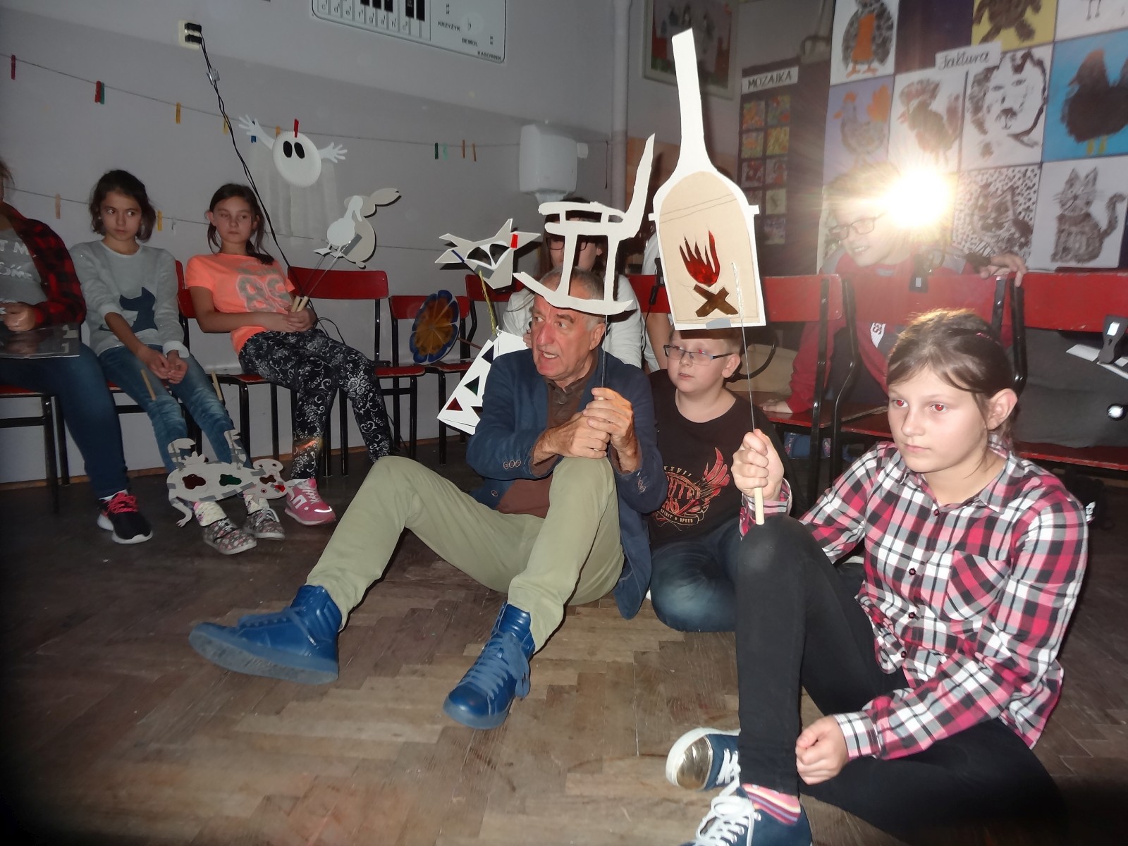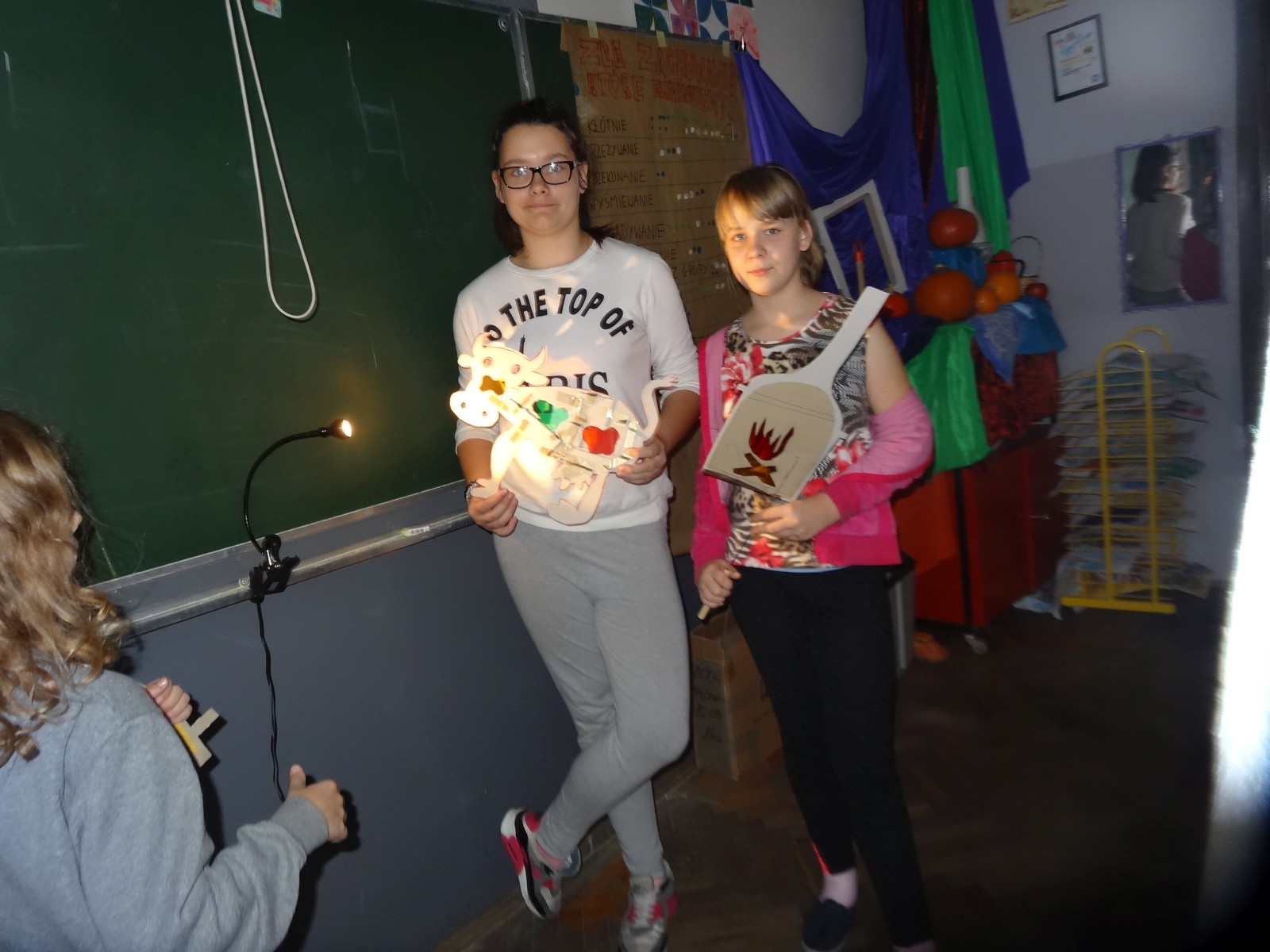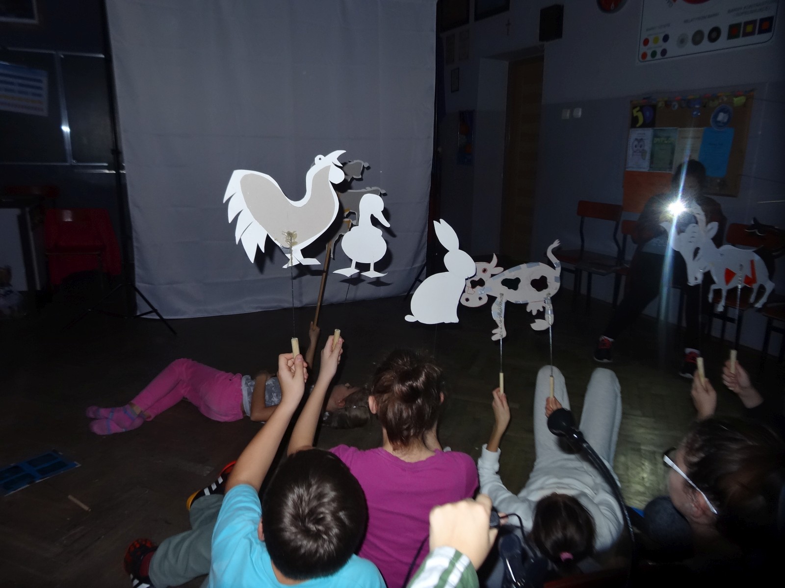 Dzieciom bardzo podoba się forma teatru cieni, warto było więc spróbować. Do tego grupa po raz pierwszy miała pojawić się na scenie i nie miała jeszcze śmiałości, dlatego łatwiej im było za pomocą obrazu wyrazić to, co czują, niż za pomocą słowa. Łatwiej im było schować się za maską, lalką czy ekranem. Warto podkreślić, że wszystkie rekwizyty dzieci wykonały samodzielnie. Teatr cieni dał duże możliwości, dzieci poznały wiele technik, ale przede wszystkim dobrze się bawiły. Odbyły się nocne zmagania ze sztuką. Pomysł nocowania w szkole był dla uczniów ekscytującą propozycją. Trudnej sztuki teatru cieni dzieci uczyły się także pod okiem instruktorów Poznańskiej Fundacji Artystycznej.