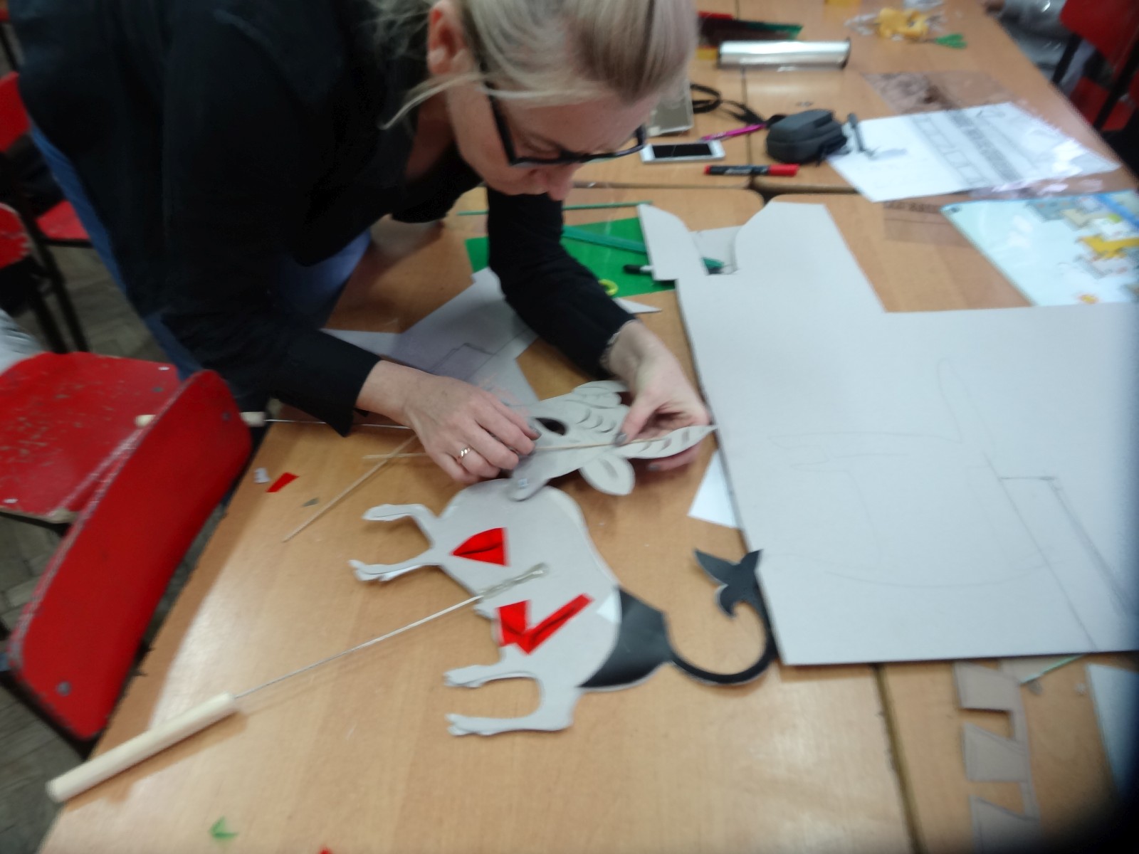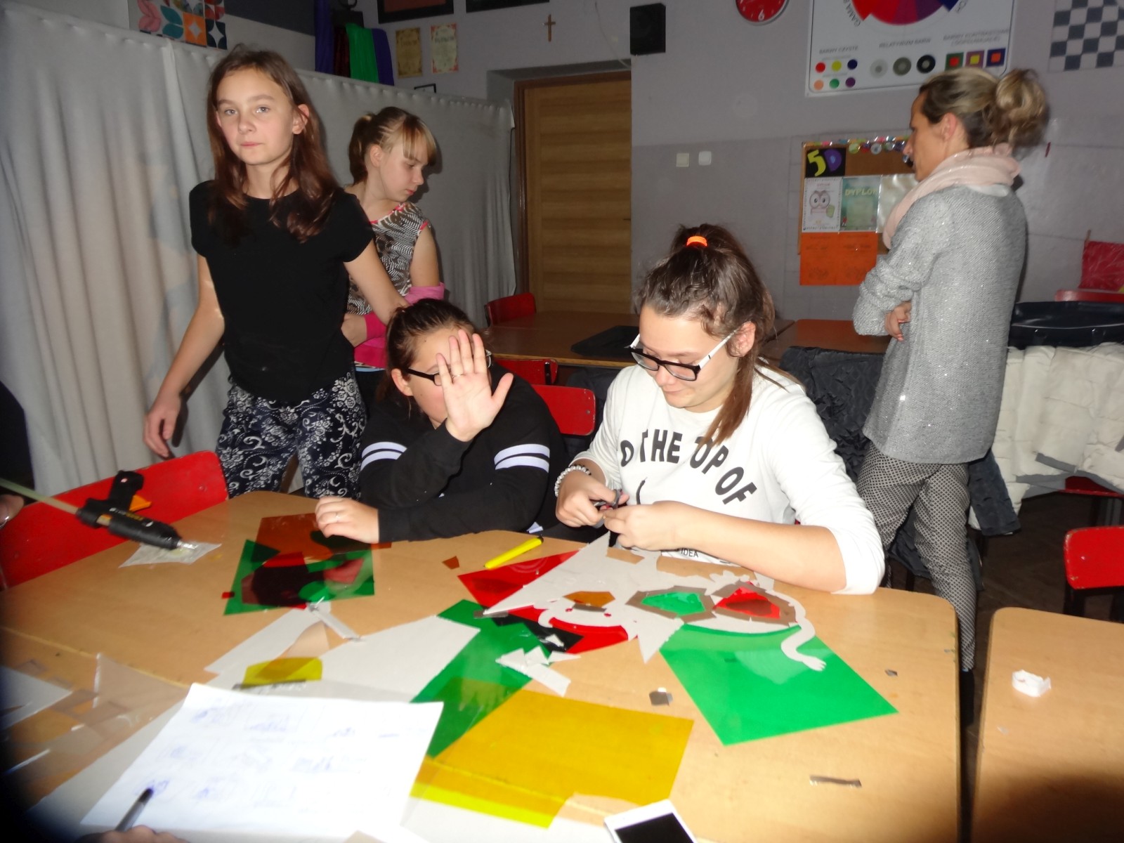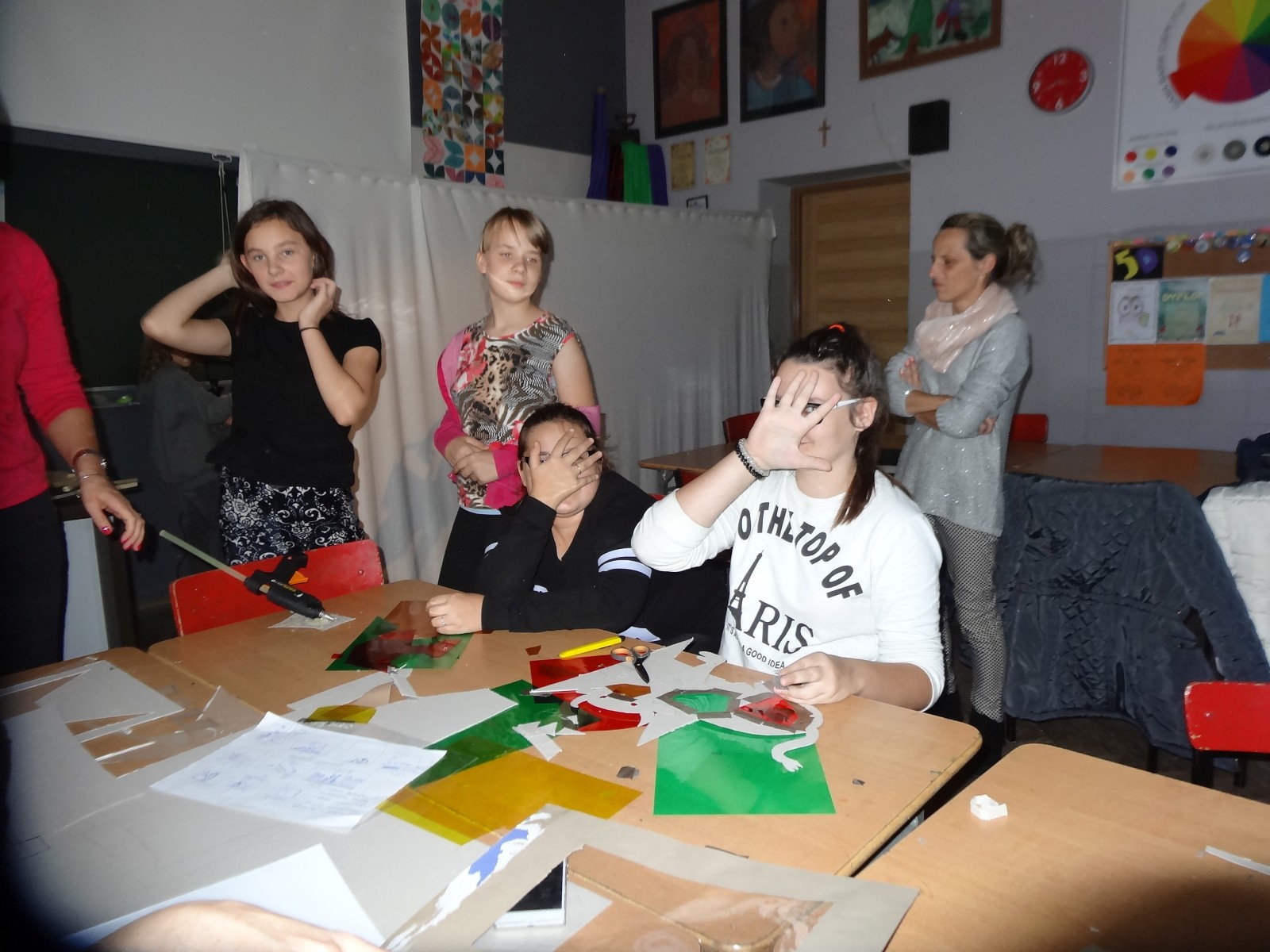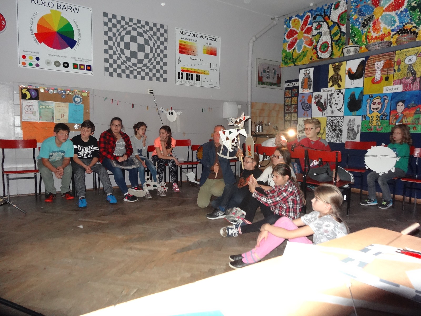 Dzieciom bardzo podoba się forma teatru cieni, warto było więc spróbować. Do tego grupa po raz pierwszy miała pojawić się na scenie i nie miała jeszcze śmiałości, dlatego łatwiej im było za pomocą obrazu wyrazić to, co czują, niż za pomocą słowa. Łatwiej im było schować się za maską, lalką czy ekranem. Warto podkreślić, że wszystkie rekwizyty dzieci wykonały samodzielnie. Teatr cieni dał duże możliwości, dzieci poznały wiele technik, ale przede wszystkim dobrze się bawiły. Odbyły się nocne zmagania ze sztuką. Pomysł nocowania w szkole był dla uczniów ekscytującą propozycją. Trudnej sztuki teatru cieni dzieci uczyły się także pod okiem instruktorów Poznańskiej Fundacji Artystycznej.