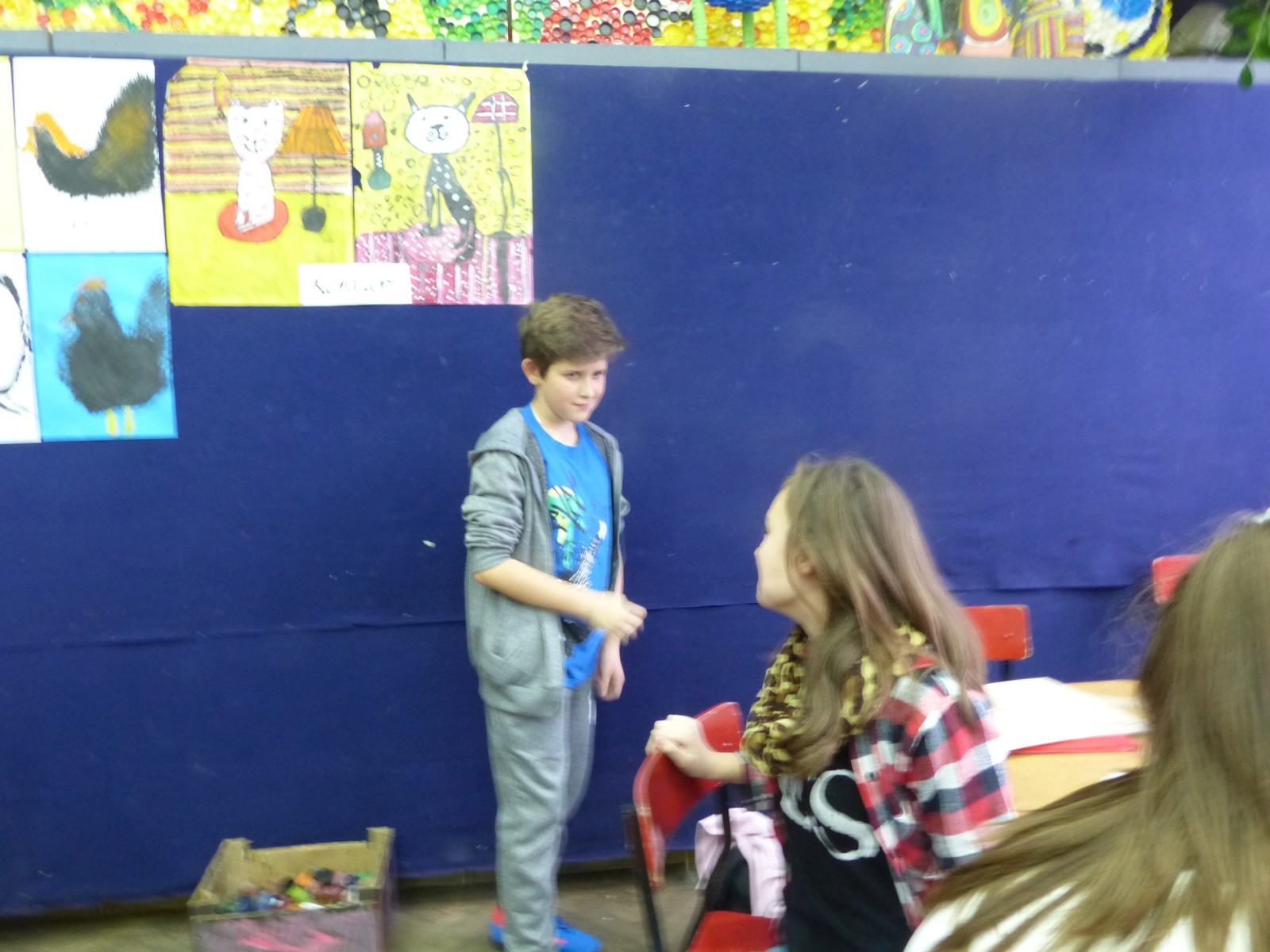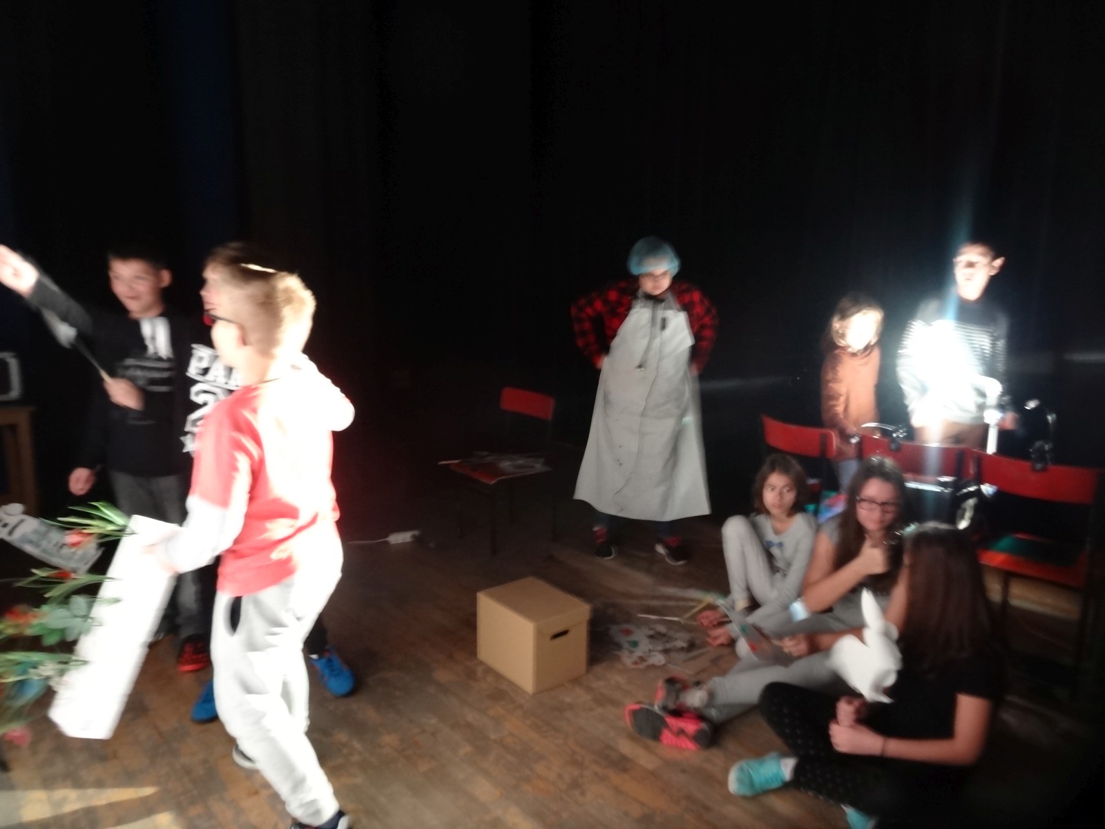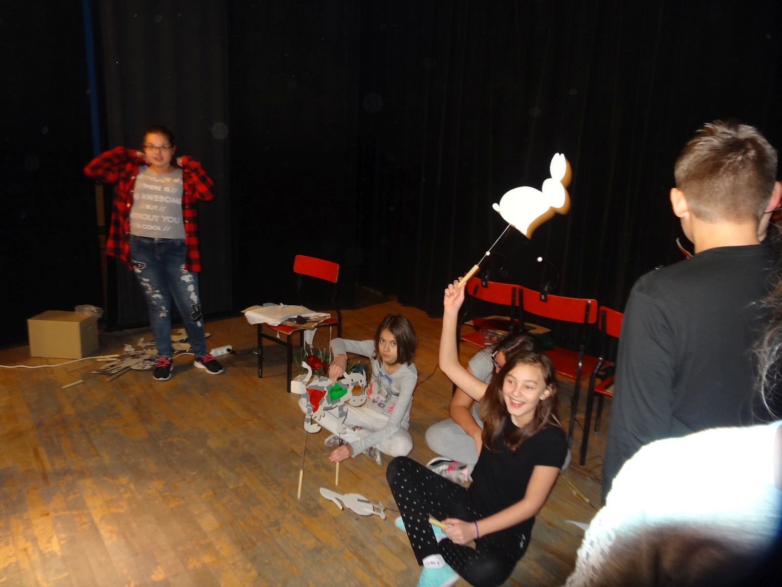 Prace nad projektem rozpoczęły się we wrześniu. Teatr funkcjonuje od 16 lat i co kilka lat dołączają do niego nowi uczniowie. Tak było i tym razem. Młodzi aktorzy tuż po przedstawieniu powiedzieli: ” Jesteśmy po raz pierwszy na scenie i nie ukrywamy, że bardzo nam się to podoba”.