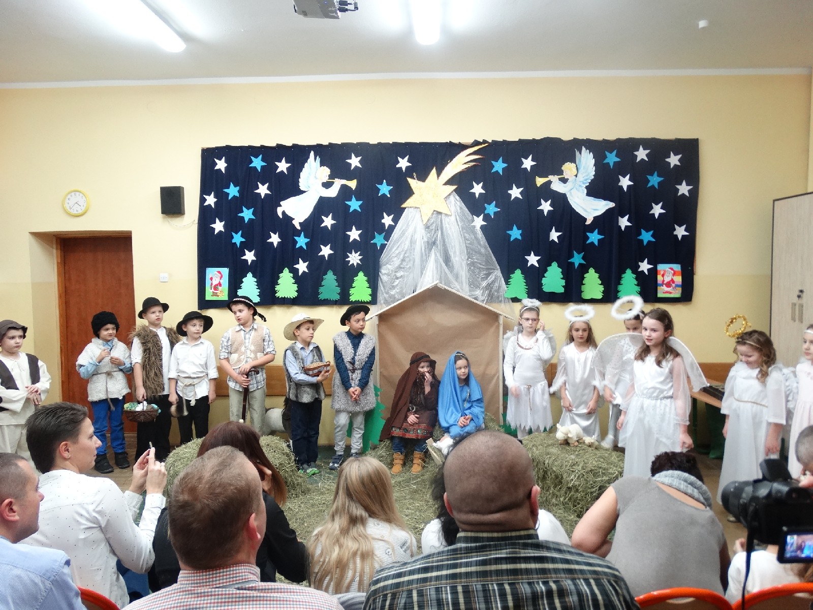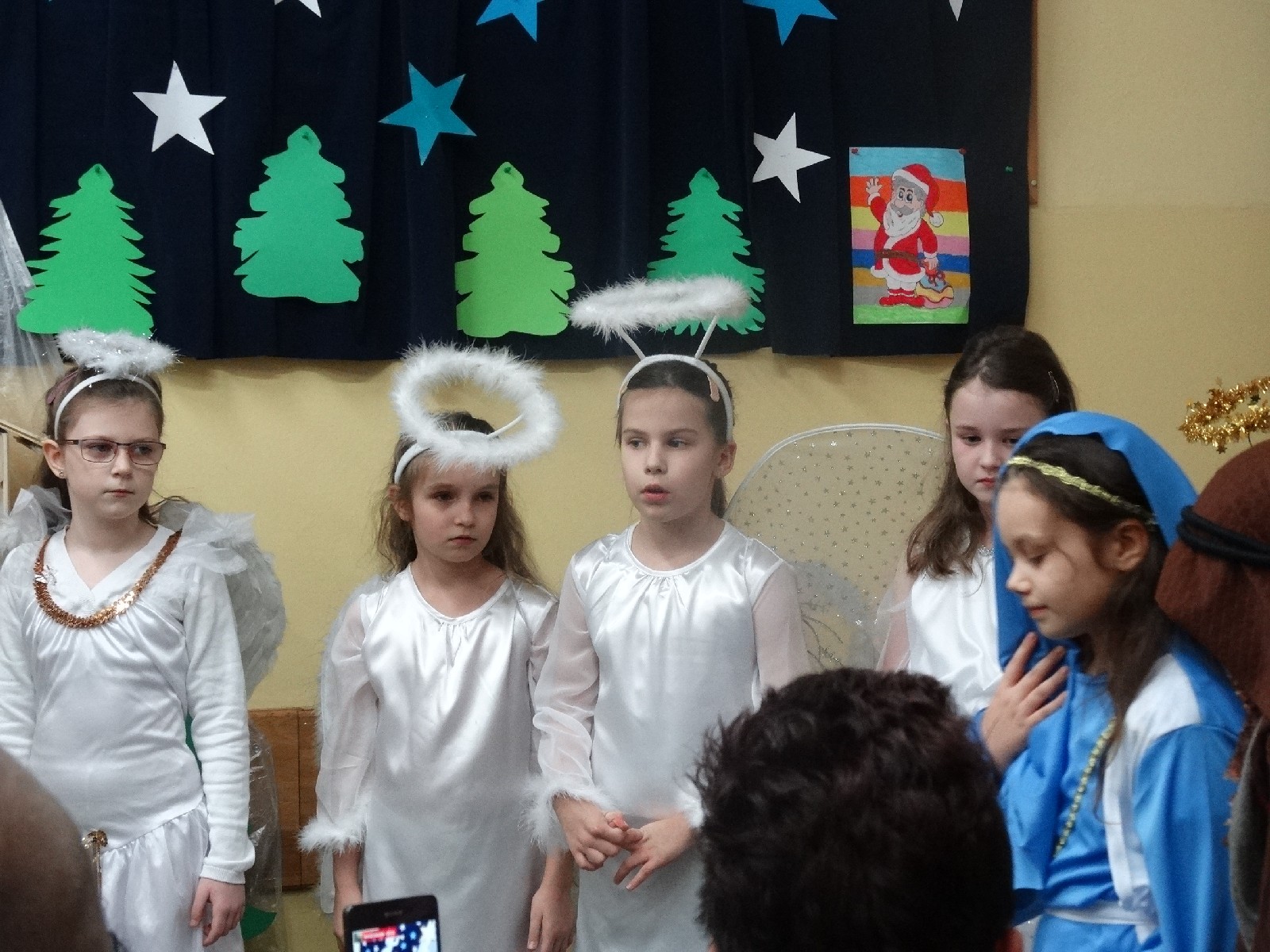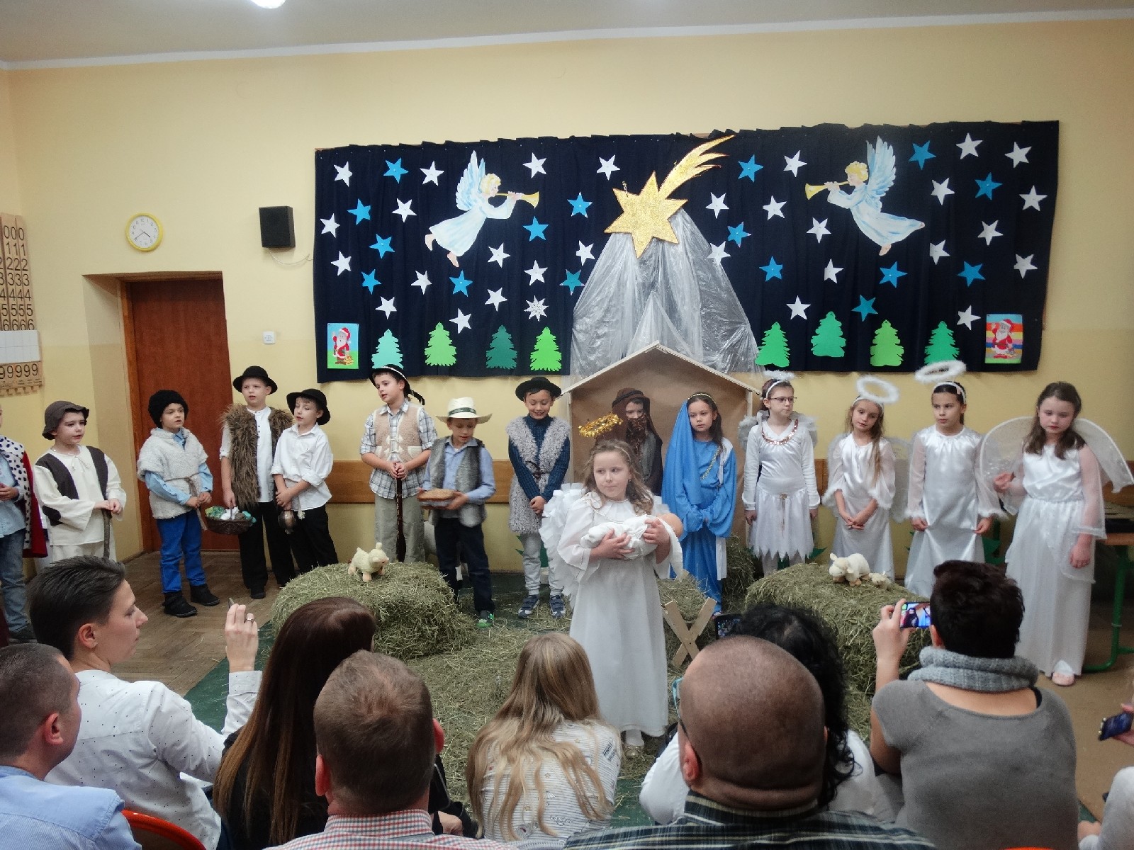 Święta Bożego Narodzenia to wyjątkowy okres w roku, na który długo czekają nie tylko dorośli, ale również dzieci. W piątek 16grudnia tradycyjnie, jak co roku odbyły się nasze klasowe Jasełka Bożonarodzeniowe. Przepiękna sceneria, nastrojowe kolędy, pastorałki i piosenki świątecznew wykonaniu dzieci stworzyły niepowtarzalny, radosny nastrój wprowadzający w atmosferę Świąt Bożego Narodzenia.Dzieci w specjalnie przygotowanych strojach z dużym zaangażowaniem i przejęciem odtwarzały swoje role. Po raz kolejny mogliśmy przeżyć historię narodzin Jezusa.Był św. Józef, Maryja, aniołowie,pasterze ze swoimi darami oraz Trzej Królowie, którzy oddali hołd małemu dzieciątku. Rodzicom występ bardzo się podobał, o czym świadczyły gromkie brawa. Na koniec zgodnie z tradycją były świąteczne życzenia i słodki poczęstunek.