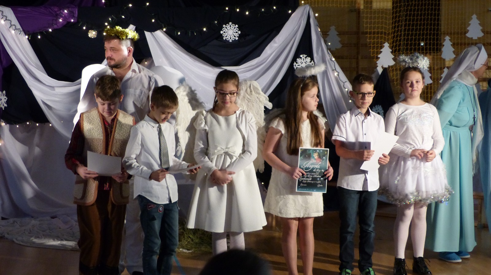 Dnia 22.12.2016 r. w naszej szkole odbył się konkurs kolęd pod hasłem „Hej kolęda, kolęda. Hej kolędy to czas”.W tym roku nastąpiła zmiana, tradycyjne Jasełka zostały zastąpione wspólnym śpiewem kolęd. Dzięki temu każda klasa mogła wykazać się pomysłowością w wykonaniu wcześniej wylosowanej przez wychowawcę kolędy. W konkursie wszyscy mogli popisać się swoimi zdolnościami muzycznymi. Wszystkie klasy od I do VI wykazały się wielkim zaangażowaniem i kreatywnością.
