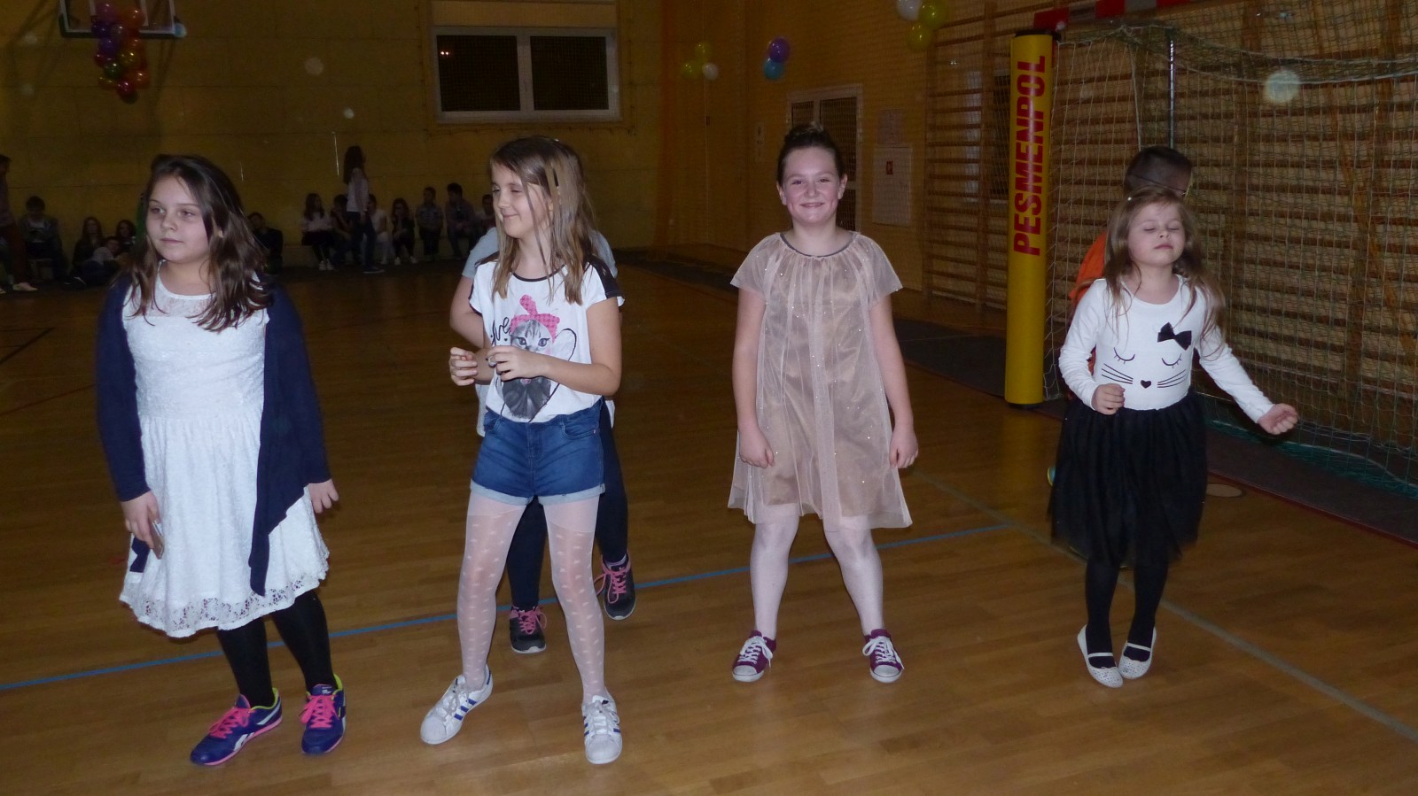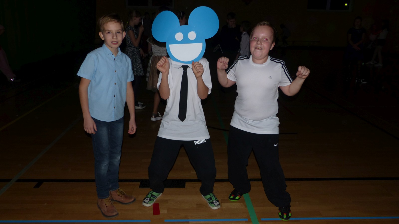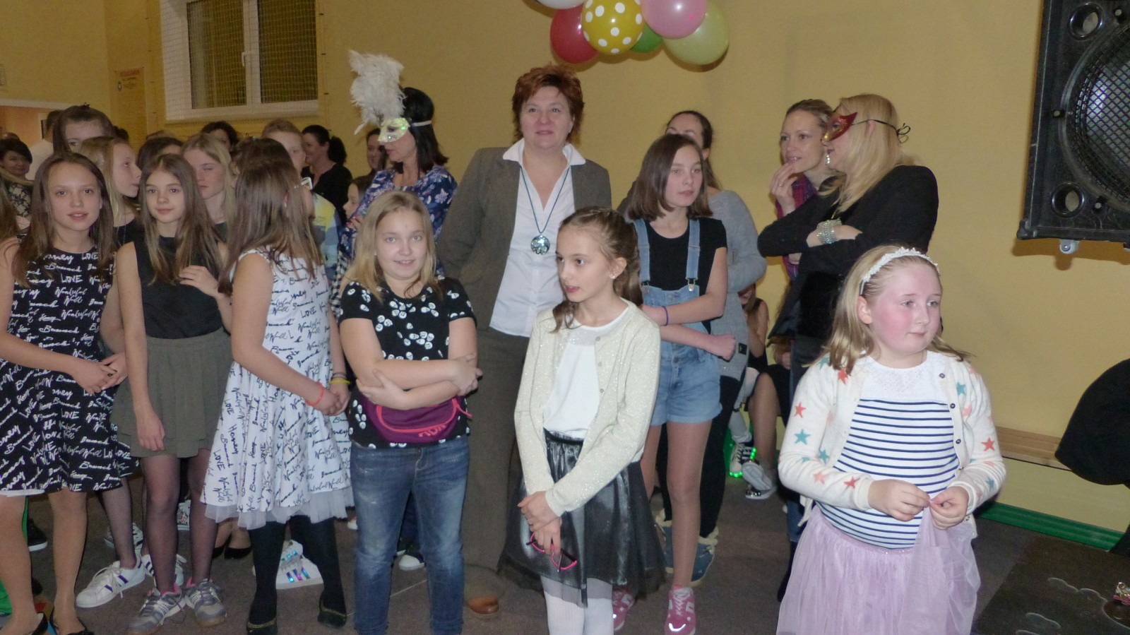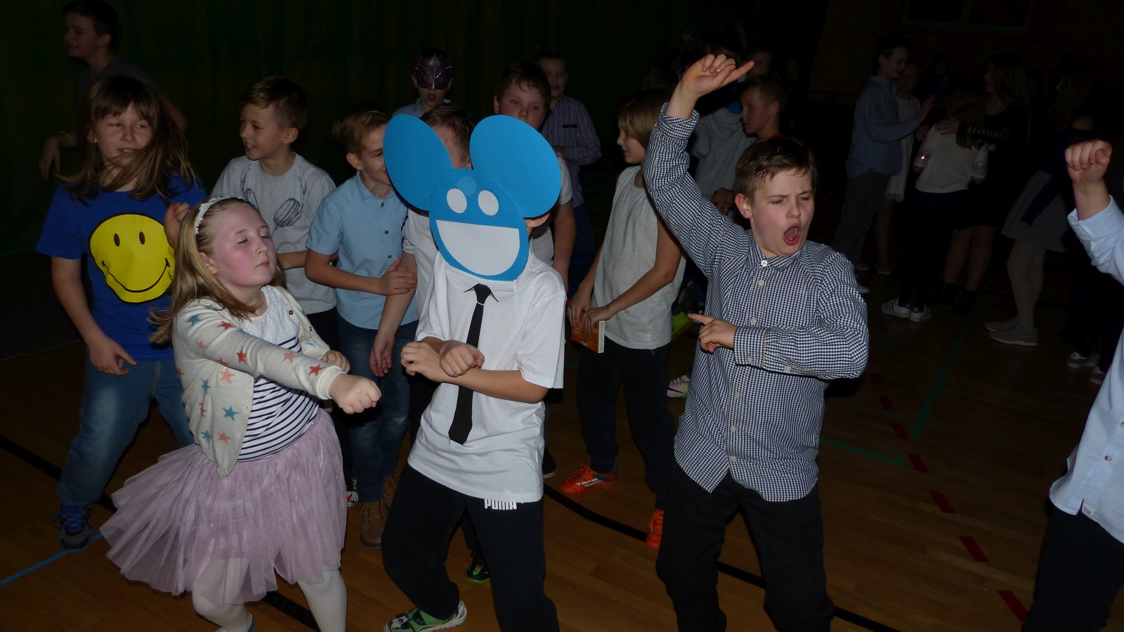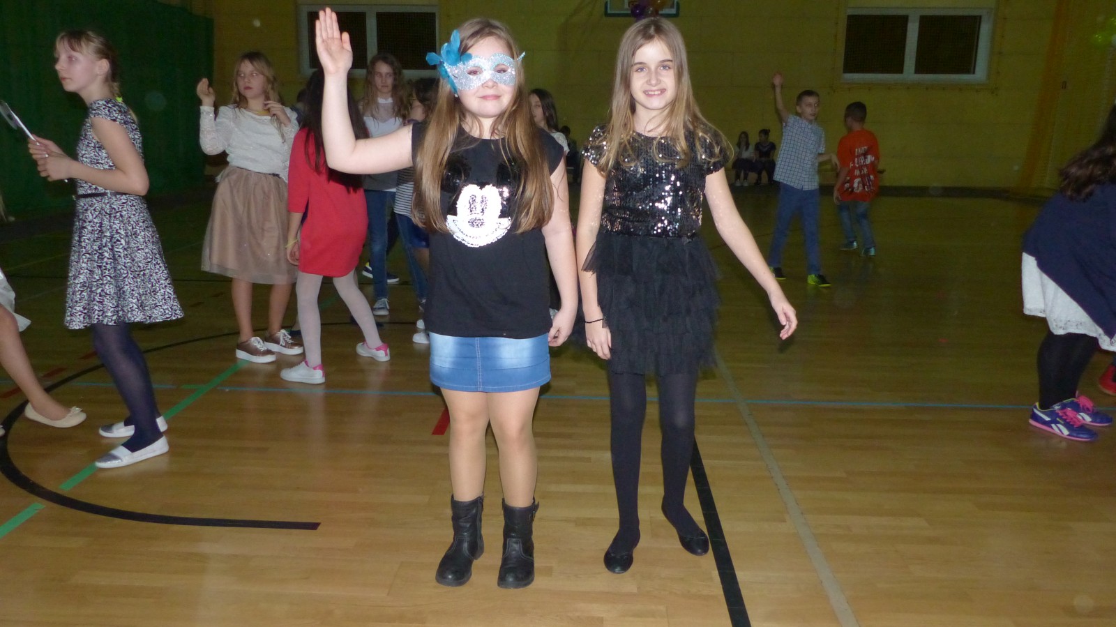 Chętni przystapili do konkursu na najciekawszą maskę. Komisja konkursowa, w skład której wchodzili uczniowie, rodzice i nauczyciele mieli trudny orzech do zgryzienia, ponieważ maski były kolorowe, tajemnicze, naprawdę wspaniałe. Ostatecznie wybrano 3 maski, a ich właściciele otrzymali słodkie upominki. Maski są po to, aby się za nimi ukryć, więc nie znamy nazwisk tajemniczych osób. Komisja zgodnie orzekła, że wyróżniała się myszka Miki, fantastyczna postać z kosmosu oraz dama prosto z Wenecji. Po konkursie DJ Adrian ponownie porwał nas do zabawy przy najnowszych i lubianych hitach muzycznych. Każda klasa o umówionej godzinie znikała z sali na choinkowy poczęstunek. Dominowała pizza, ale nie brakowało innych zdrowych przekąsek. Starań w przygotowaniu choinki dołożyli rodzice naszych uczniów, którym dziękujemy za opiekę, aktywny udział i przygotowanie choikowych paczek, które zawsze miło otrzymać. W naszej szkole bardzo lubimy takie wspólne imprezy. W tym roku bal maskowy był super! Szkoda, że wielu uczniów było nieobecnych ze względu na sezonowe zachorowania. Do zobaczenia za rok!