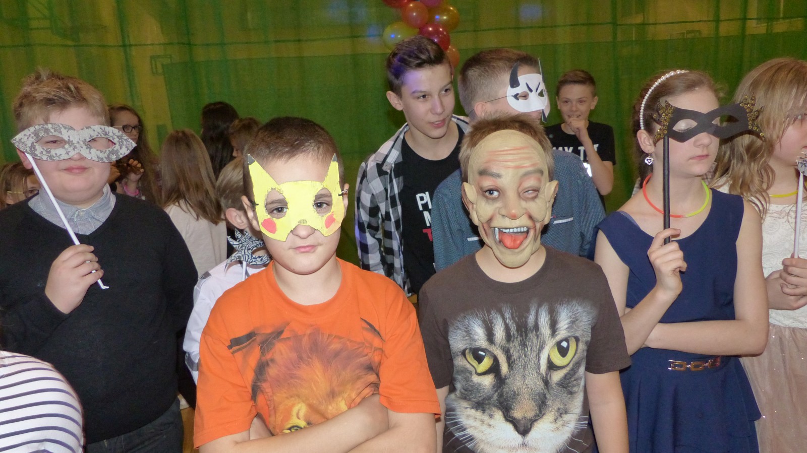 19 stycznia podczas zabawy choinkowej trudno było rozpoznać naszych uczniów. Większość przybyła w maskach karnawałowych, a więc tradycyjna „Choinka” miała charakter balu maskowego. Maski to niecodzienny, ale bardzo tajemniczy elemet stroju, który sprawia, że choć na kilka godzin stajemy się kimś innym. Byłi i tacy, którzy całkiem weszli w skórę różnych postaci, przez co wytwarzali radość wśród tańczących.