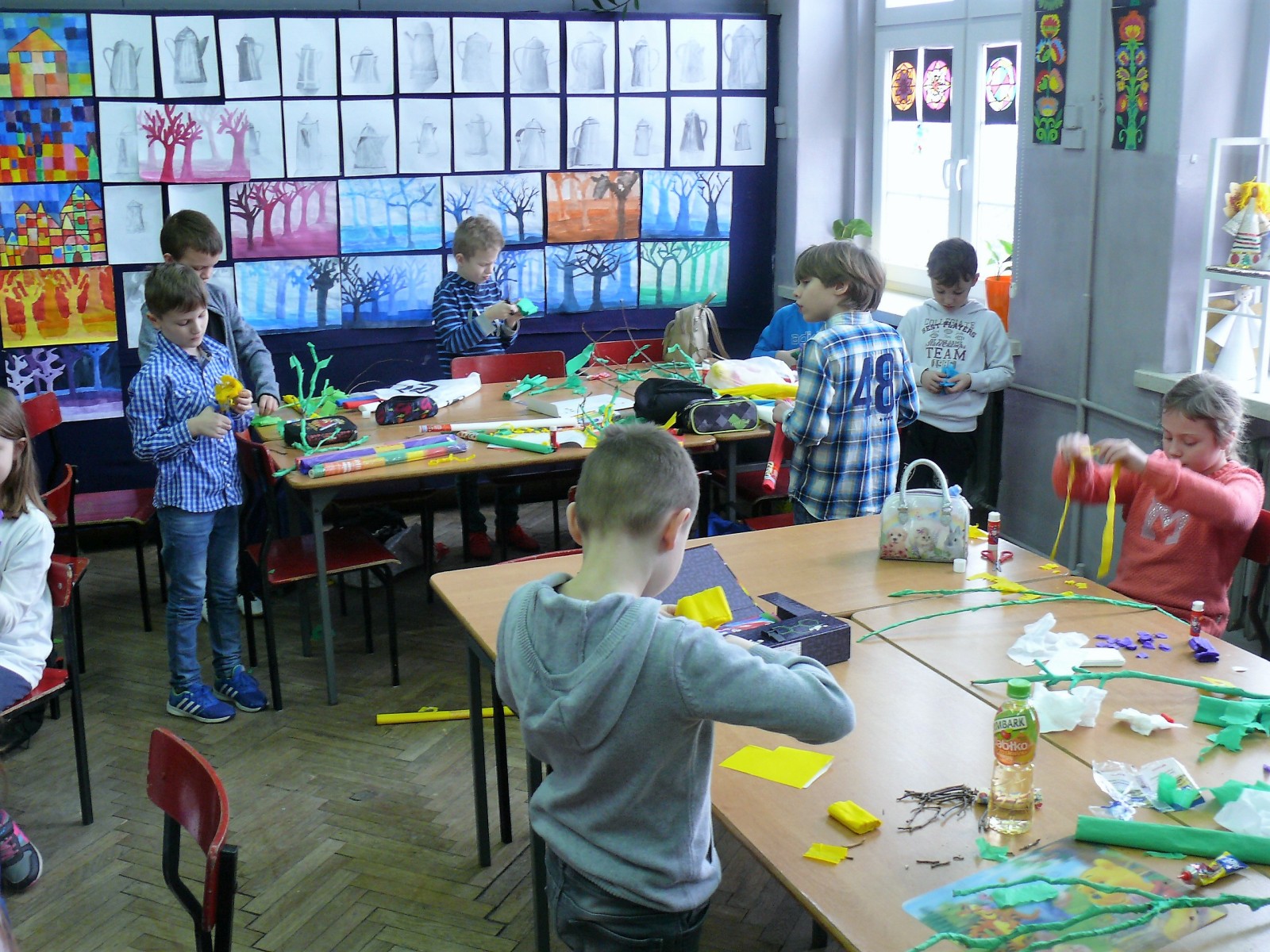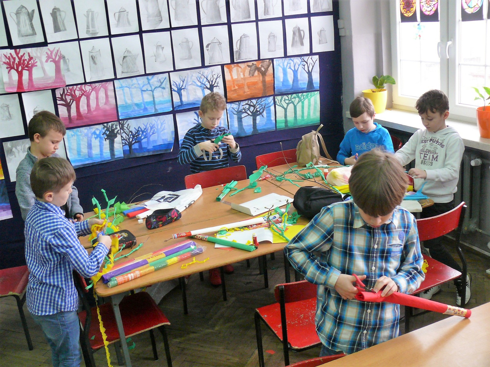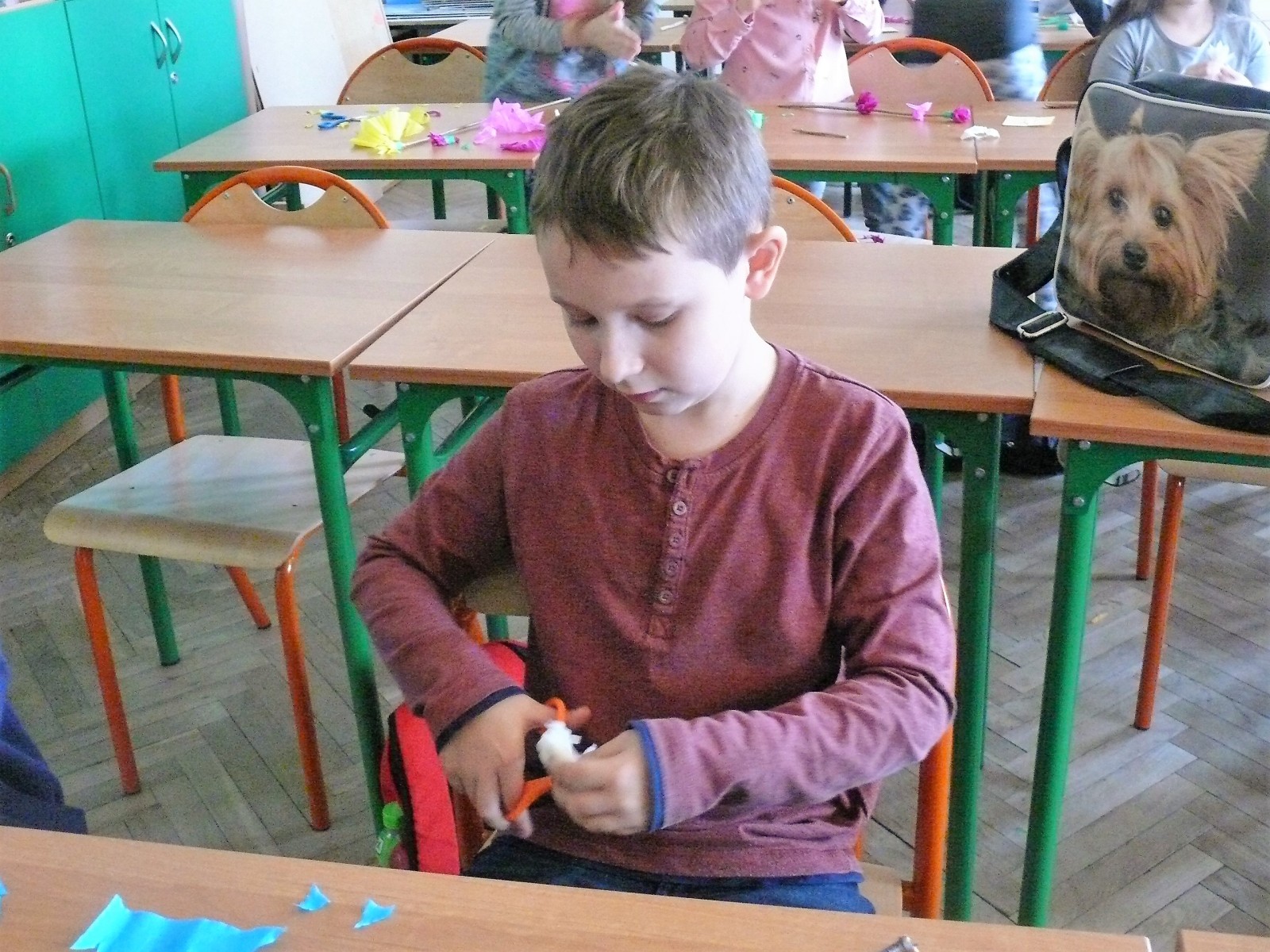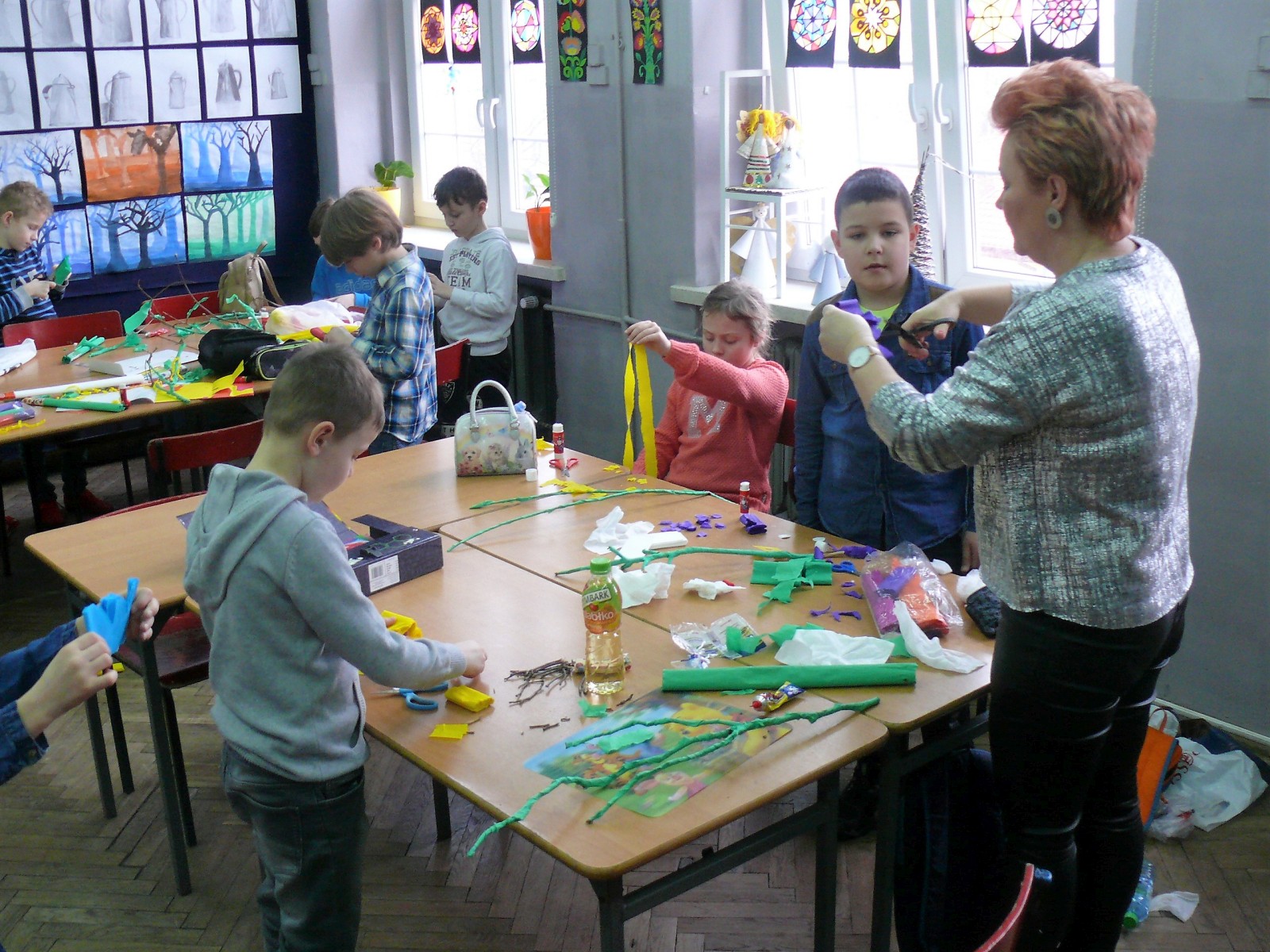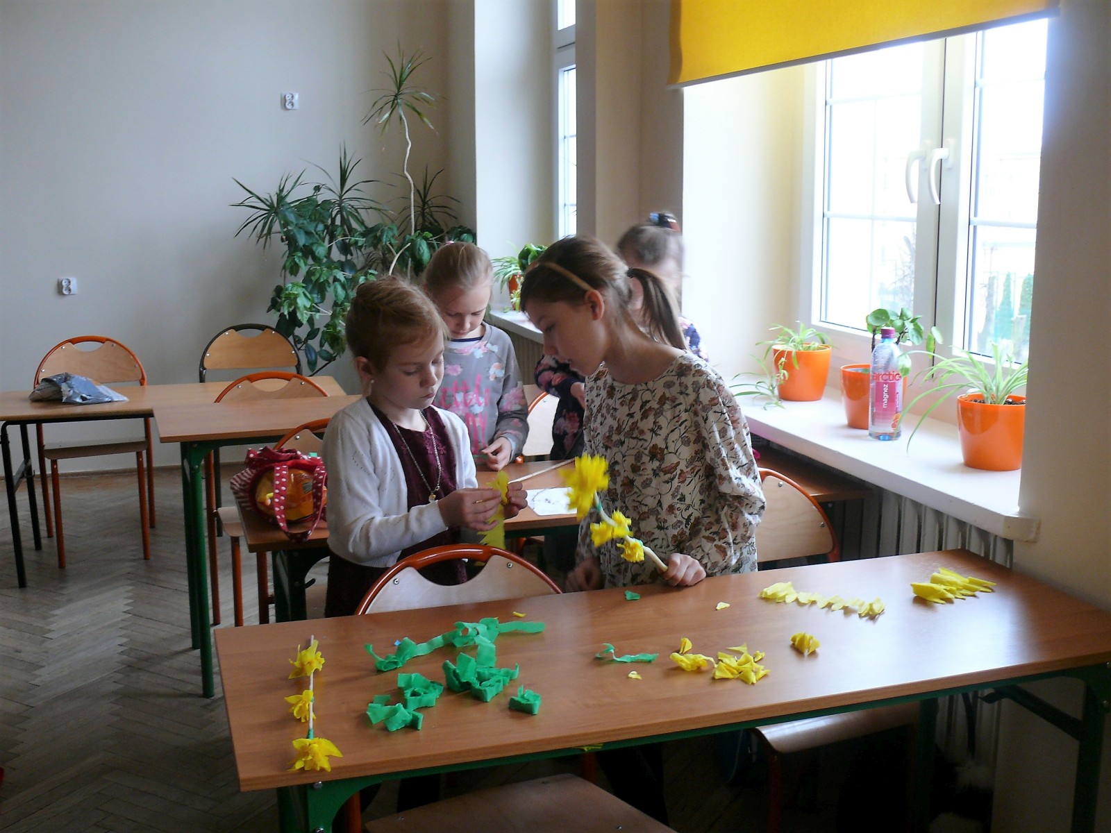 Ten szczególny dzień w roku dzieci rozpoczęły od wykonania prac plastycznych: płaskich i przestrzennych. Powstały piękne wiosenne gałązki, krajobrazy i radosne jaskółki. Atrakcją tego dnia było wyjście do kina na projekcję filmu ”Ostatni smok świata”. Święto Wiosny w naszej Jedyneczce upłynęło wszystkim radośnie i kolorowo.