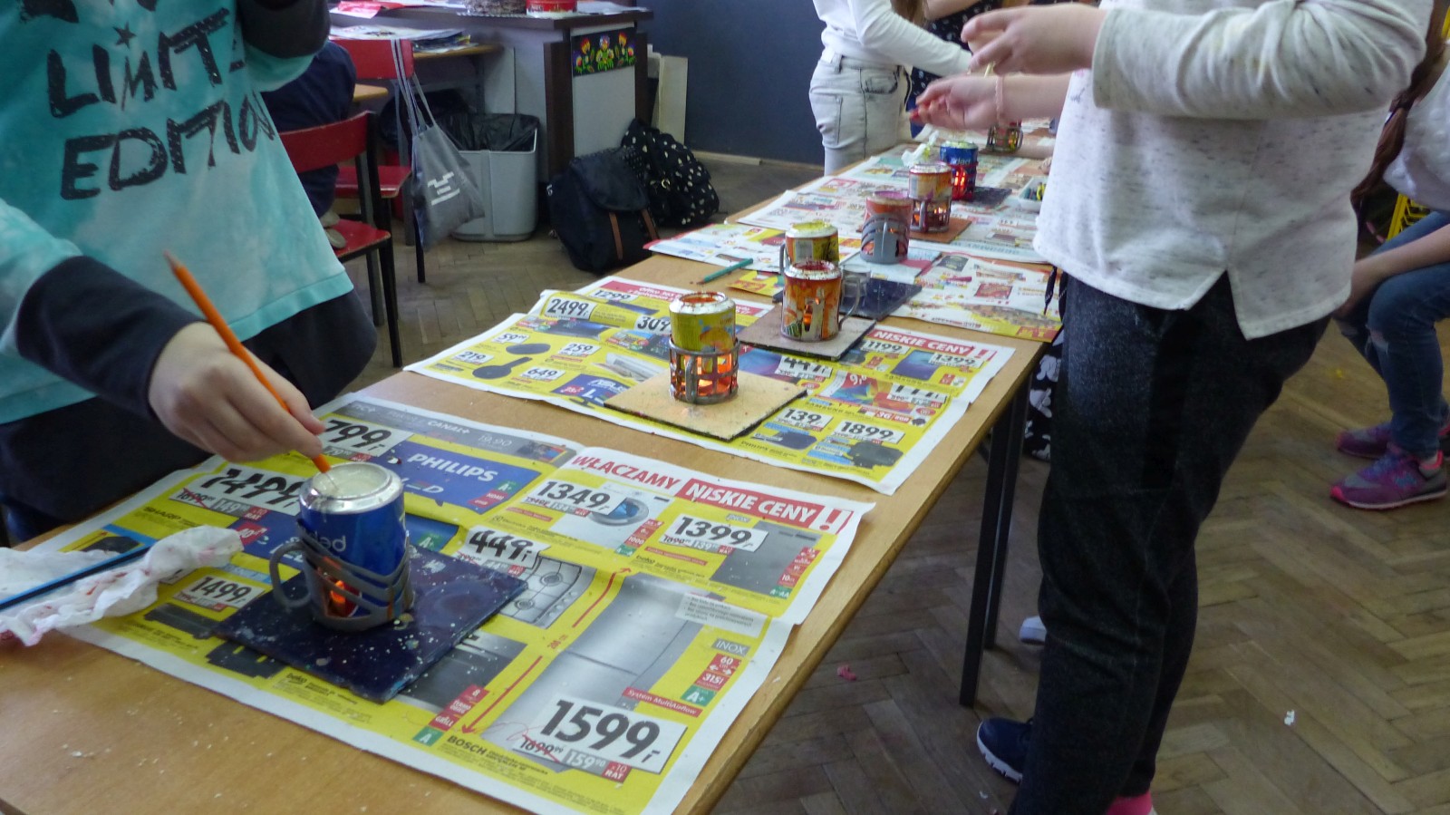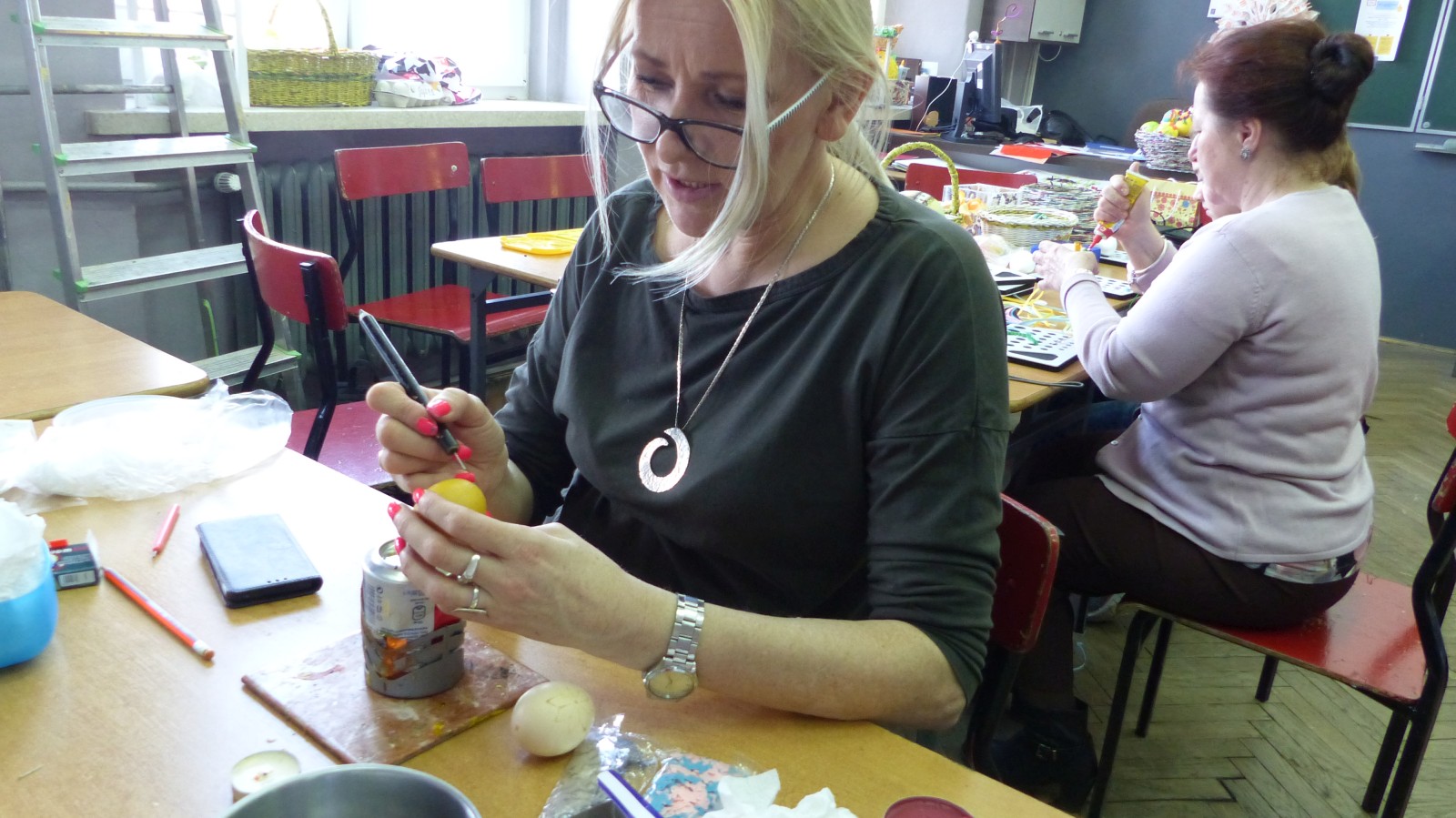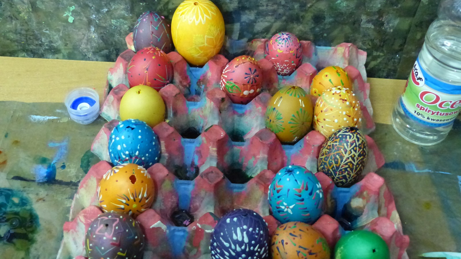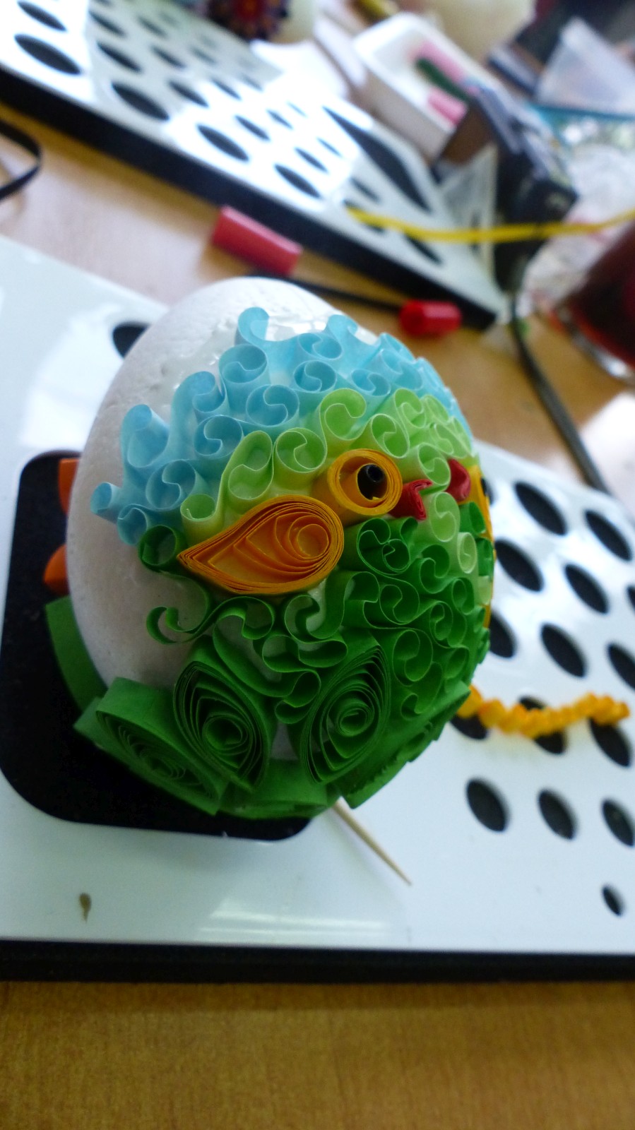 Dzieci poznały tradycje zdobienia pisanek na naszym terenie. Jedną z tradycyjnych technik było pisanie woskiem pszczelim, stąd sama nazwa pisanki. Dziś istnieje wiele technik plastycznych , które można wykorzystać do ozdobienia jajka. Na warsztatach dzieci mogły zapoznać się z techniką qulingu oraz malowania kolorowymi woskami, bardziej współczesną odmianą malowania jajek woskiem pszczelim.