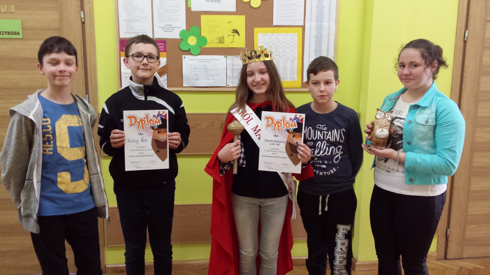 Umożliwia też uczniom wykazanie swoich mocnych stron poprzez udział w konkursach. Zastosowanie matematyki w innych dziedzinach nauki jest przykładem jej wszechstronności w codziennym życiu. Pani dyrektor Elżbieta Pokojowa w obecności klas czwartych, piątych i szóstych w dniu 22 marca 2017r. wręczyła uczennicy Natalii Kałużnej tytuł „Króla Matematyki Sp nr 1 w Turku” oraz zwycięską statuetkę „Mądrej Sowy” i nadała klasie 6c tytuł „Klasa z Sową Matematyczną”.