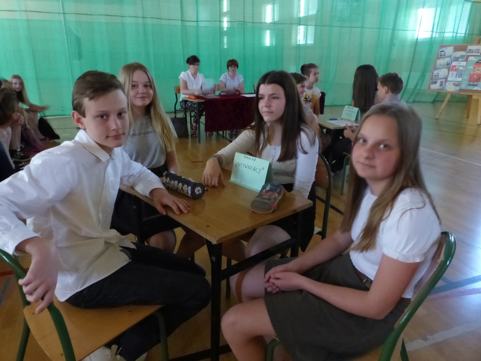 Podczas kiedy drużyny rozwiązywały zadania, chętni uczniowie z widowni również mieli możliwość zaprezentowania swojej wiedzy językowej, bawiąc się m. in. w kalambury i rozwiązując zagadki. Po zakończeniu turnieju komisja sprawdziła prace i wyłoniła zwycięzców, którymi okazały się “Brzeszczoty” z klasy 6d. W tym czasie swoje talenty zaprezentowali uzdolnieni uczniowie – laureaci konkursów literackich i recytatorskich. Po wręczeniu dyplomów i rozdaniu nagród uczniowie zgodnie stwierdzili: “ Turniej powinien odbywać się co roku, a na pewno przyczyni się do poprawy naszej polszczyzny”.