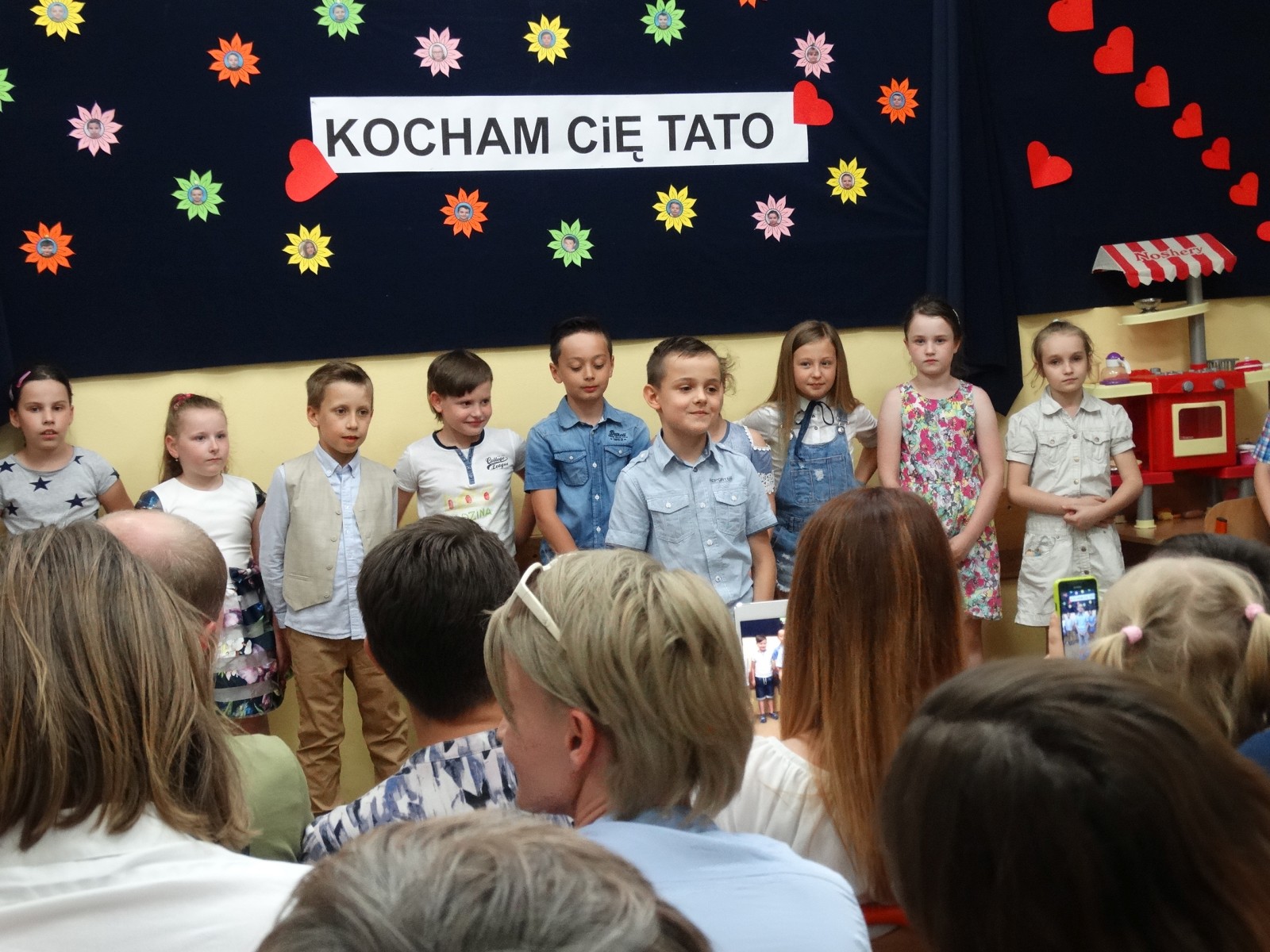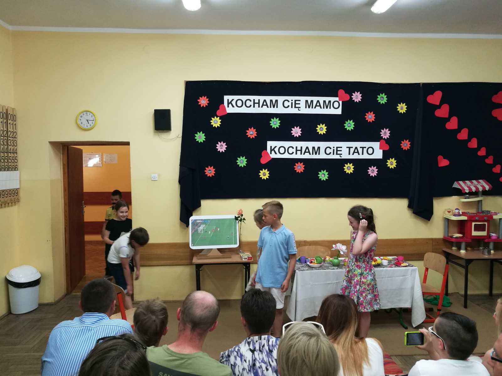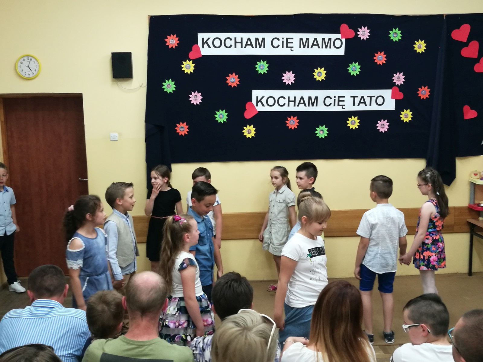 „KOCHAM CIĘ MAMO , KOCHAM CIĘ TATO” pod takim hasłem, w środę 31 maja w klasie 2e odbyła się uroczystość z okazji Dnia Mamy i Taty, na którą zostali zaproszeni rodzice. Uczniowie zaprezentowali się w montażu słowno-muzyczno-tanecznym. Wierszem, piosenką i tańcem podziękowali Rodzicom za dobroć, za miłość za to, że po prostu są. Na koniec uczniowie odegrali humorystyczną scenkę na temat „Rodzina na dobre i na złe” i wręczyli własnoręcznie przygotowane upominki. Po części artystycznej, na wszystkich gości i dzieci czekał słodki poczęstunek przygotowany przez mamy. Wspaniała uroczystość mogła się odbyć dzięki zaangażowaniu rodziców i uczniów.
