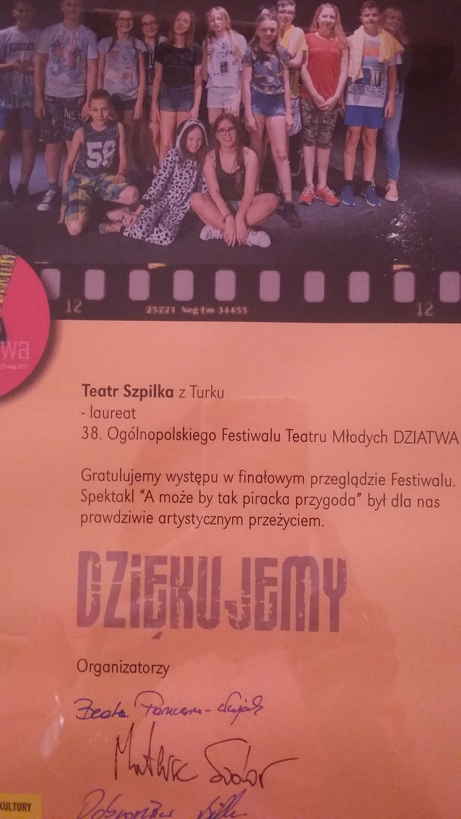 Do udziału w festiwalu zaproszono 15 zespołów wybranych przez jury z propozycji nadesłanych z całej Polski. Teatr \"Szpilka\" po raz kolejny reprezentował rejon koniński, ale przede wszystkim Turek i Szkołę Podstawową nr 1, w tym niezwykłym spotkaniu artystycznym. Uczniowie zaprezentowali spektakl „A może by tak piracka przygoda”, który entuzjastycznie przyjęty został przez widownię. W recenzji można było przeczytać:” Zespół prezentuje sceniczną charyzmę, ciekawe rozwiązania plastyczne i scenograficzne. Sprytnie potrafi ułożyć z walizek pokład statku, zszokować koleżankę upchaną w jednej z nich czy rozbawia najmłodszych widzów do łez”. Przed występami młodzi aktorzy uczestniczyli w warsztatach plastycznych, a podczas przeglądu mogli wymienić się doświadczeniami z innymi grupami teatralnymi z całej Polski.