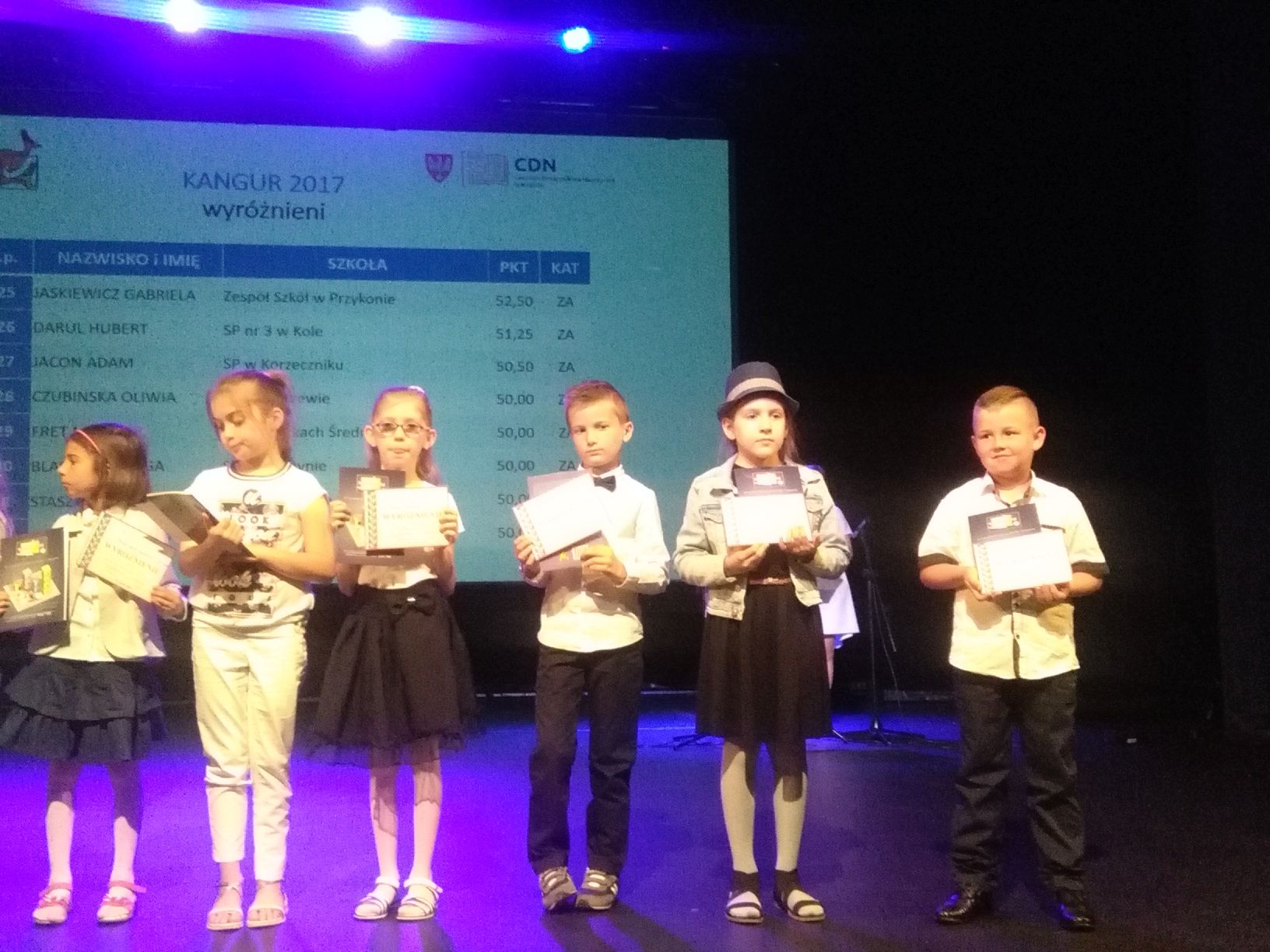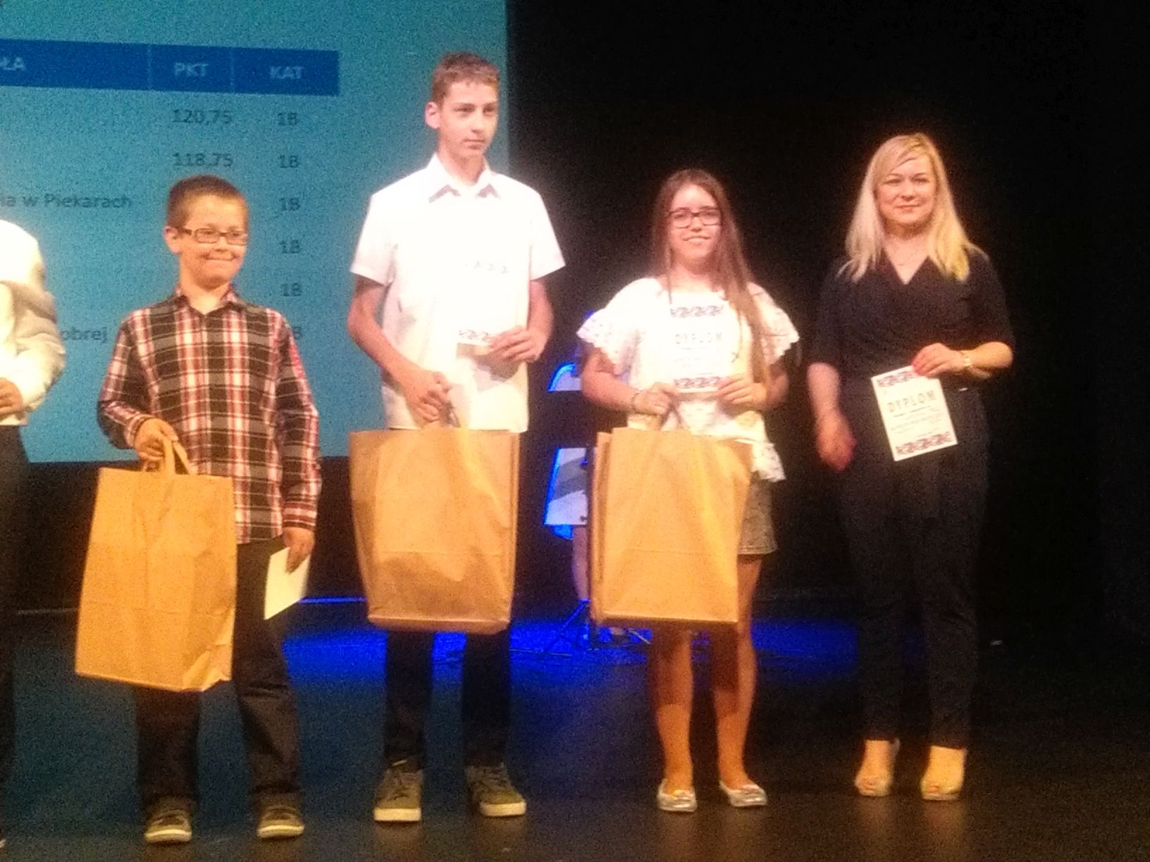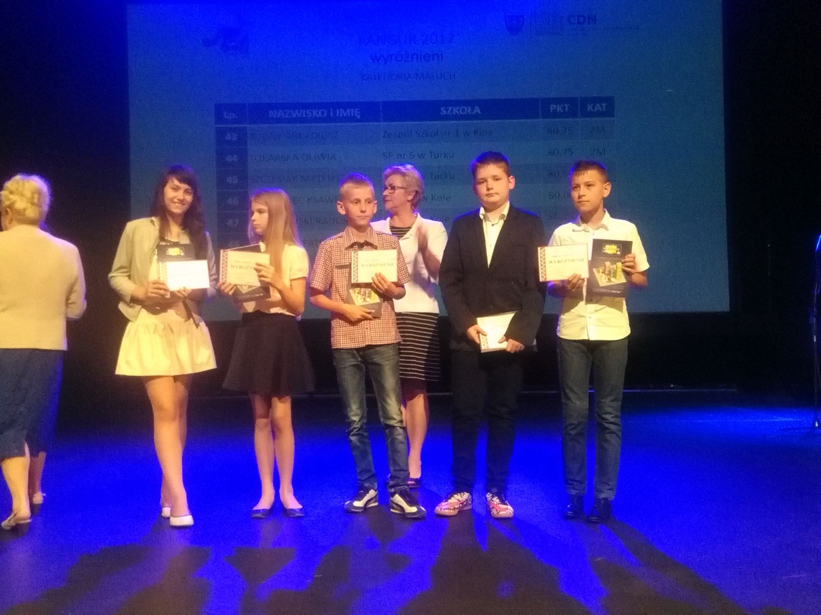 Bardzo dobry wynik otrzymała Michalina Rosiak z klasy 6, natomiast wyróżnienia otrzymali: z klas 2: Ilona Linka, Oliwier Miler, Piotr Seidel, Kornelia Kacprzak, Kacper Łania, Alicja Grabowska, Marcel Tomczak i Jakub Dziurdziński;