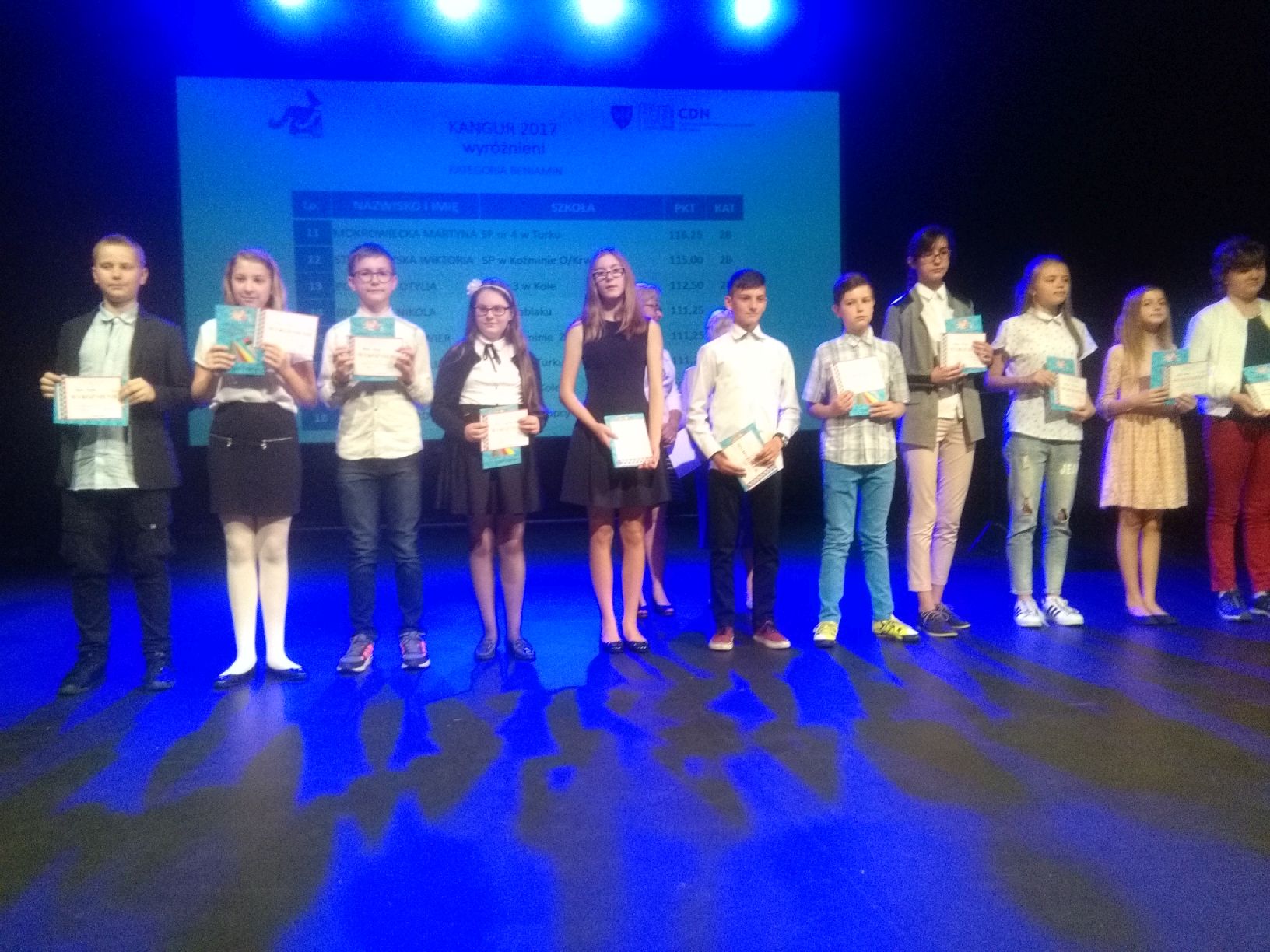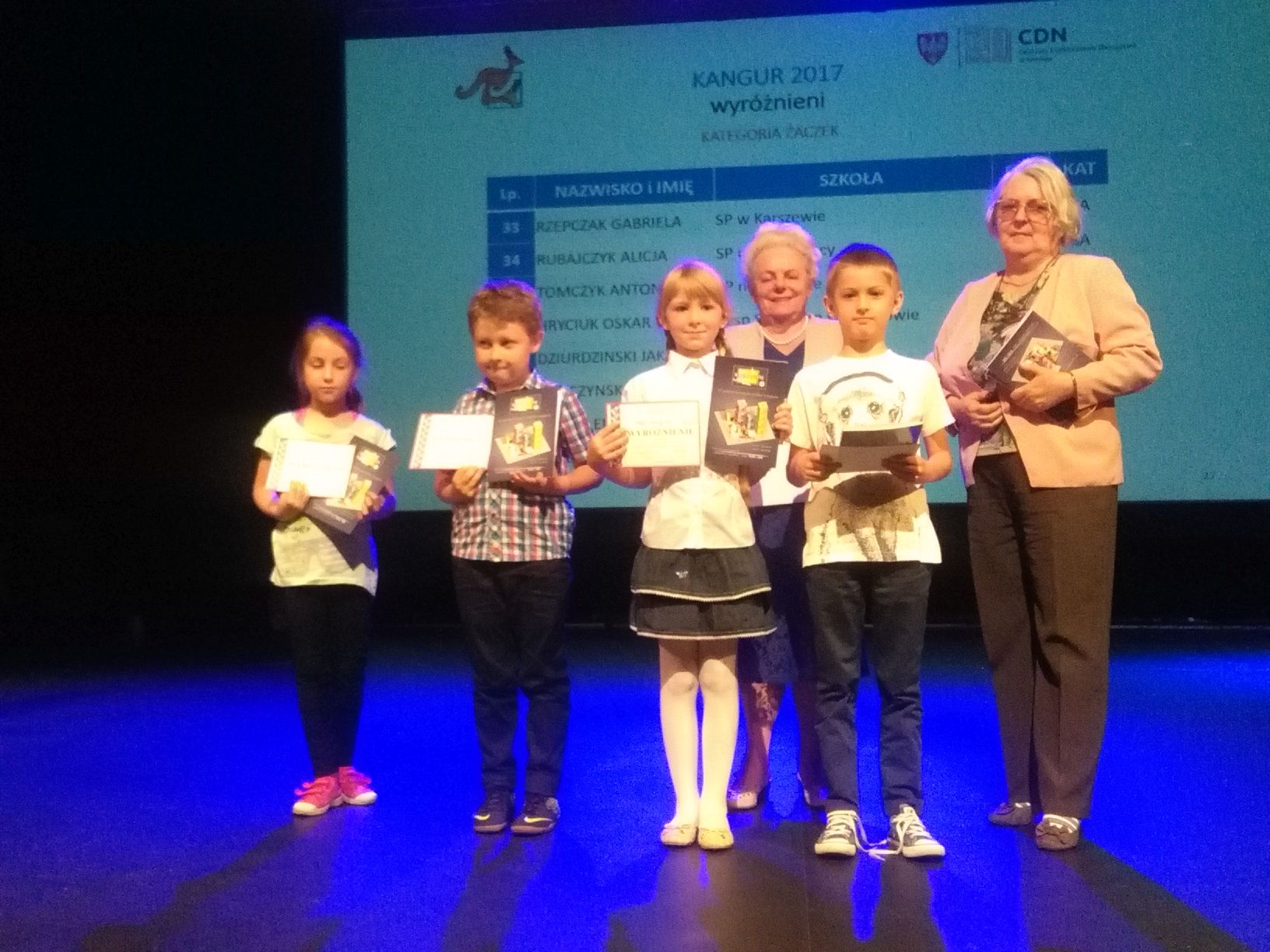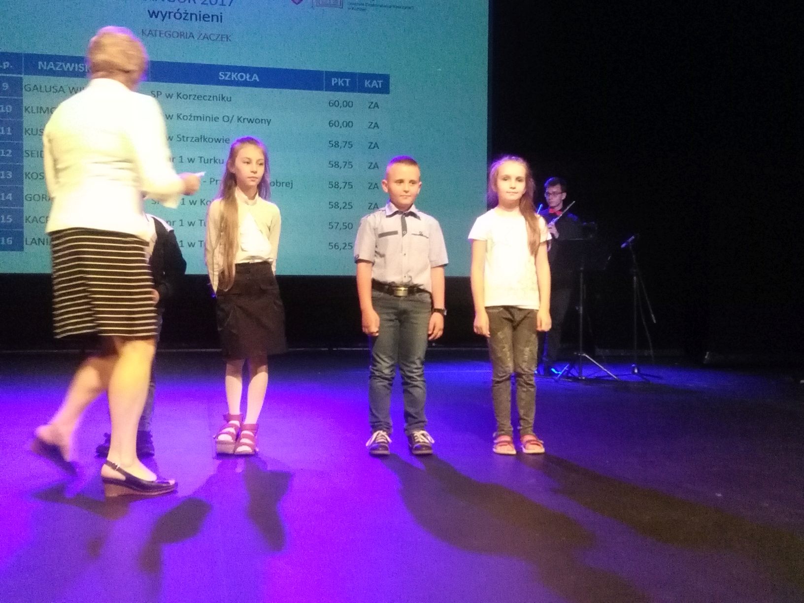 Bardzo dobry wynik otrzymała Michalina Rosiak z klasy 6, natomiast wyróżnienia otrzymali: z klas 2: Ilona Linka, Oliwier Miler, Piotr Seidel, Kornelia Kacprzak, Kacper Łania, Alicja Grabowska, Marcel Tomczak i Jakub Dziurdziński;