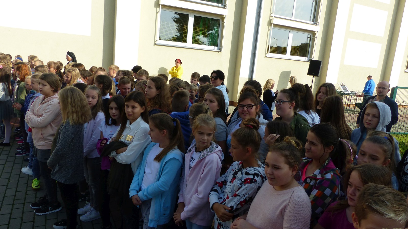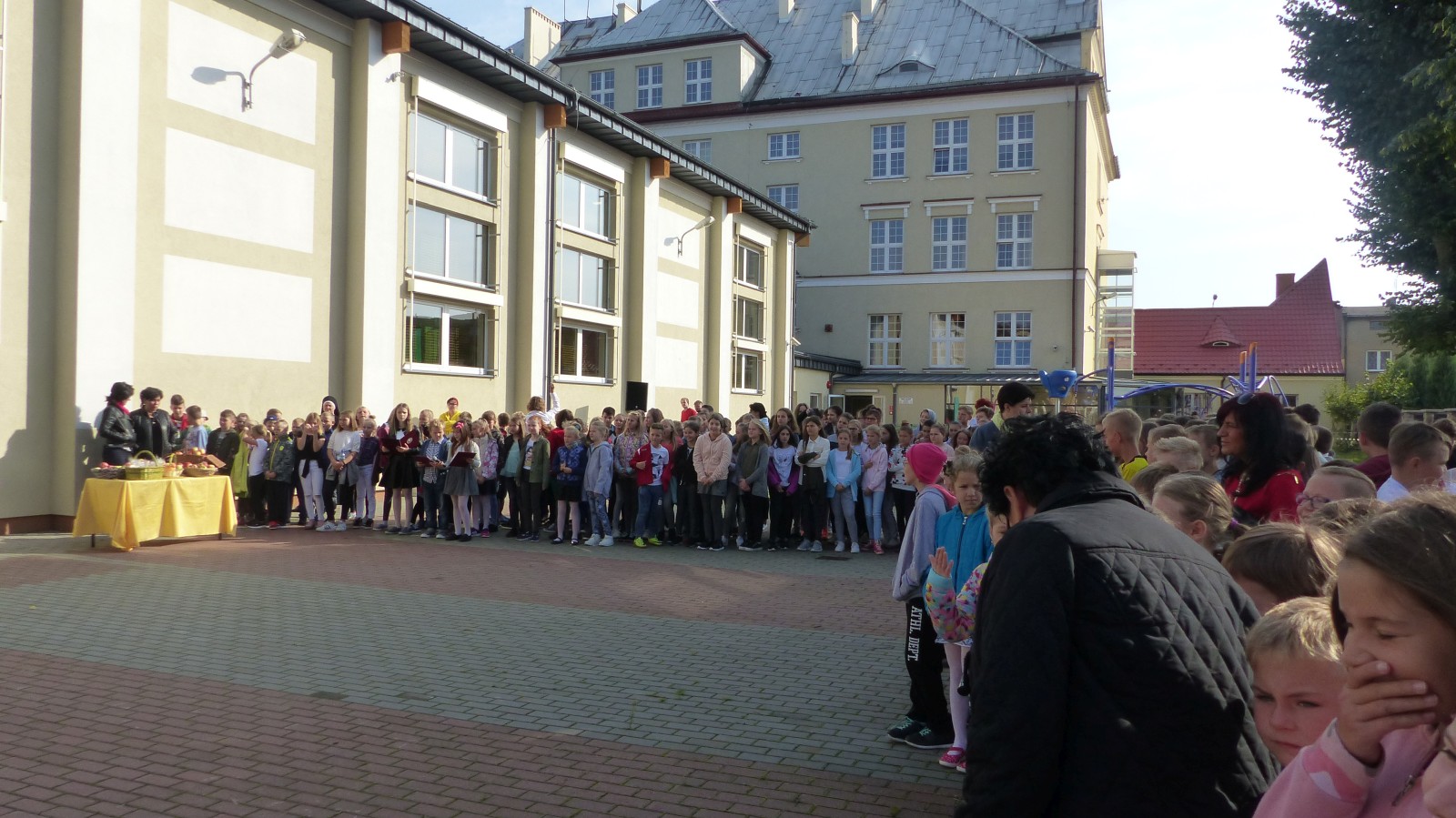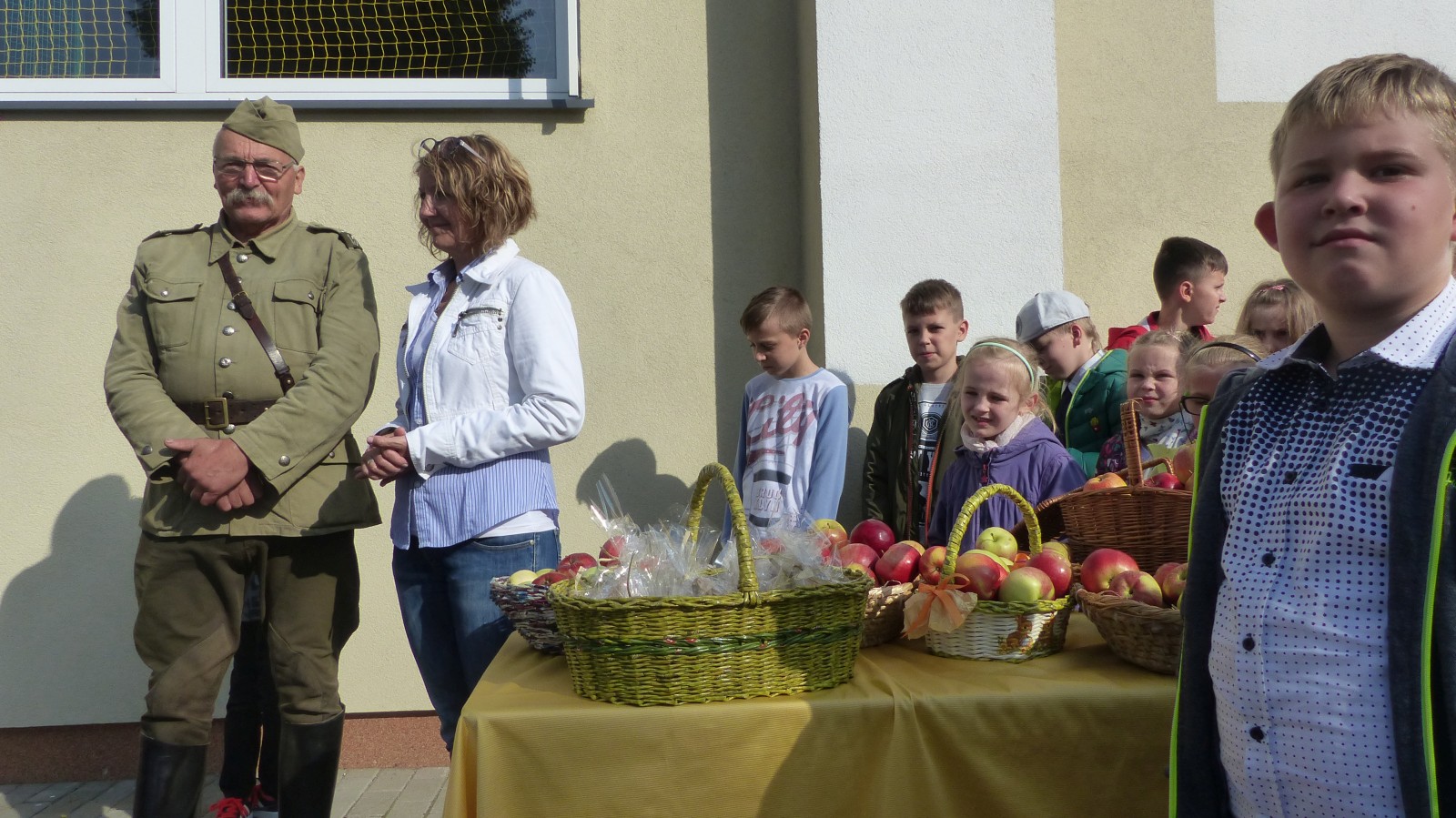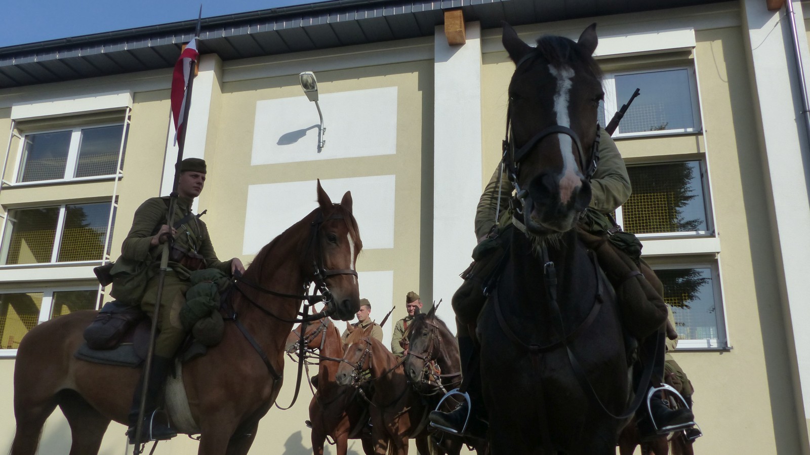 Na szkolnym boisku zgromadzili się uczniowie i nauczyciele, by spotkać się ze swoimi niecodziennymi gośćmi. Spotkanie prowadzili uczniowie klasy 4d Maja Walas i Bartosz Dziamara. Wszystkim spodobały się występy muzyczne klasy 4d oraz Basi Malety i Julii Ziemiańskiej, które zaśpiewały ułańskie pieśni.