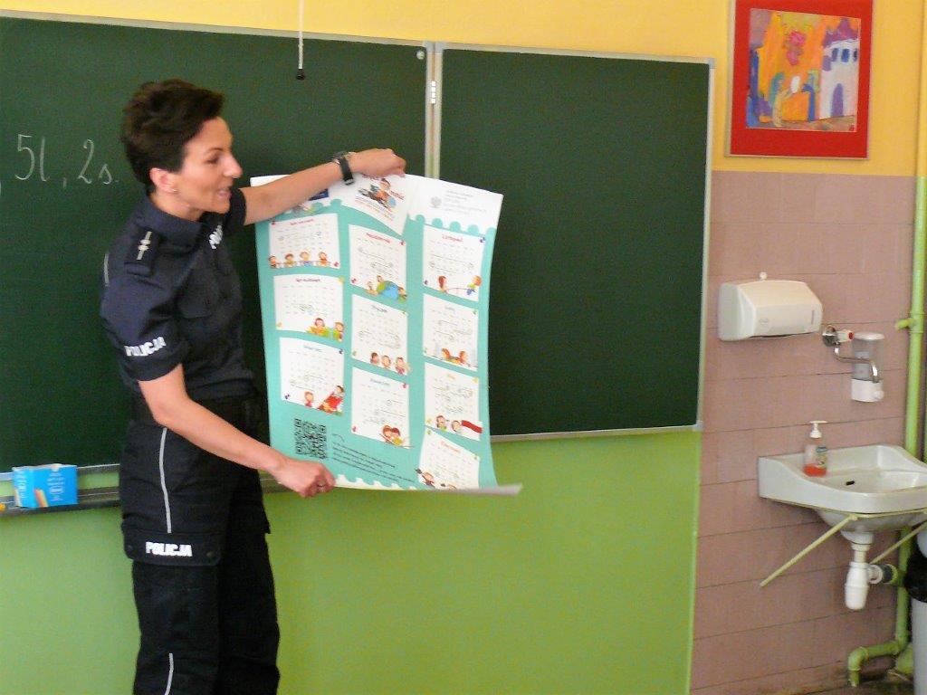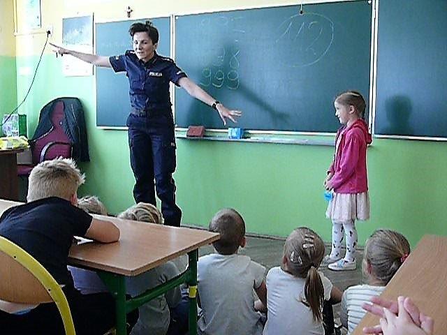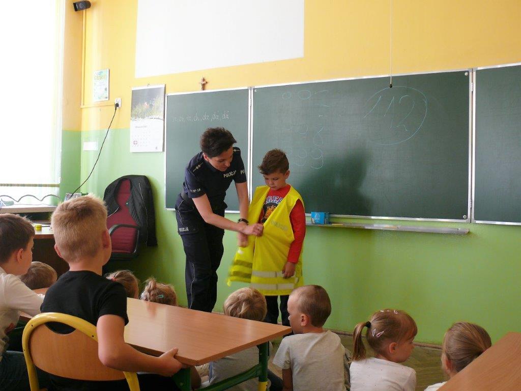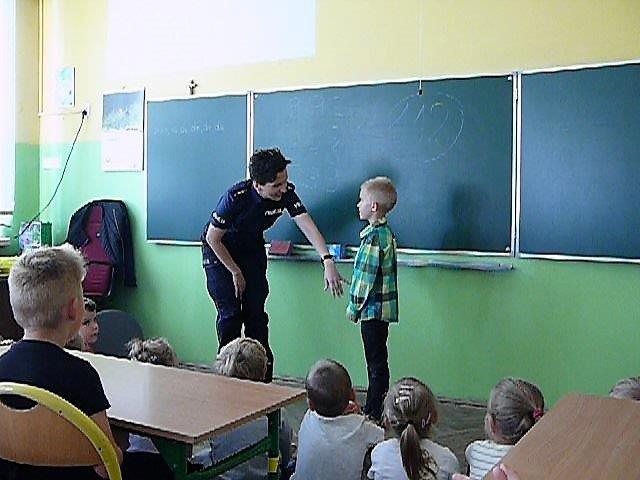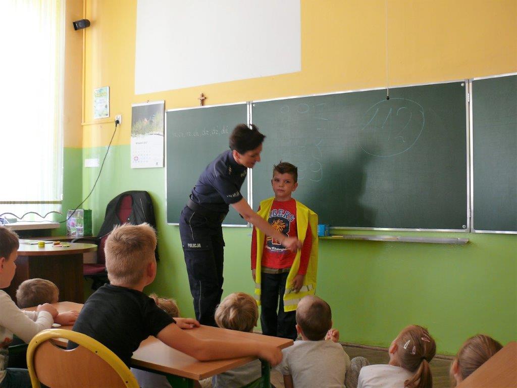 Ponadto policjanci st.asp. Bartłomiej Białas, mł.asp. Marzena Kwaśny i mł.asp. Robert Rojak przeprowadzili wśród pierwszaków quiz na temat wiedzy z zakresu bezpieczeństwa. Dzieci po odgadnięciu pytań otrzymywały nagrody w postaci elementów odblaskowych.