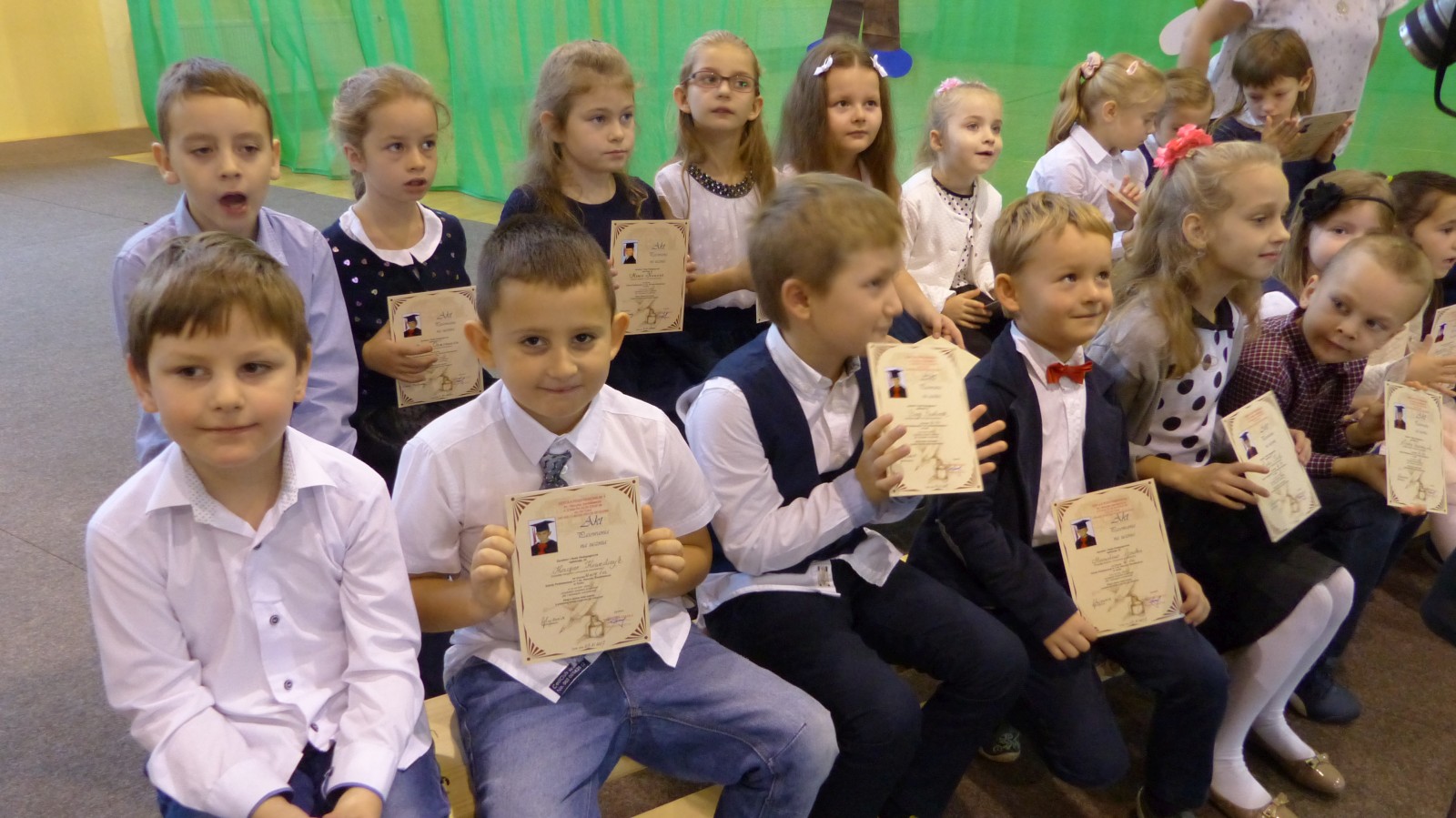 Oprócz części oficjalnej i poważnej była też część rozrywkowa. Dzieci śpiewały piosenki i recytowały wiersze. Uczniowie z klasy drugiej serdecznie powitały młodszych kolegów w szkole. Pod koniec uroczystości dla wszystkich zgromadzonych zaśpiewała uczennica piątej klasy Paula Biskup. Wszyscy mogli podziwiać jej talent rozwijany w naszej szkole i nagradzany wielokrotnie na różnych krajowych i międzynarodowych festiwalach.
